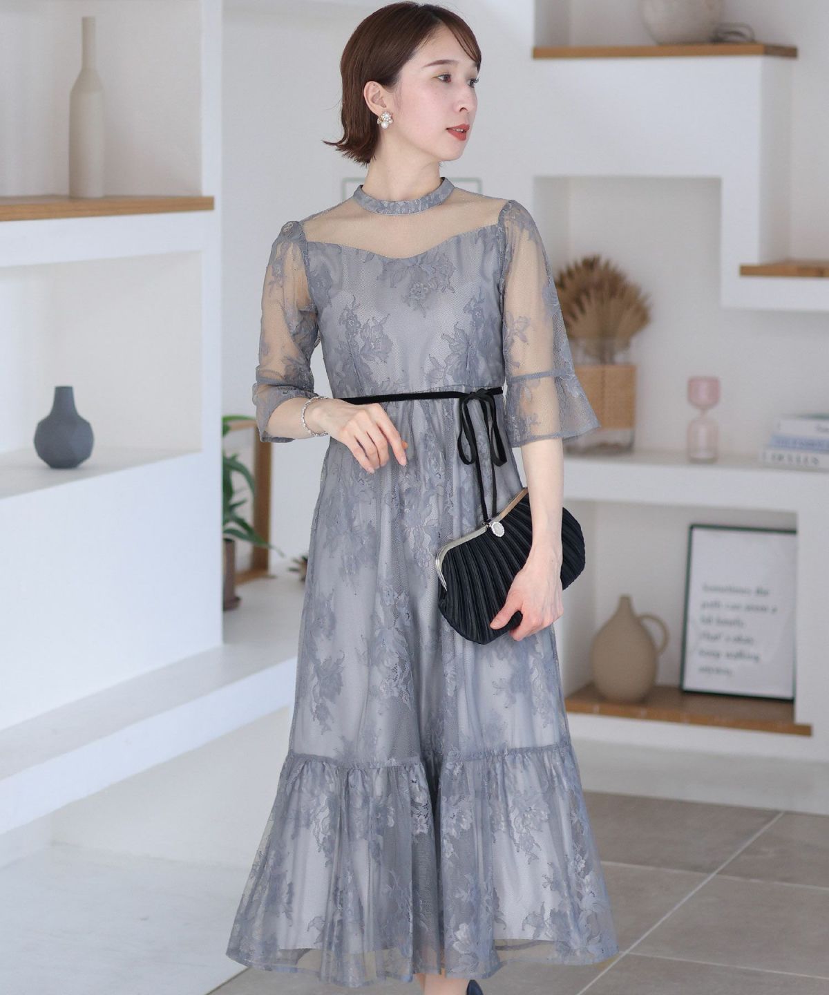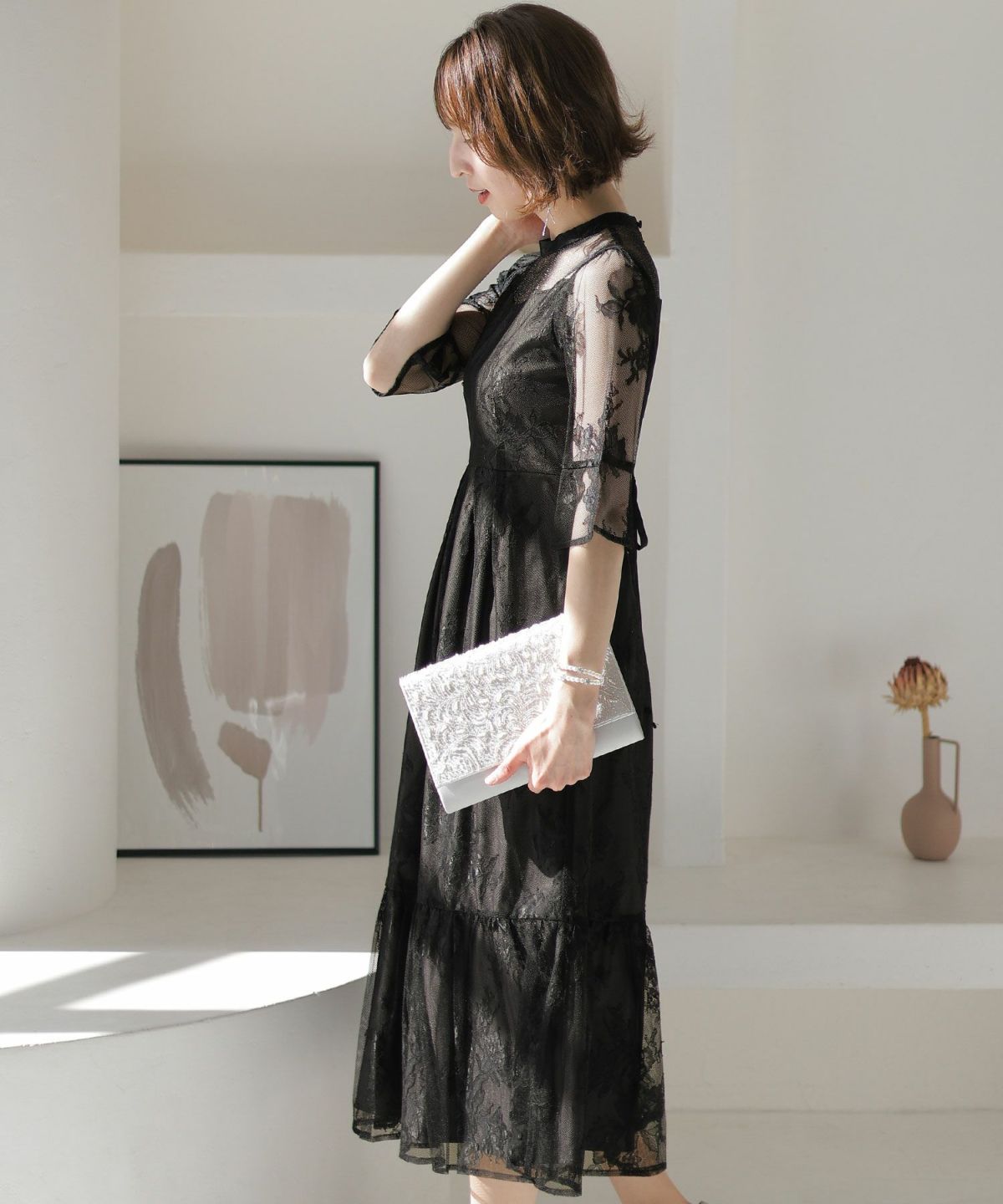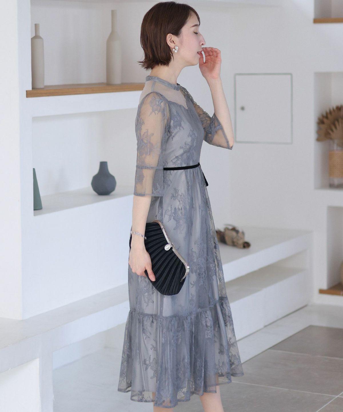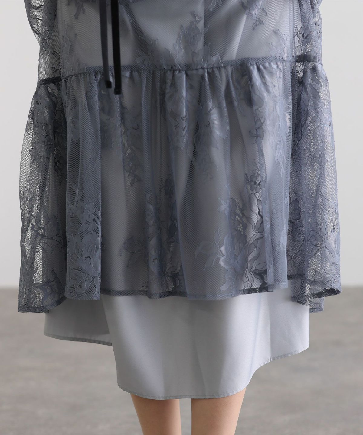 ■繊細なレースが大人女性にぴったり軽やかな生地感で着心地も良く、スカート裾のワンティアードデザインがさらに華やかさをプラスします。