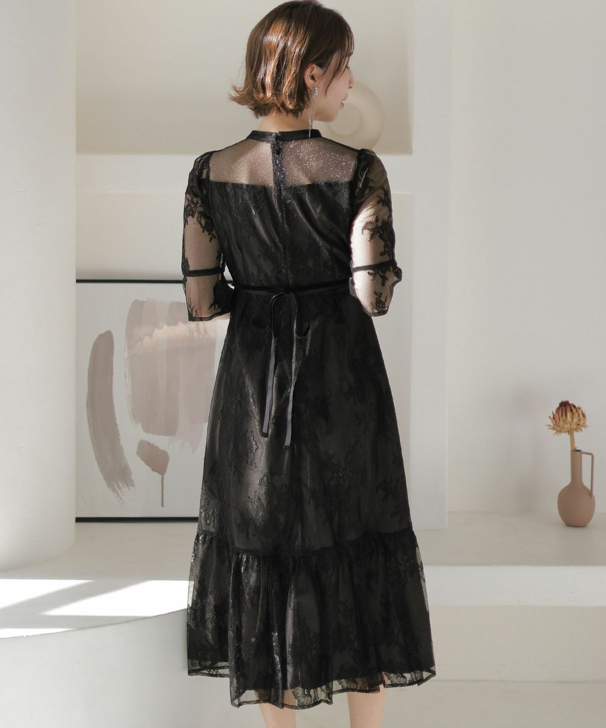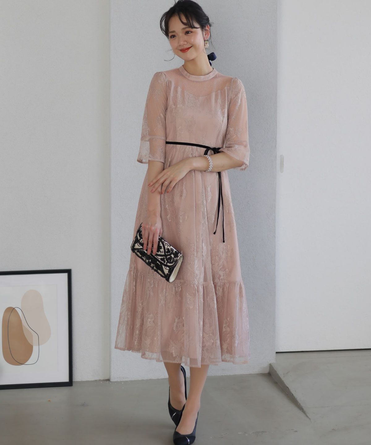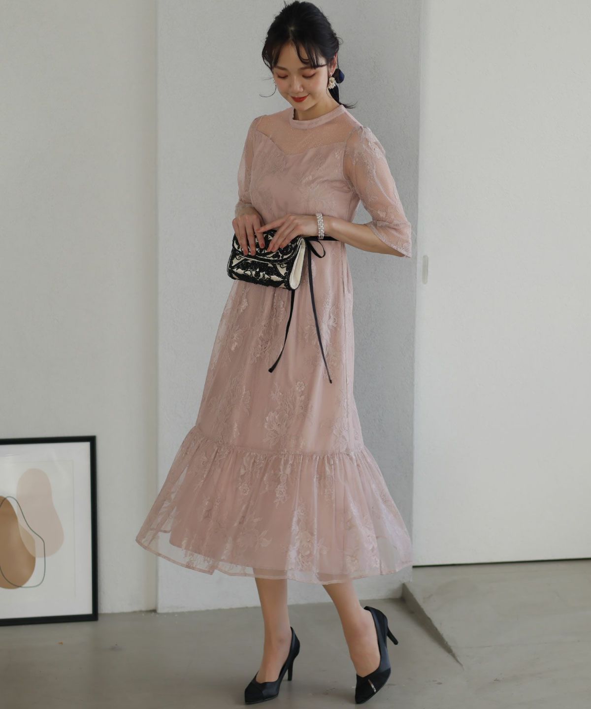 ■繊細なレースが大人女性にぴったり軽やかな生地感で着心地も良く、スカート裾のワンティアードデザインがさらに華やかさをプラスします。