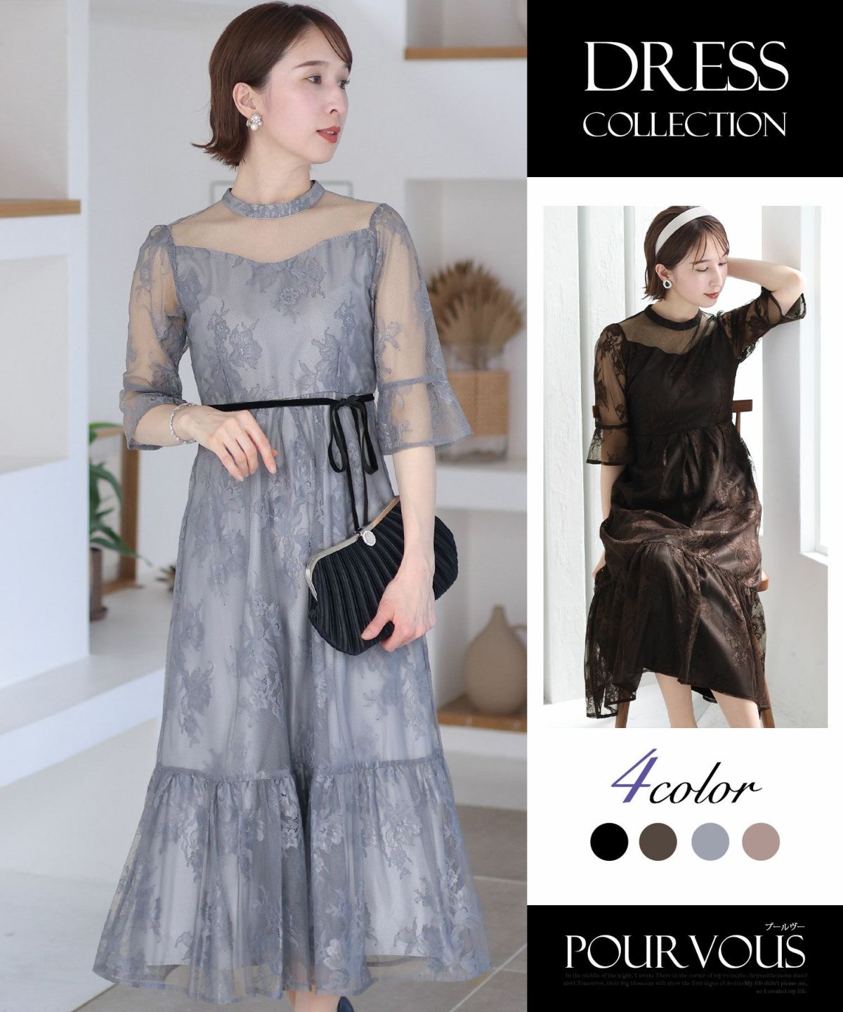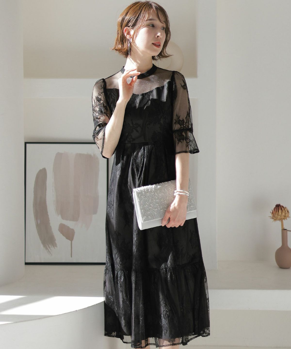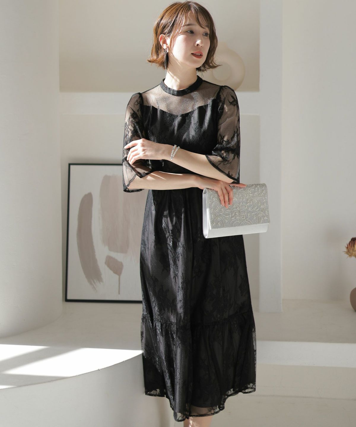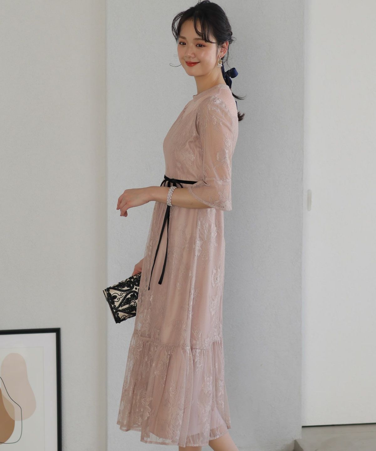 ■繊細なレースが大人女性にぴったり軽やかな生地感で着心地も良く、スカート裾のワンティアードデザインがさらに華やかさをプラスします。