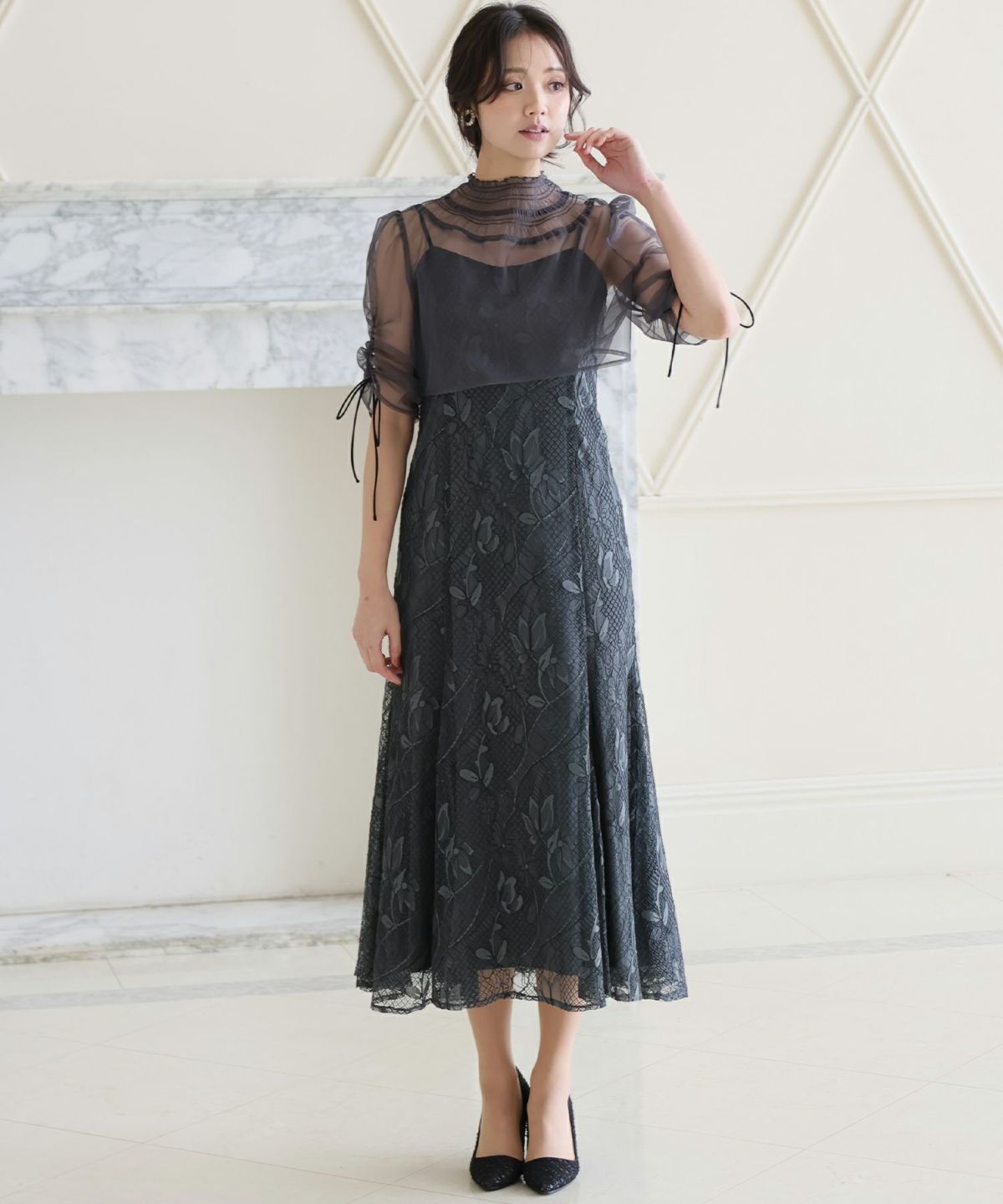 立体感のあるコードレースが高級感漂うデザインワンピース。