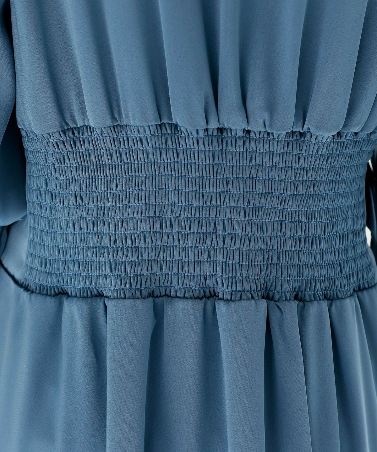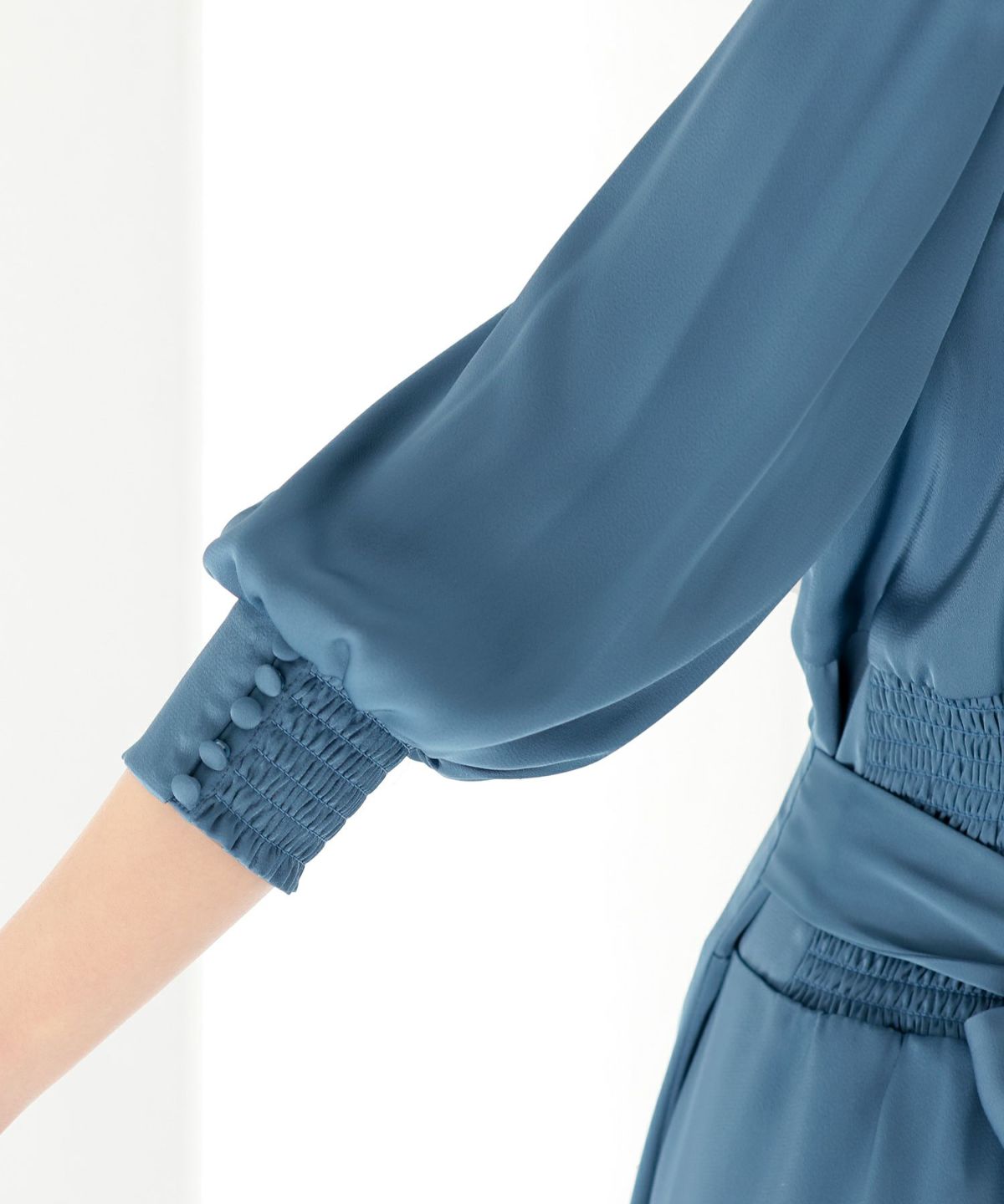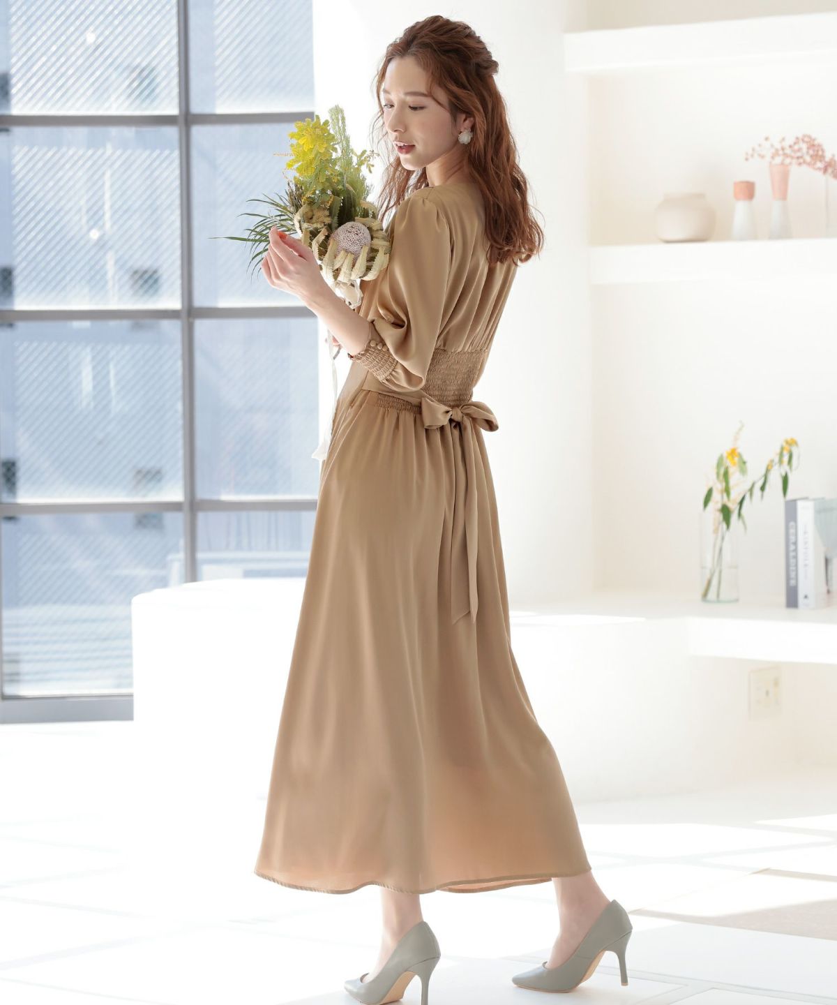 ■背面シャーリングとリボンで後ろ姿もエレガント
