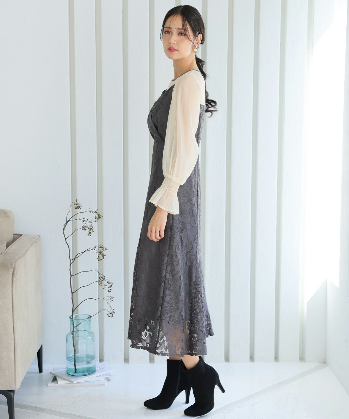 ふんわりした袖とマーメイドラインの組み合わせが可愛い