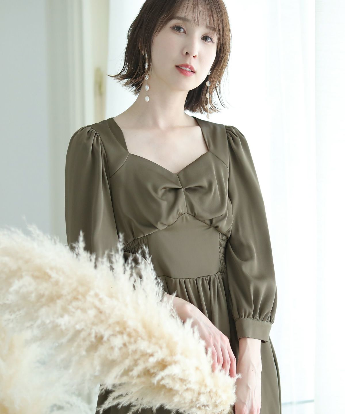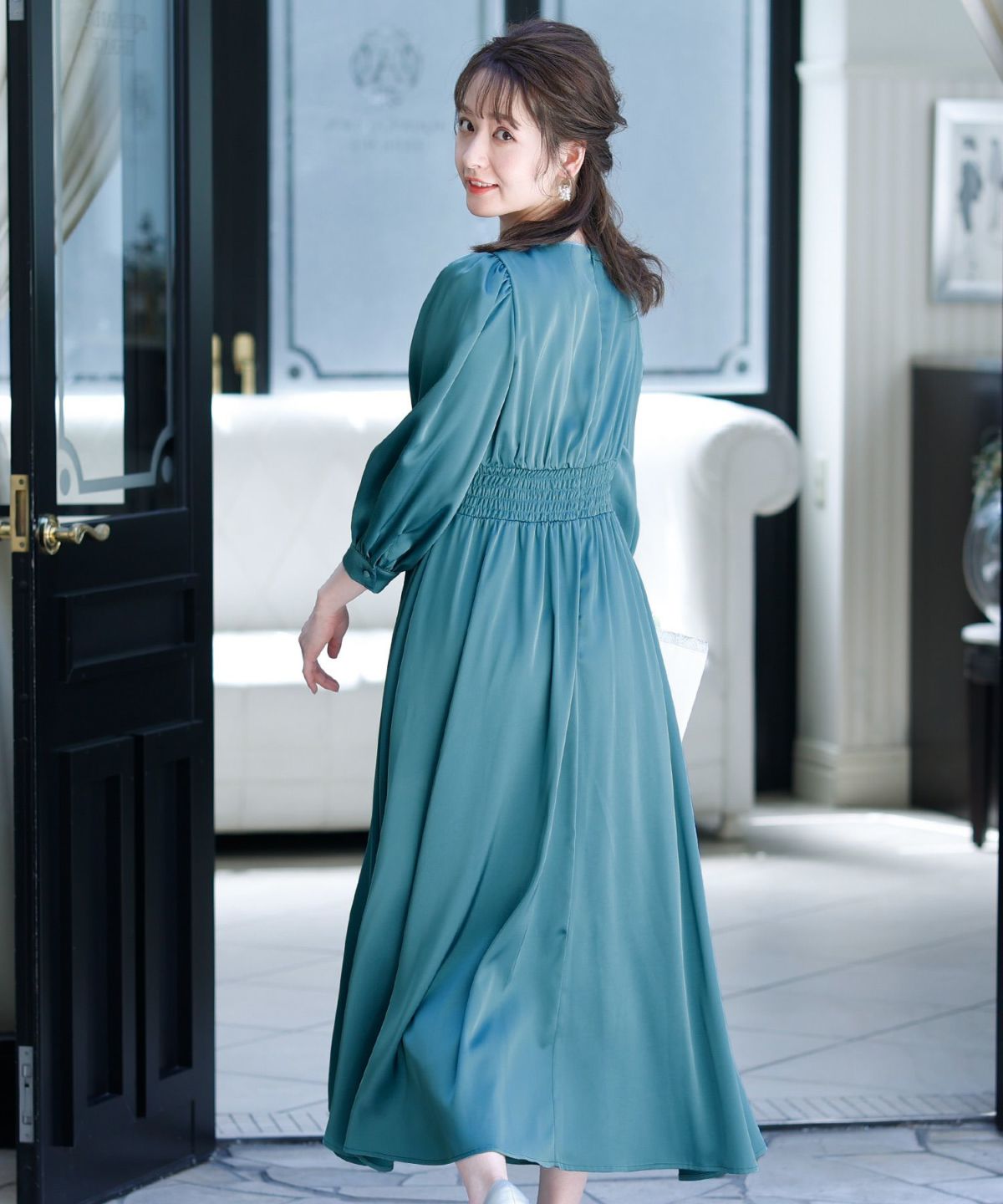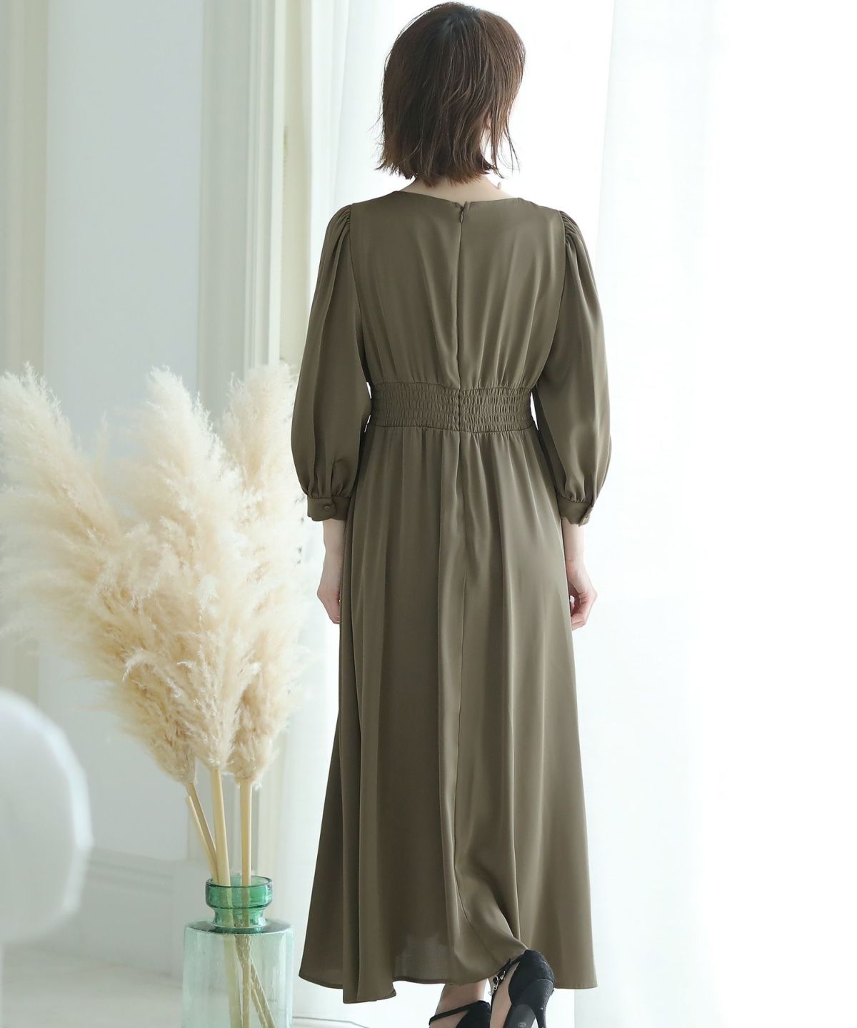 シンプルながらウエスト切り替えが高めでスタイルアップ効果のあるディティール。背面のラインも綺麗なAラインを描き、どこから見ても女性らしさのあるシルエットに。