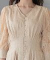 ボタンデザインがかわいいワンピース Vネックボタンレースワンピース