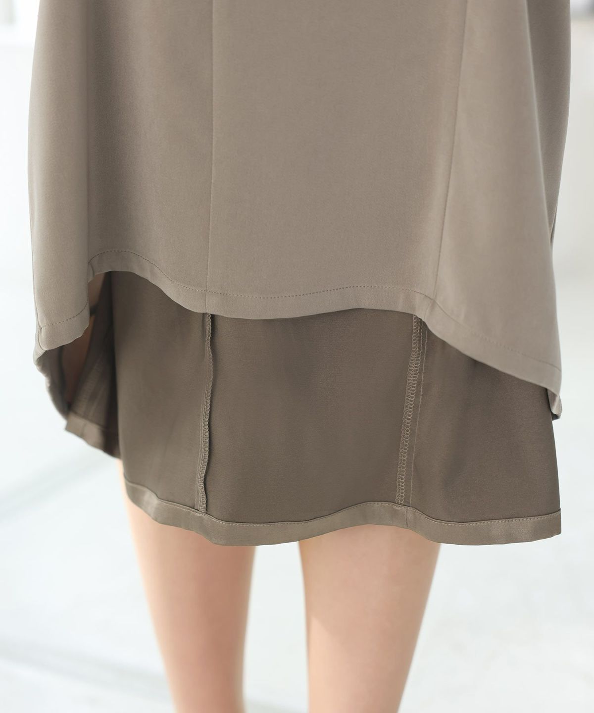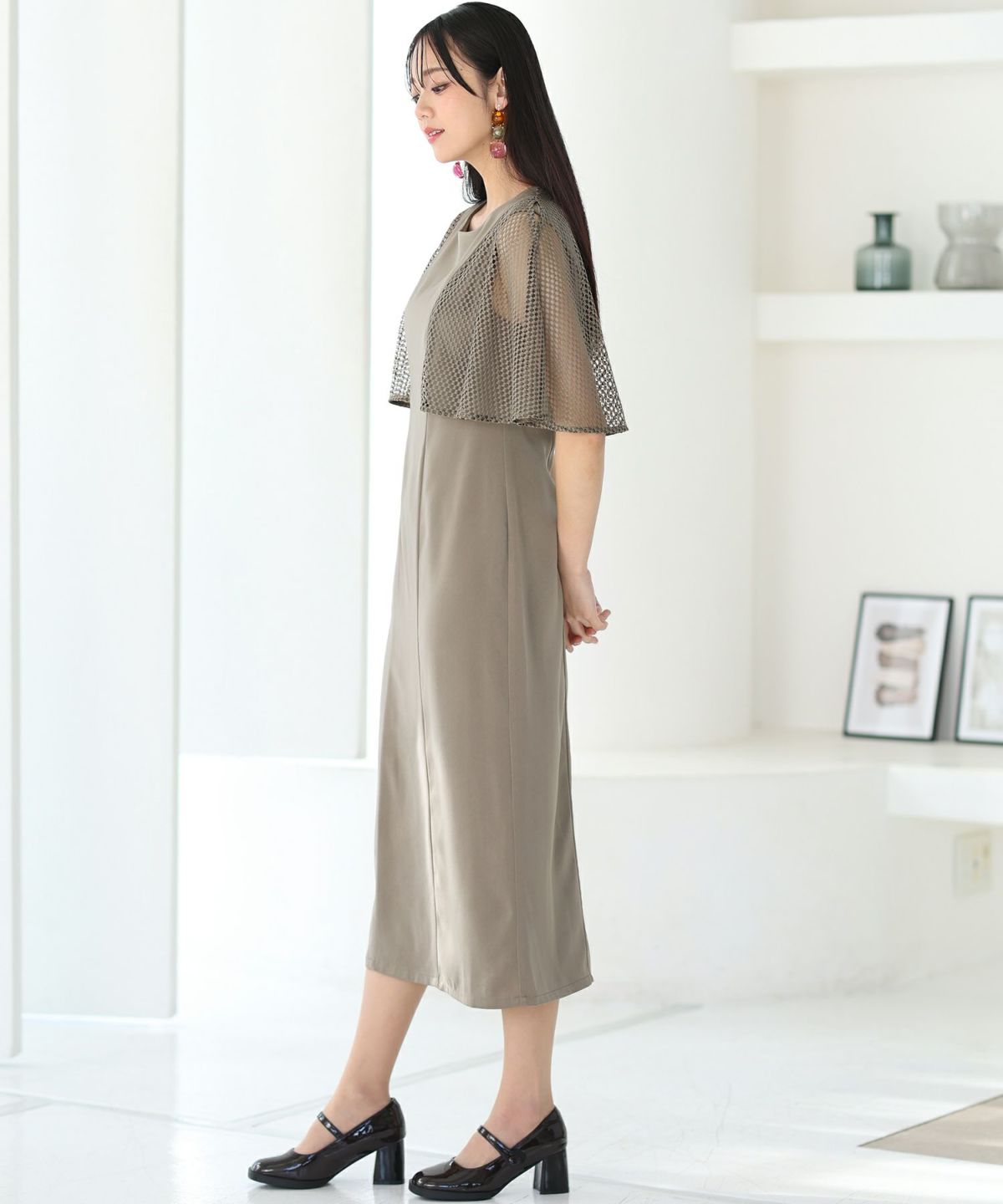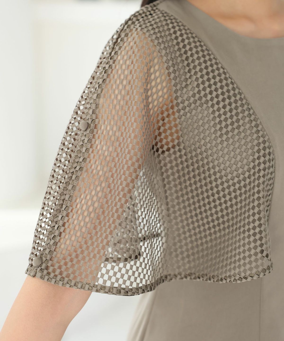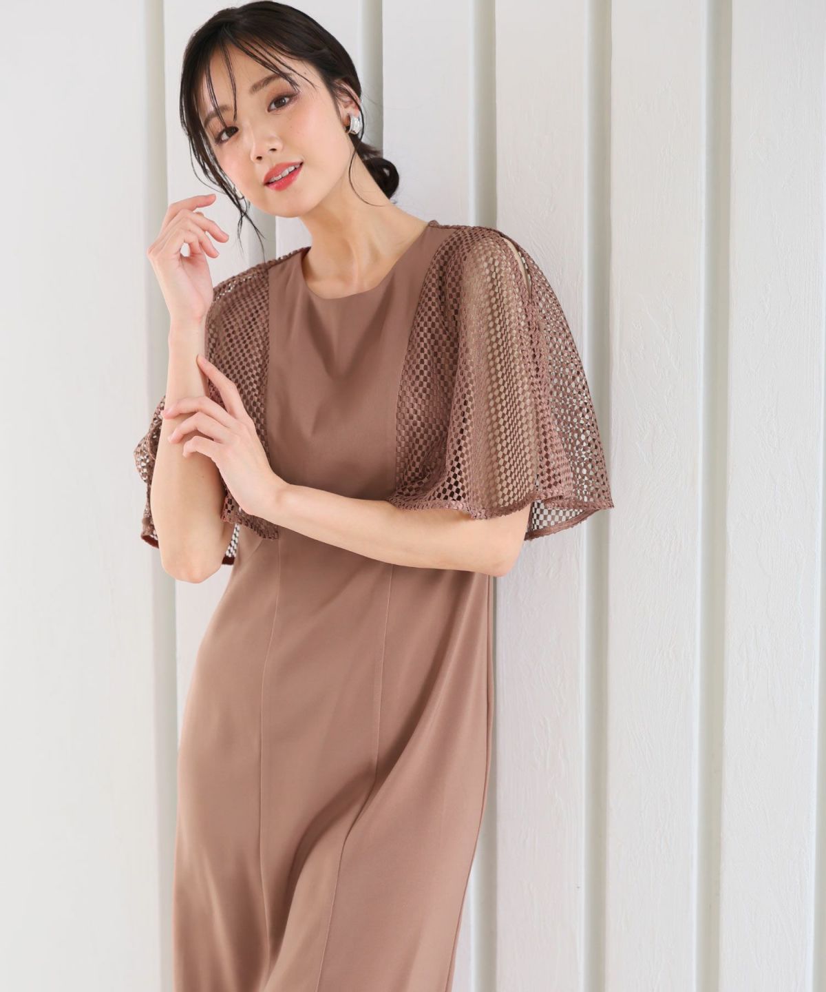 ケープスリーブが特徴的なタイトラインワンピース。袖のボタンを外すことで袖のデザインが変わり、2通りの着方を楽しめます。程よく広がりのある袖で、メリハリのあるラインを演出。シンプルなデザインなので、お食事会など様々なシーンで着用いただけます。