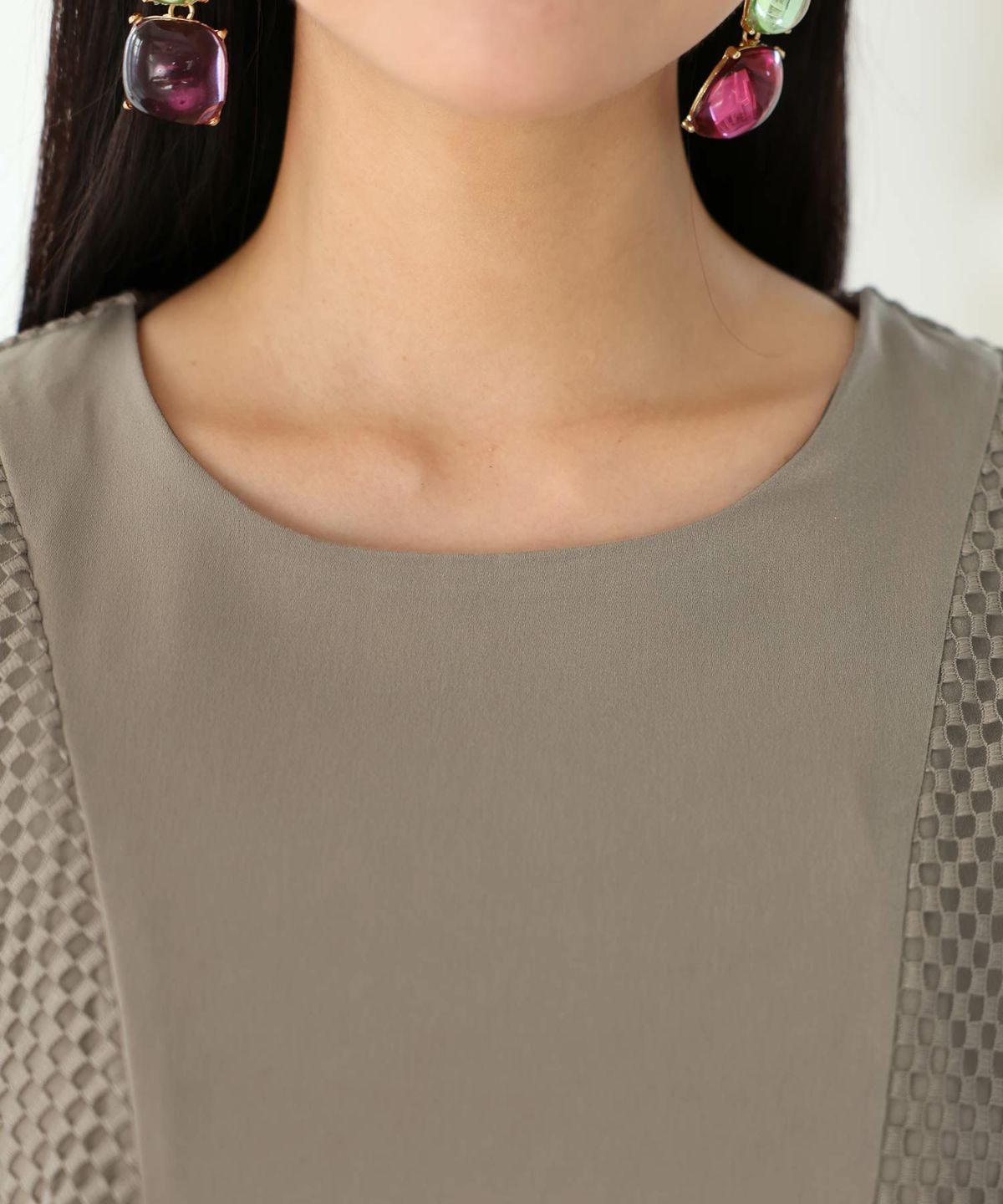 Uネックラインで顔回りをすっきりとした印象に。自然なウエストラインでスタイルアップ効果も期待できます。