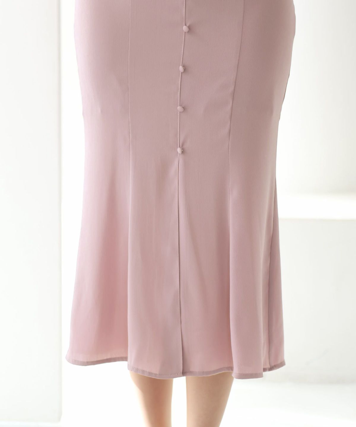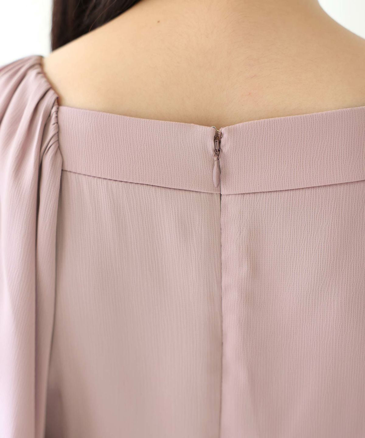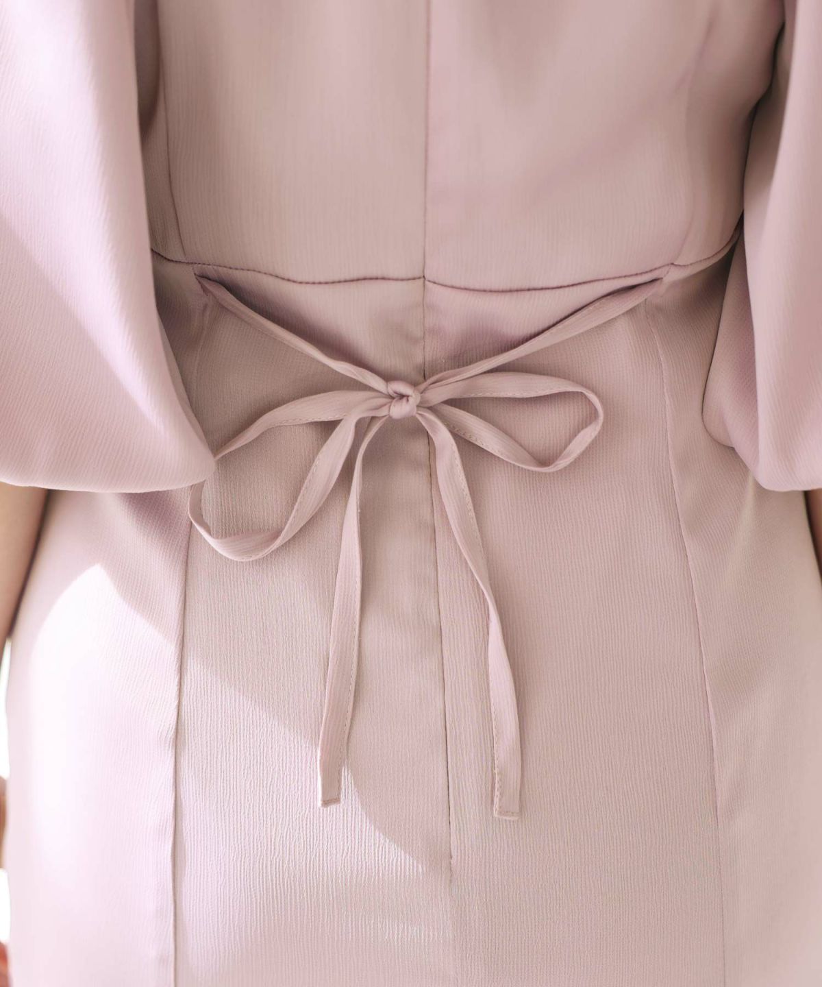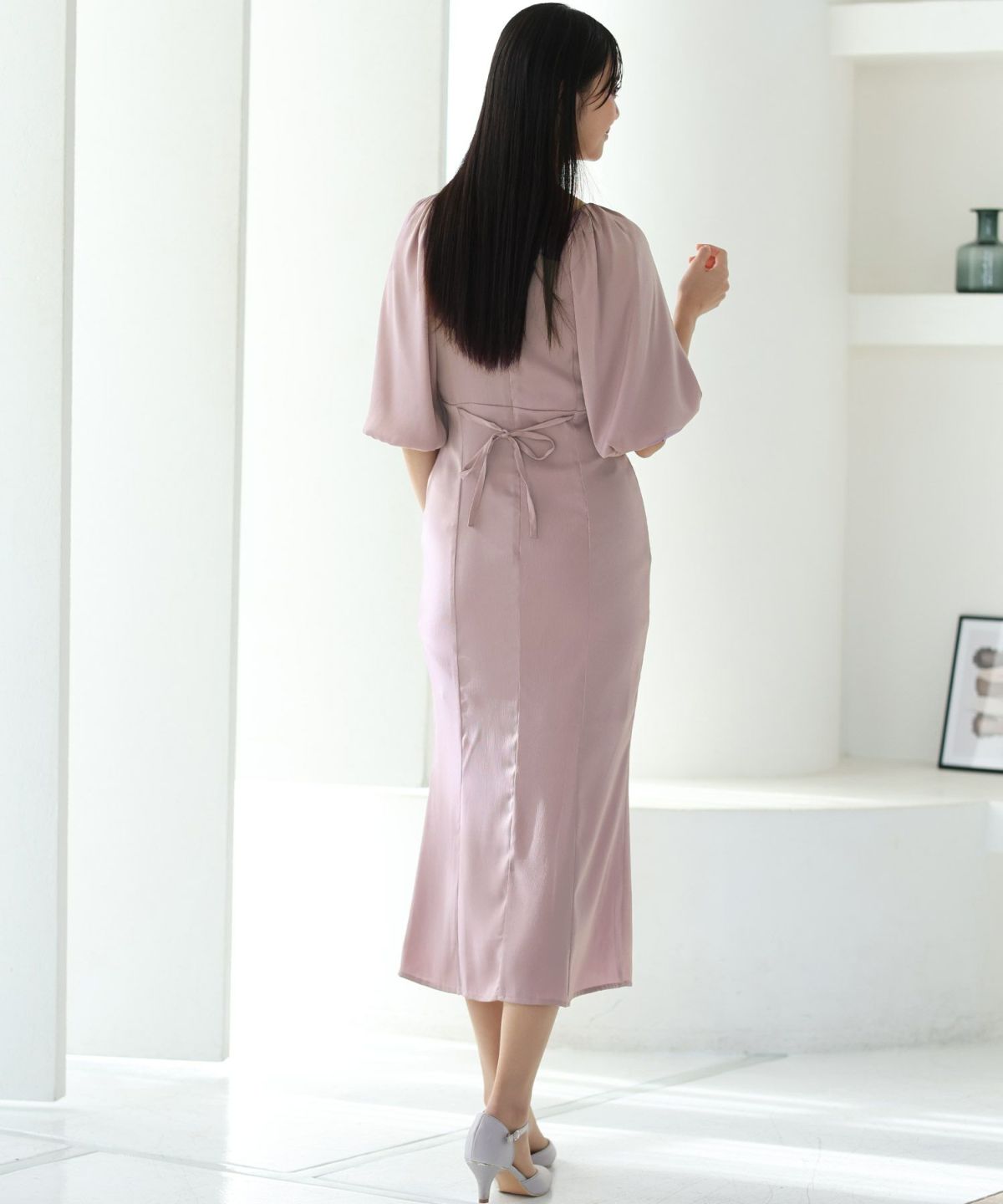光沢楊柳サテンを使用したマーメイドワンピース。ボリューム感のあるパフスリーブがデザインポイントです。ふんわりと広がる袖がフェミニンな雰囲気を演出。シンプルなデザインが上品で大人っぽい印象に。