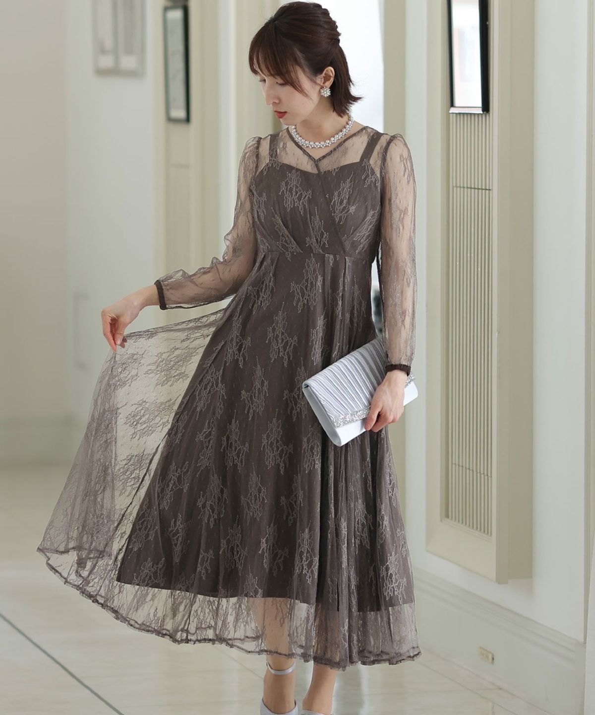 繊細に靡くレースが透明感引き出すシアーワンピース。