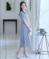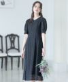 ■体型カバーポイント【二の腕】【脚】【ウエスト】【ヒップ】パフスリーブの丸みで着になる二の腕を可愛くカバー。ハイウエスト切り替えなので脚長効果あり。