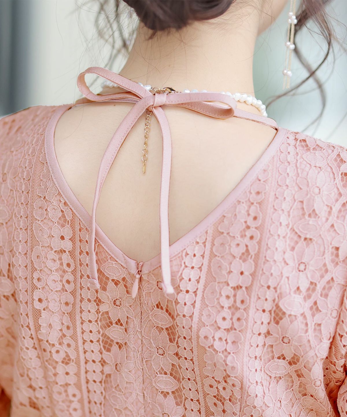■プリーツが華やかなドレス総コットンレース使用でナチュラルな風合いとガーリーさを演出。フレアな裾が歩くたびに綺麗に靡きます。首元のV字に開いた背面デザインとバックリボンがポイント。大人かわいいスタイルを叶えるアイテムです。