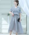 オーガンジー素材の二重袖が可愛い 二重袖フィレ・レース風ワンピース