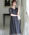 カシュクールと透け感が上品 ラメチュール切替ワンピース