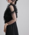 チュールとプリーツのスカートが、フェミニンな雰囲気を演出します。