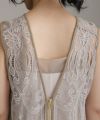デコルテ部分に施されたレースが、控えめな透け感で上品さを引き立てます。