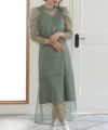 ■トレンドのパワーショルダーが可愛い体型カバーポイント:【二の腕】【脚】【ウエスト】【ヒップ】トレンドのパワーショルダーとデコルテの透け感が華やかなデザイン。足元の透け感も全体が重くなり過ぎず足元をカバーしてくれます。