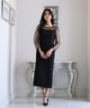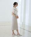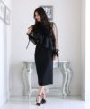 モダンなデザインとエレガントな雰囲気が特徴的なオーガンジーケープのパーティードレス。