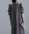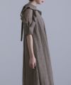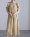 フリルの下のカフス袖がさりげなくオシャレ ハイネックショルダーフリルワンピース