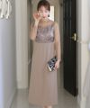 ■ラメチュール×刺繍レースラメチュールと刺繍レースの切り替えが美しく存在感のあるドレスです。きらびやかなラメチュールは華やかでエレガントな印象に。すっきりしたデザインのスカートがコーデを上品にまとめてくれます。レースから見えるサテンの光沢感で高見え効果が期待できます。