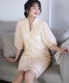 ■ケミカルレース×オーガンジーケミカルレースレースとオーガンジーの透け感が可愛いワンピースです。Iラインシルエットとキーネックが女性らしいデザイン。ふわっとしたボリュームのあるスリーブがさらに可愛さをプラス。オケージョンシーンはもちろんお食事会や特別なデートにもおすすめです。