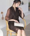 ■肌触りのいいオーガンジー素材を使用Iラインのすっきりとしたシルエットがエレガントでこなれた雰囲気に。