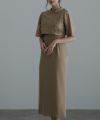 ■タイトなデザインでシルエットを美しく体型カバーポイント:【二の腕】【脚】【ウエスト】【ヒップ】ウエスト部分のタックと背面のシャーリングで細見え効果。ボレロを着るとハイネックになり首元をスッキリした印象に。