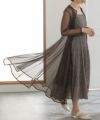 ■透け感チュール×小花柄幾何学模様のチュールからチラッと覗く小花柄が可愛いワンピース。チュールの羽織はフック留めになっており、前開けも簡単にできます。透け感のあるチュール生地が動くたびにふんわり広がり女性らしさを演出してくれます。インナーをカジュアルアイテムと合わせることもでき、自由にアレンジを楽しんでいただけます。