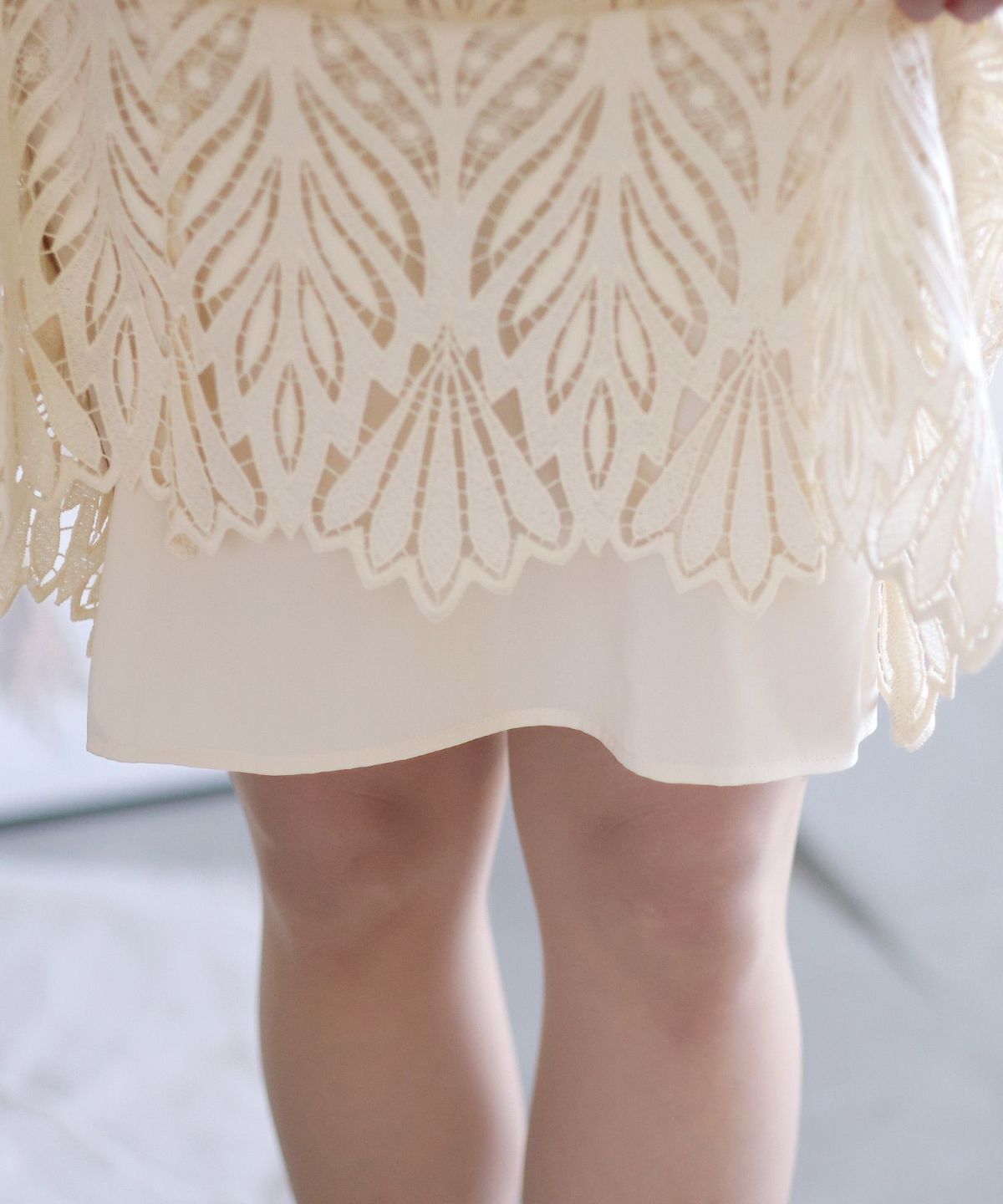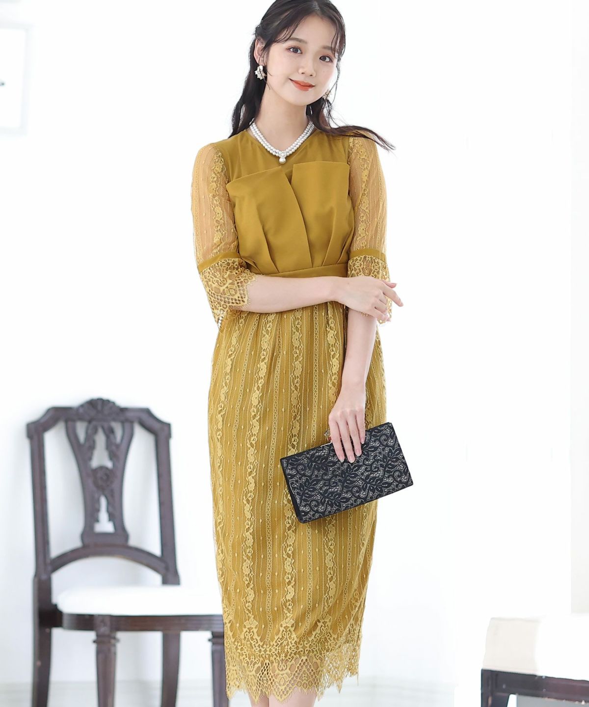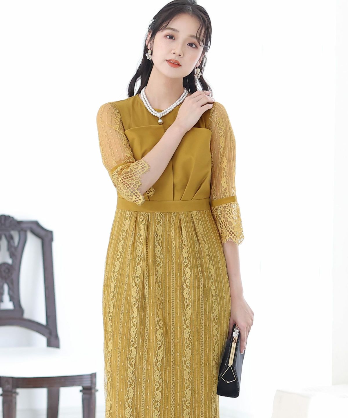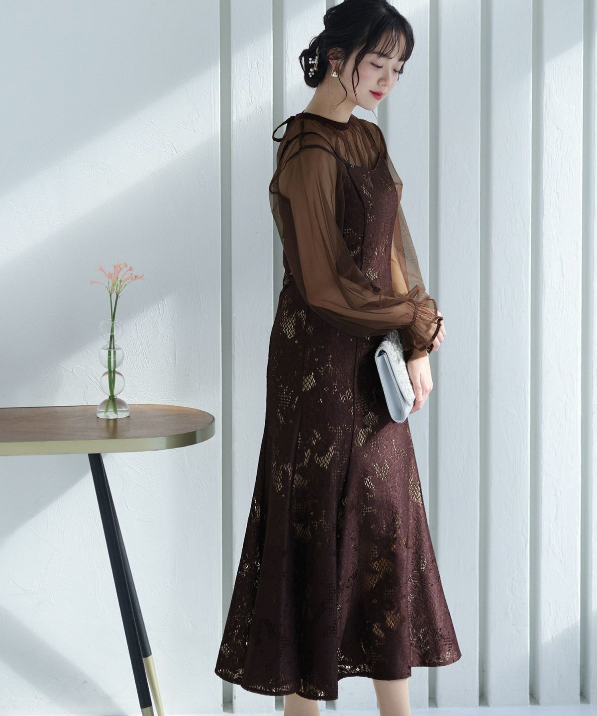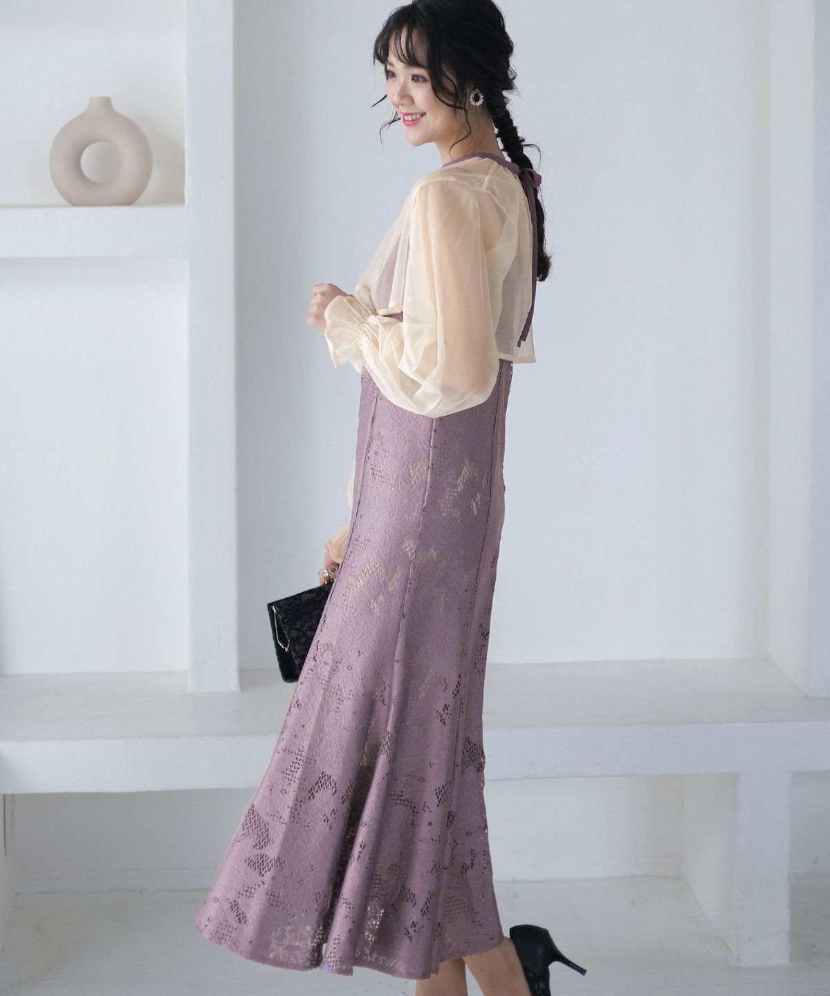 キャンディースリーブ×マーメイドシルエットが大人可愛い ジレ付きレースワンピース