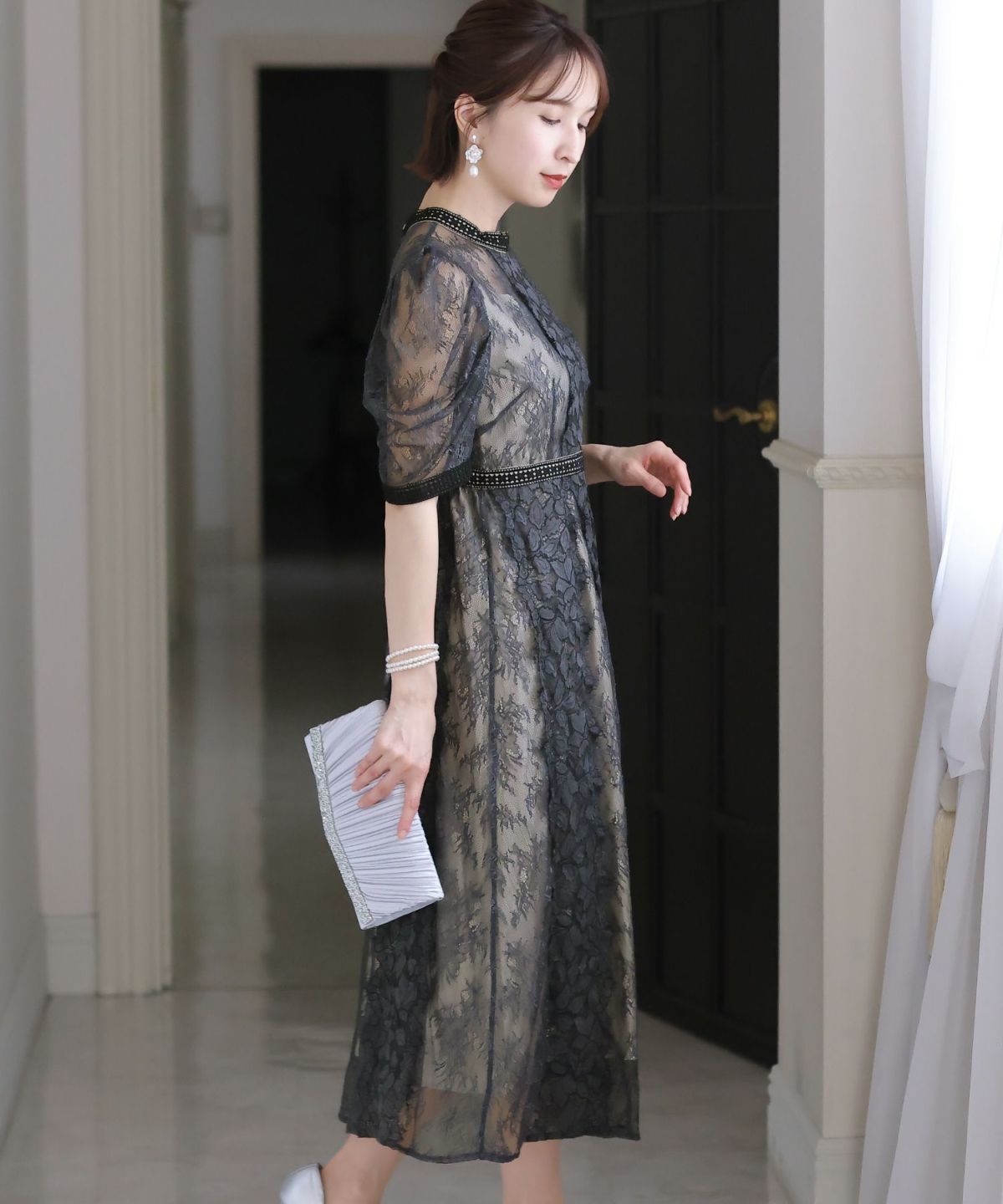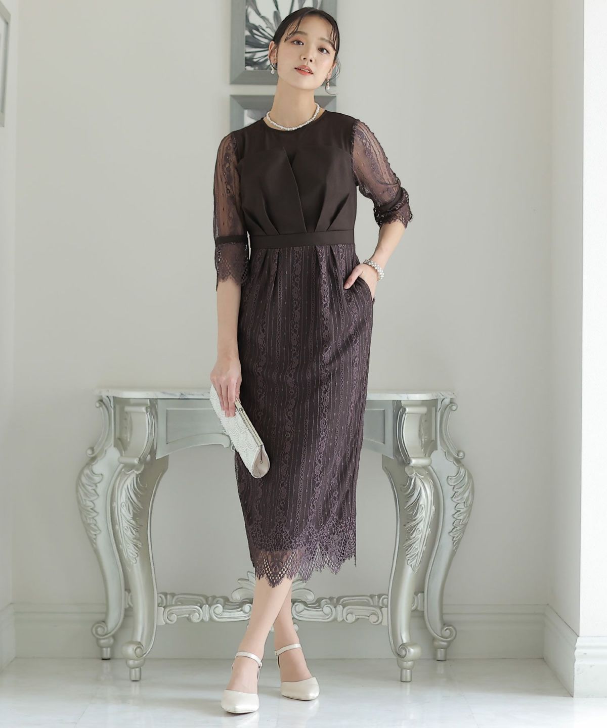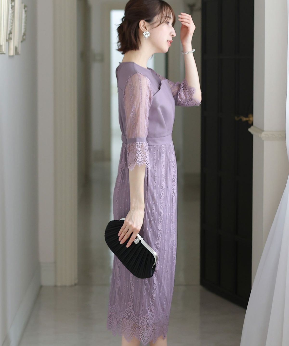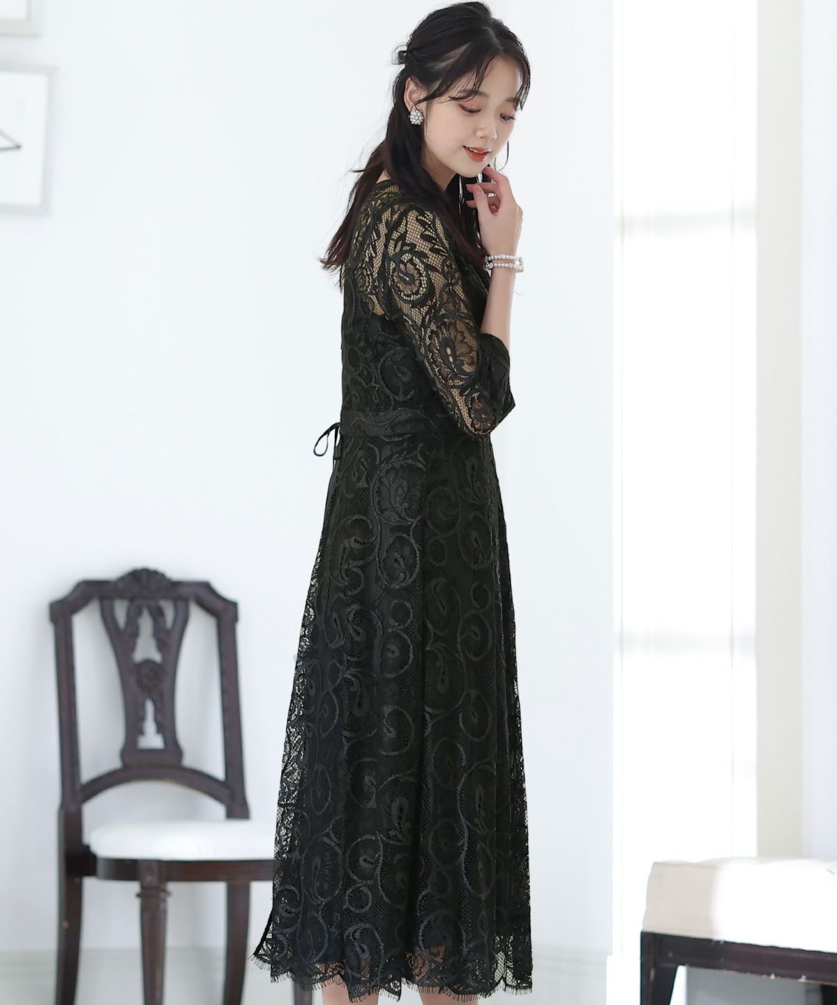 上品×光沢感 総レースタイトシルエットワンピース
