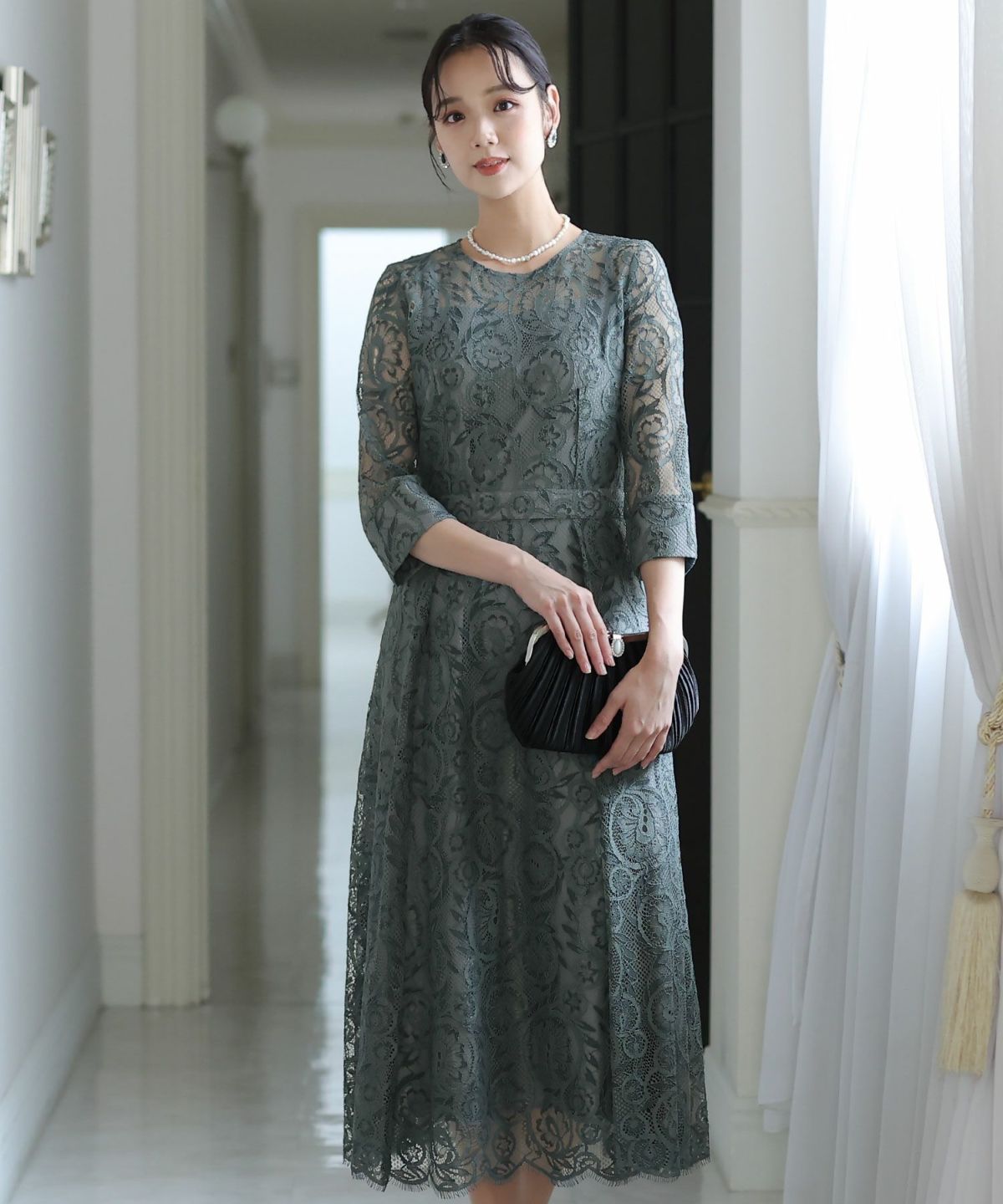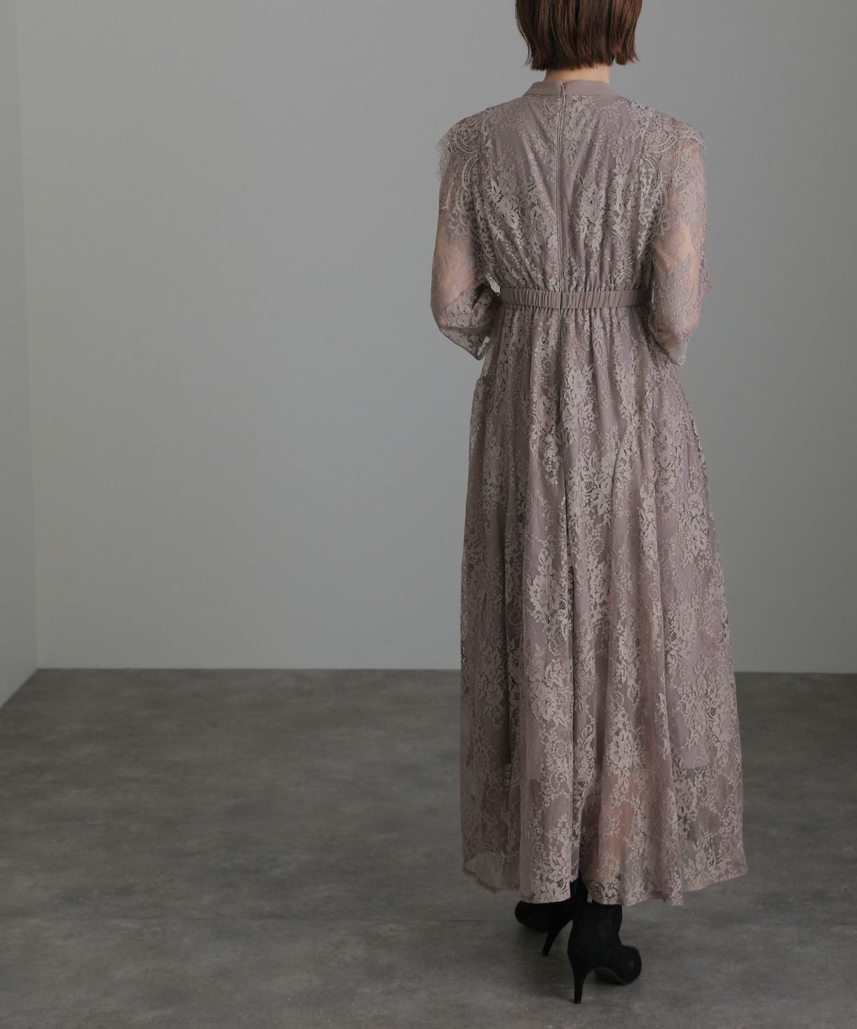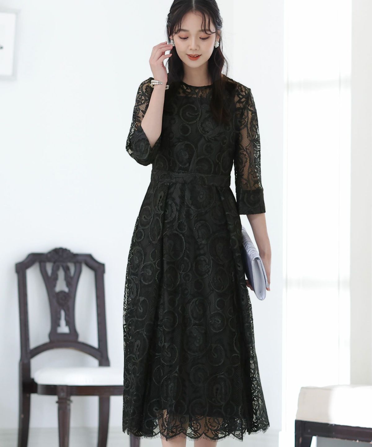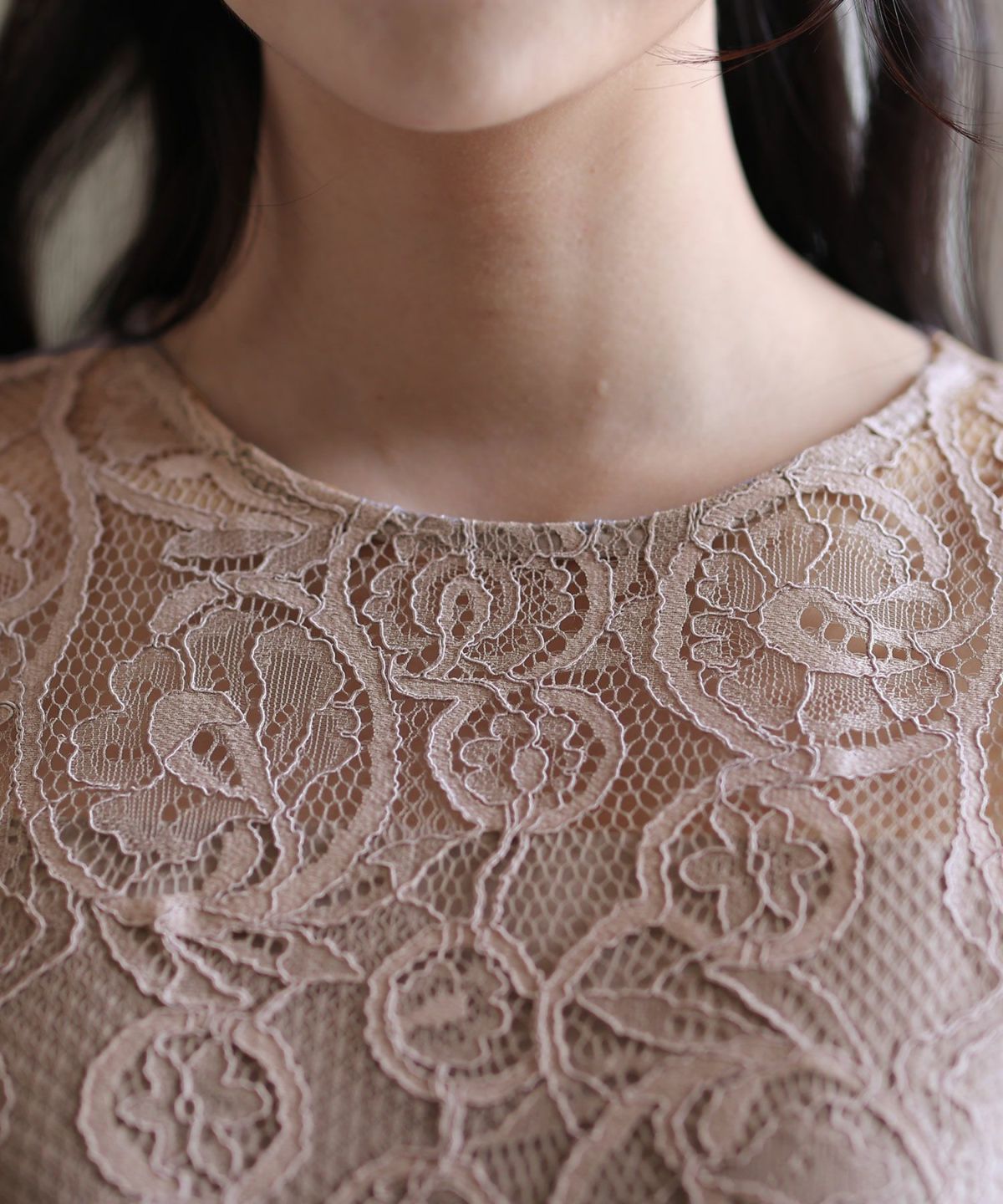 上品×光沢感 総レースタイトシルエットワンピース