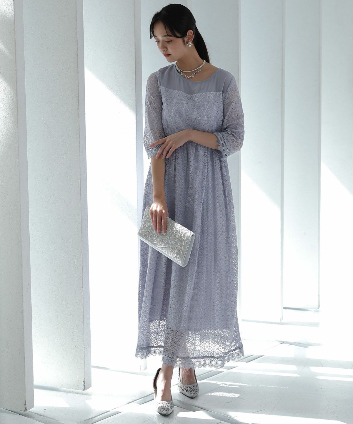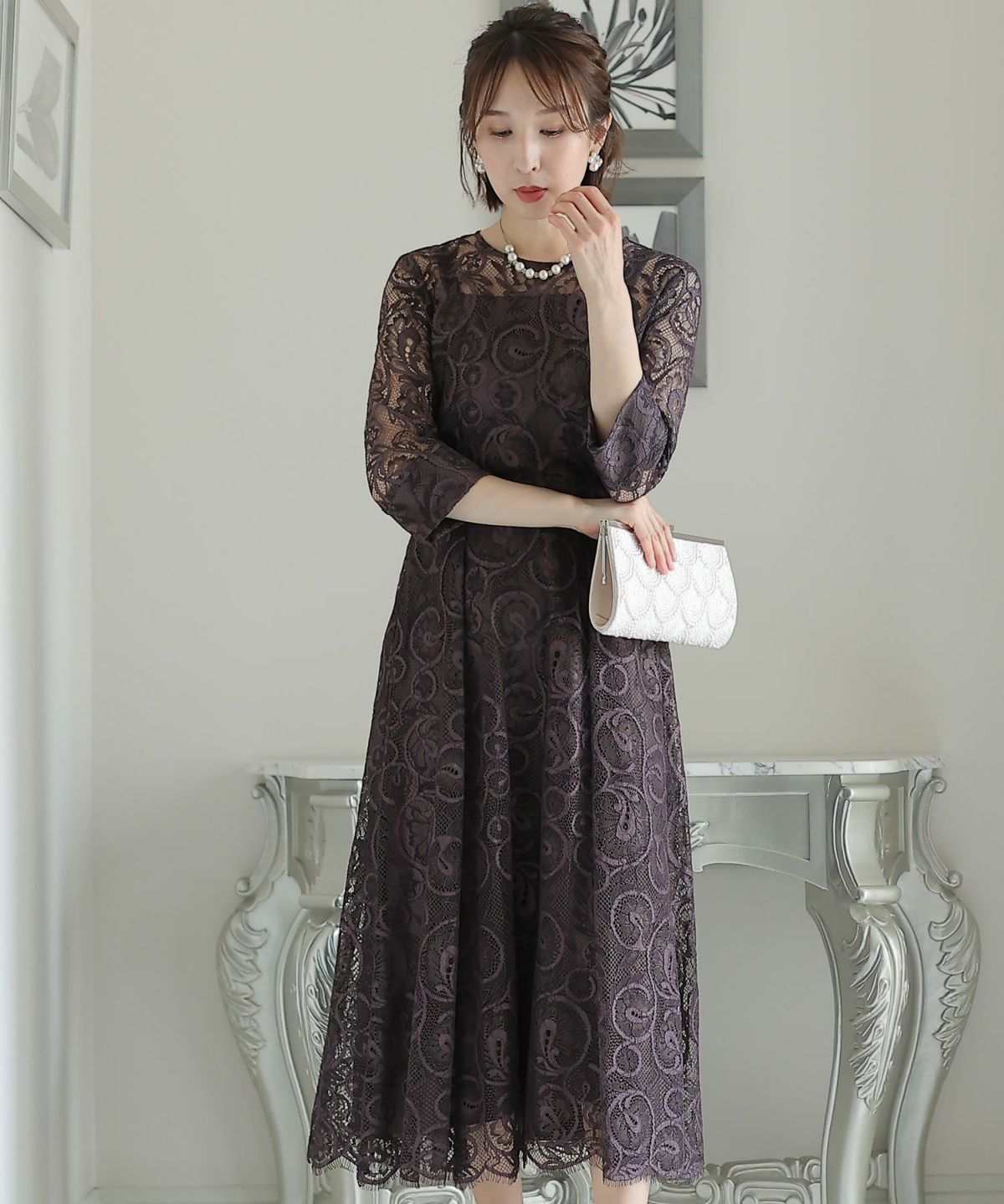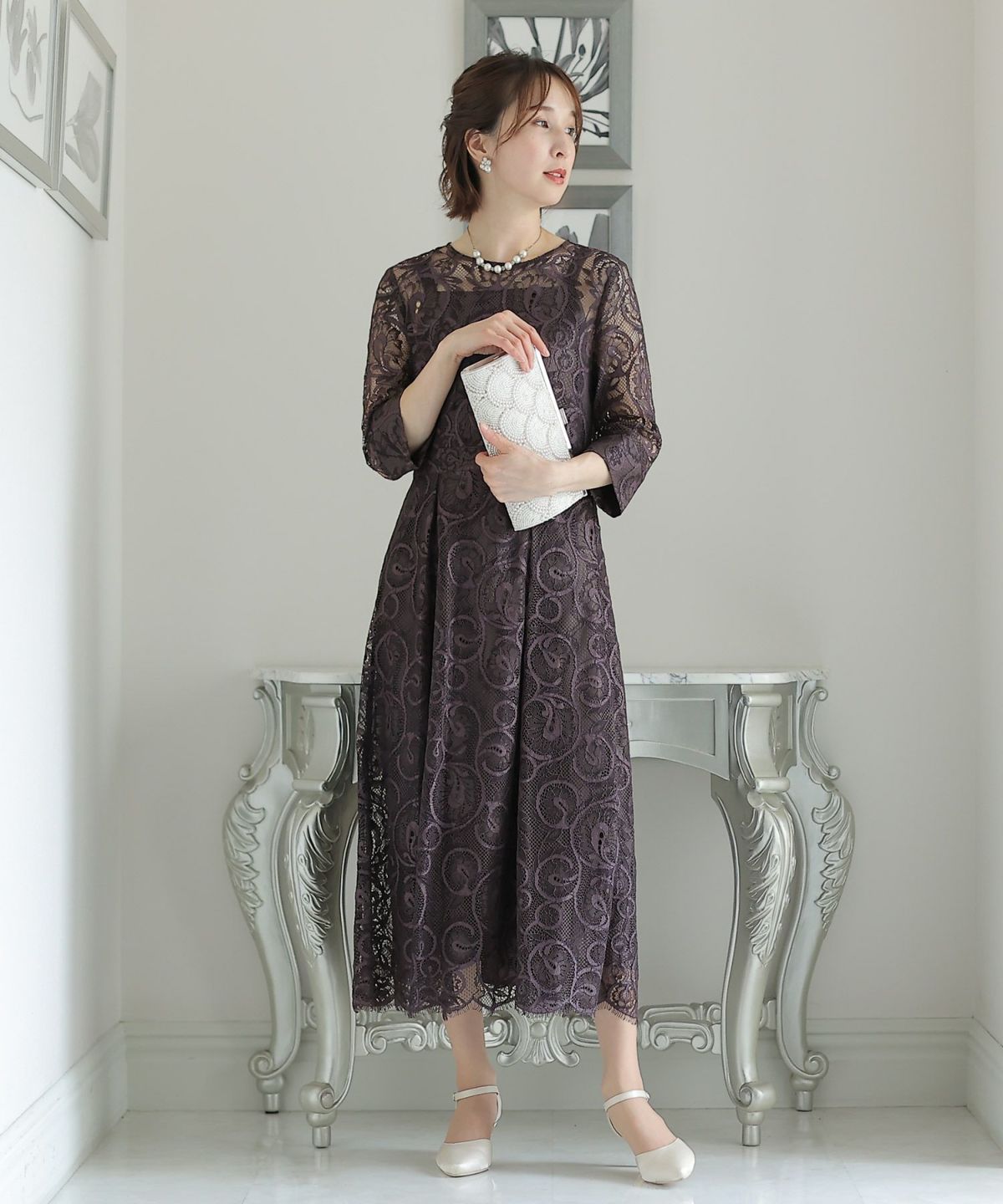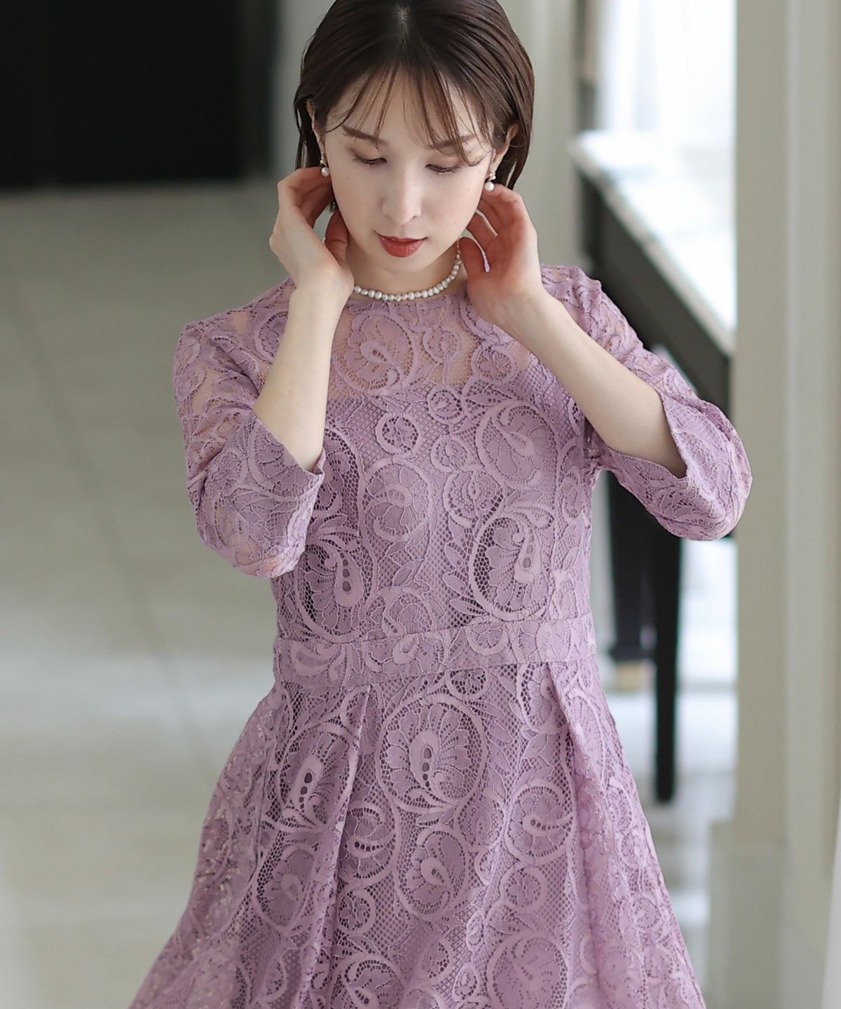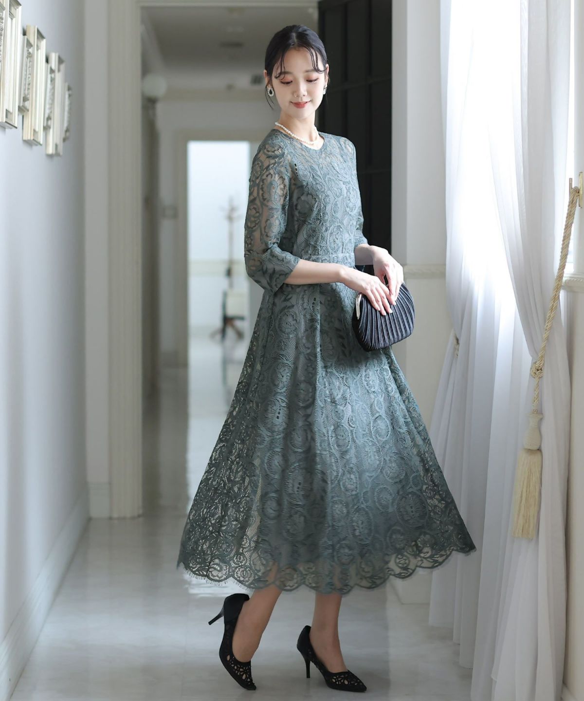 上品×光沢感 総レースタイトシルエットワンピース