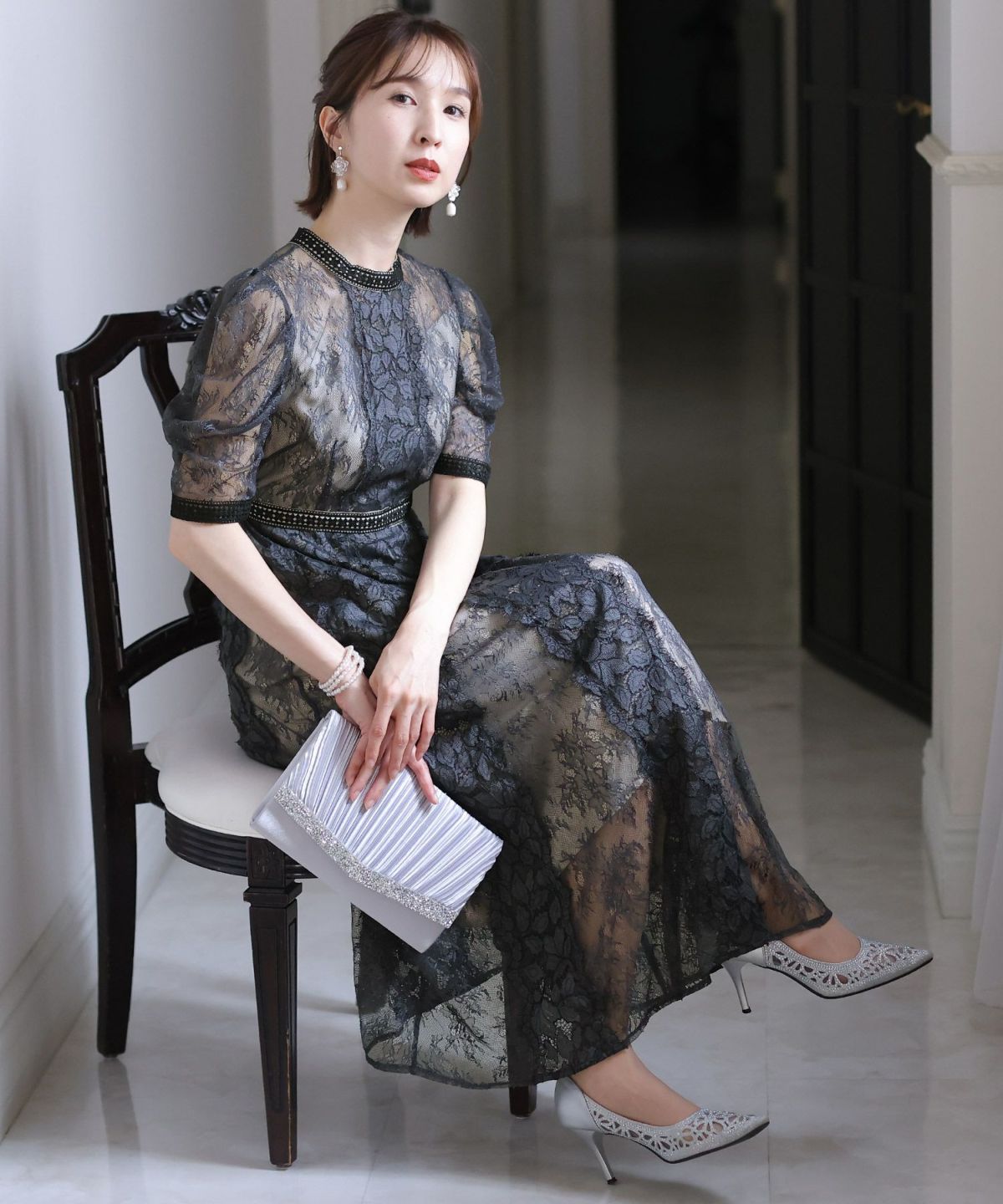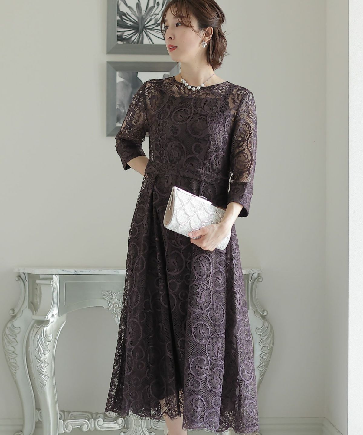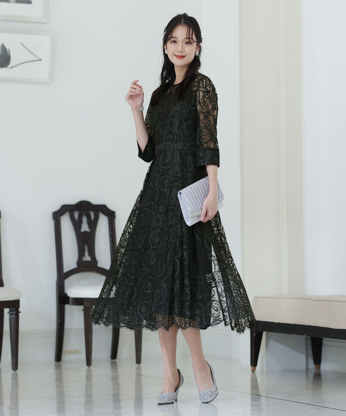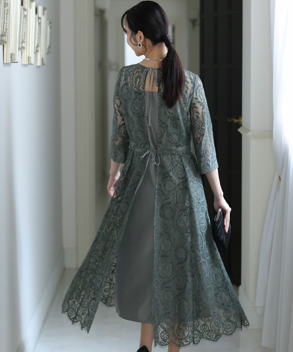 上品×光沢感 総レースタイトシルエットワンピース