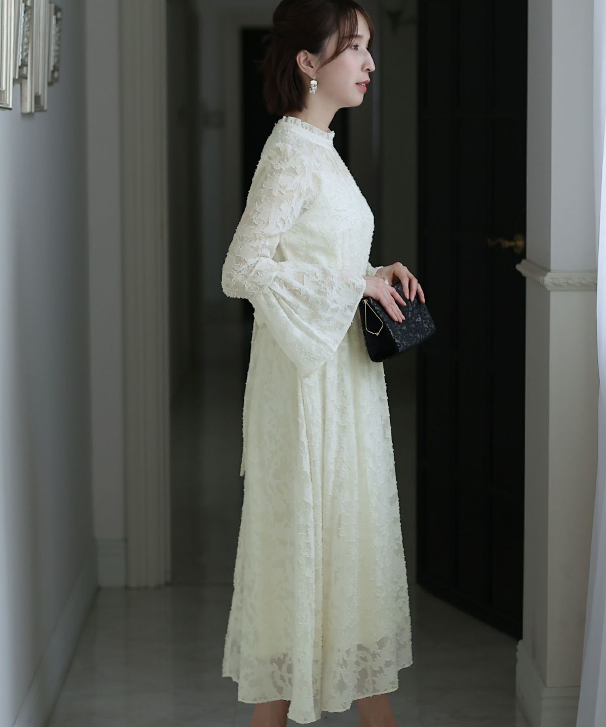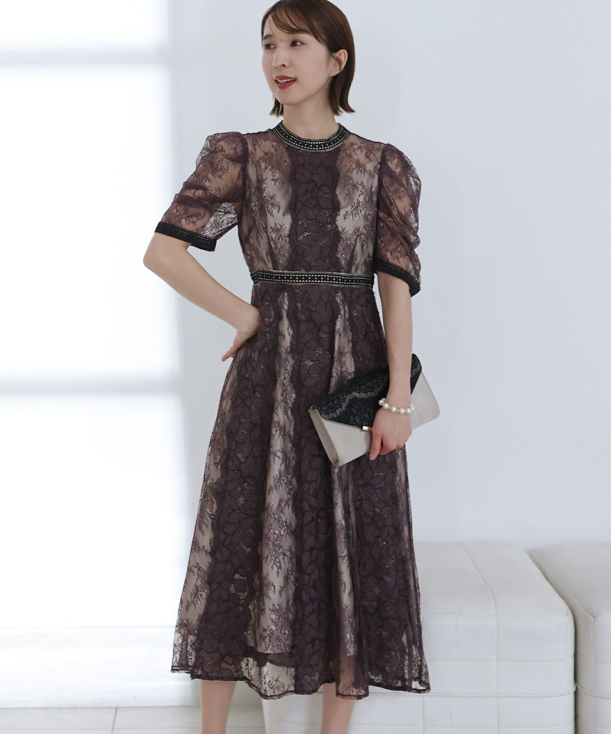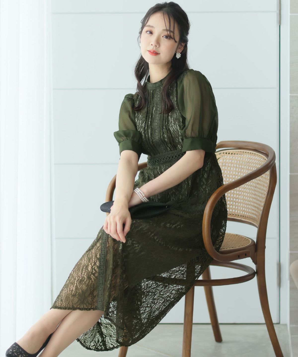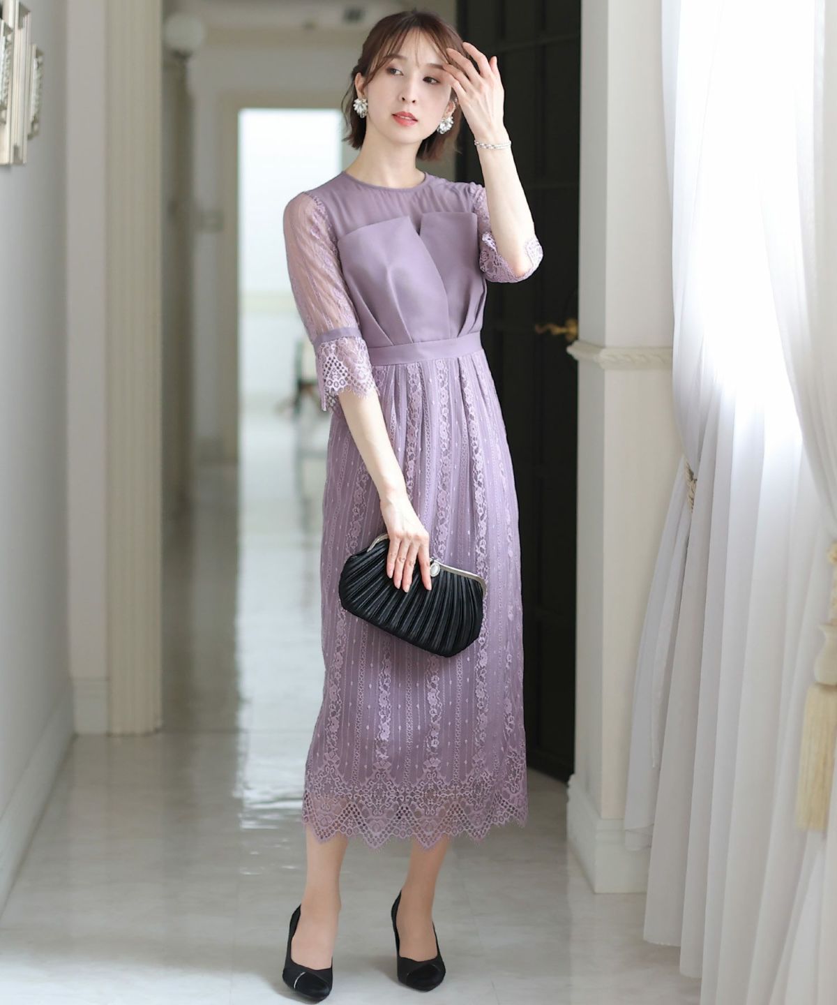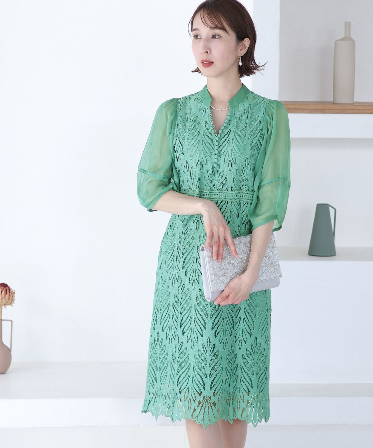 ベルスリーブが上品 シアージャガードレースワンピース