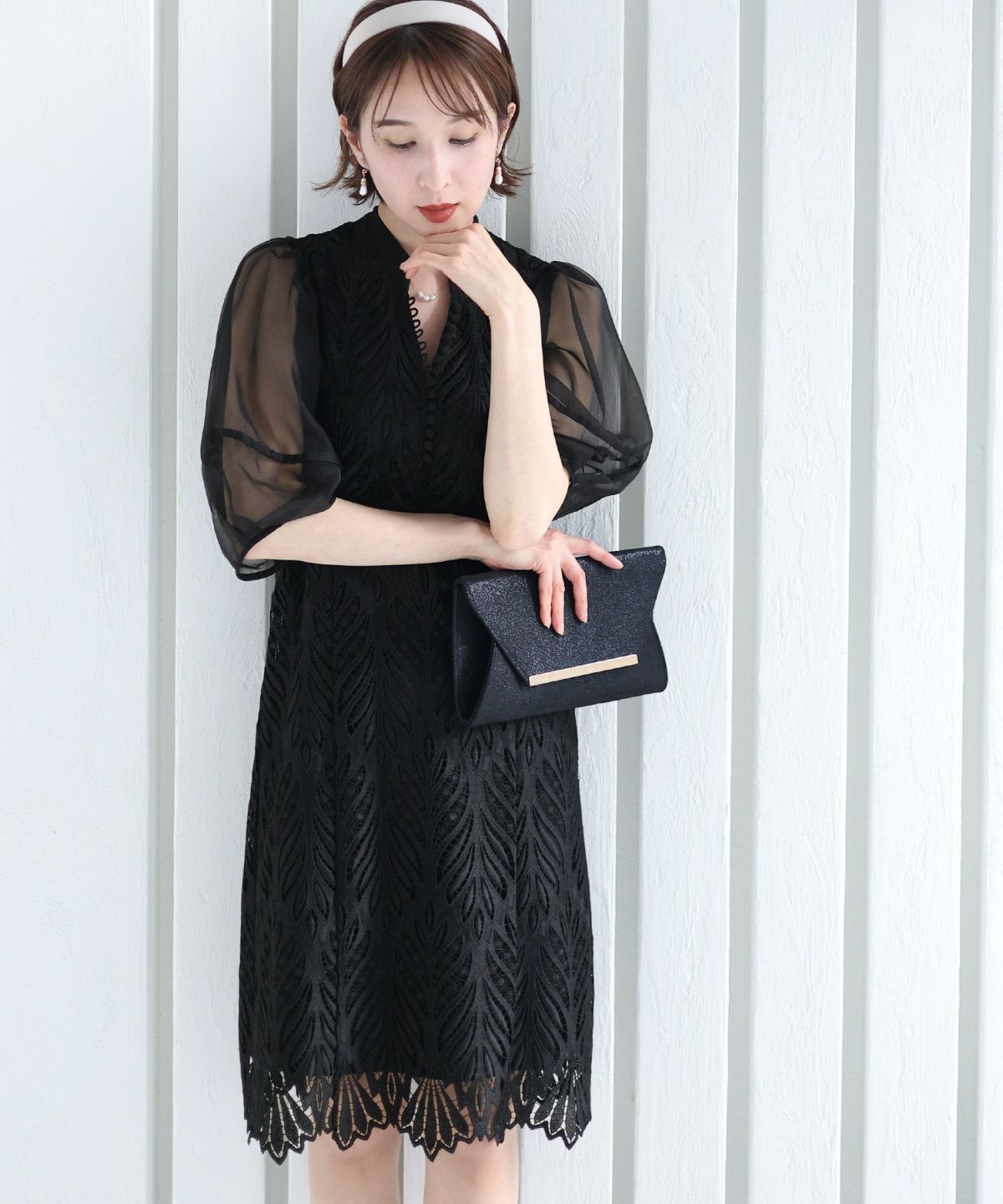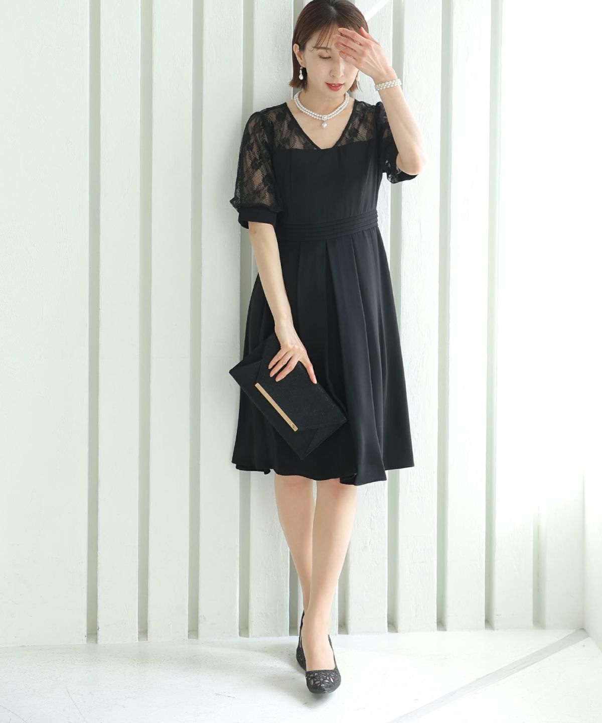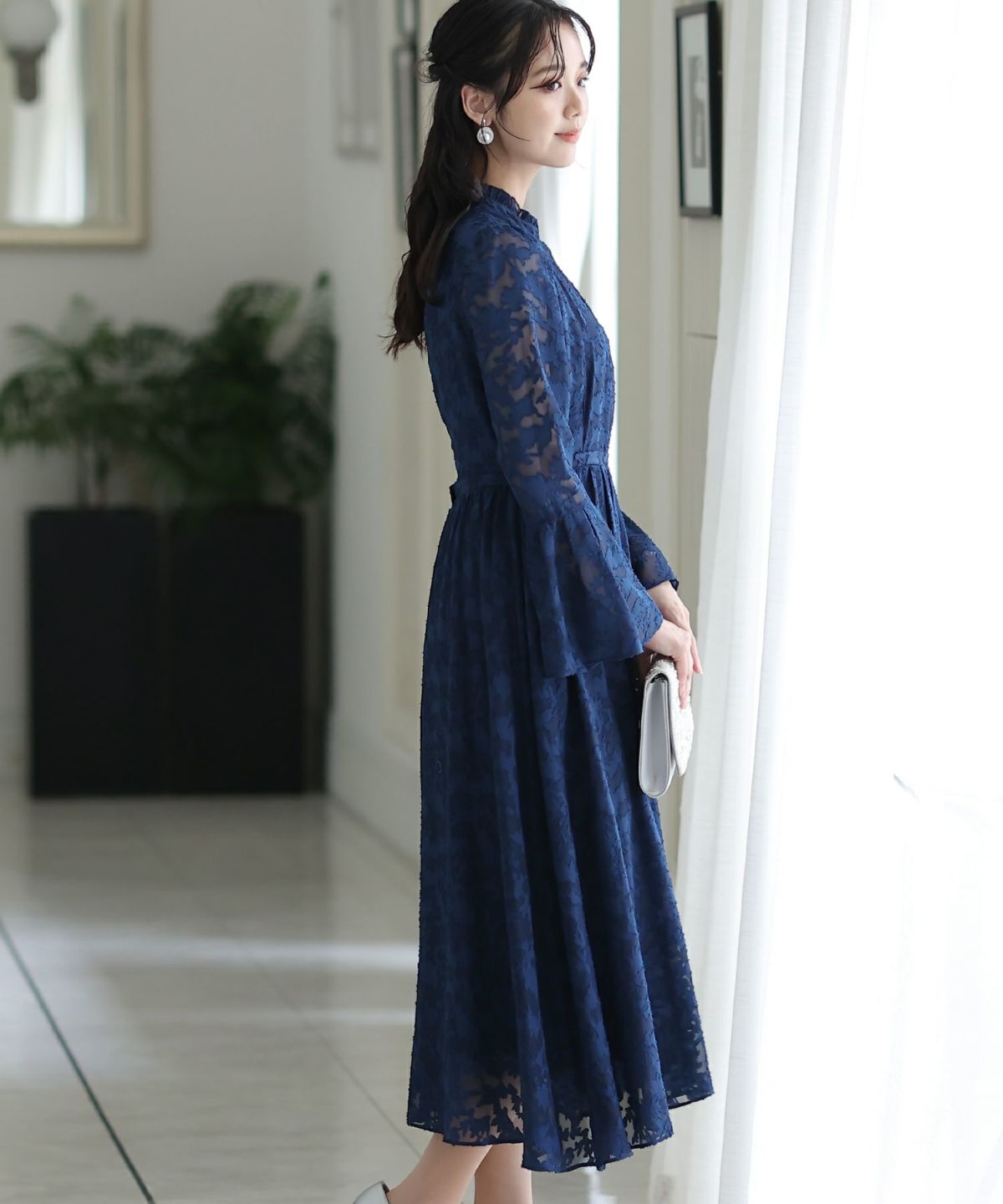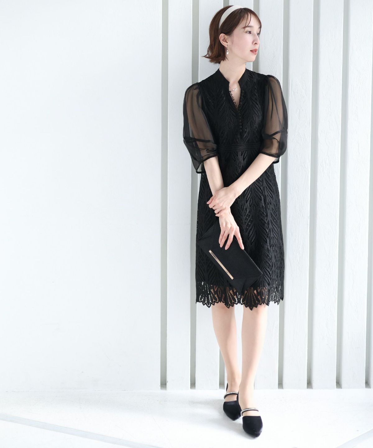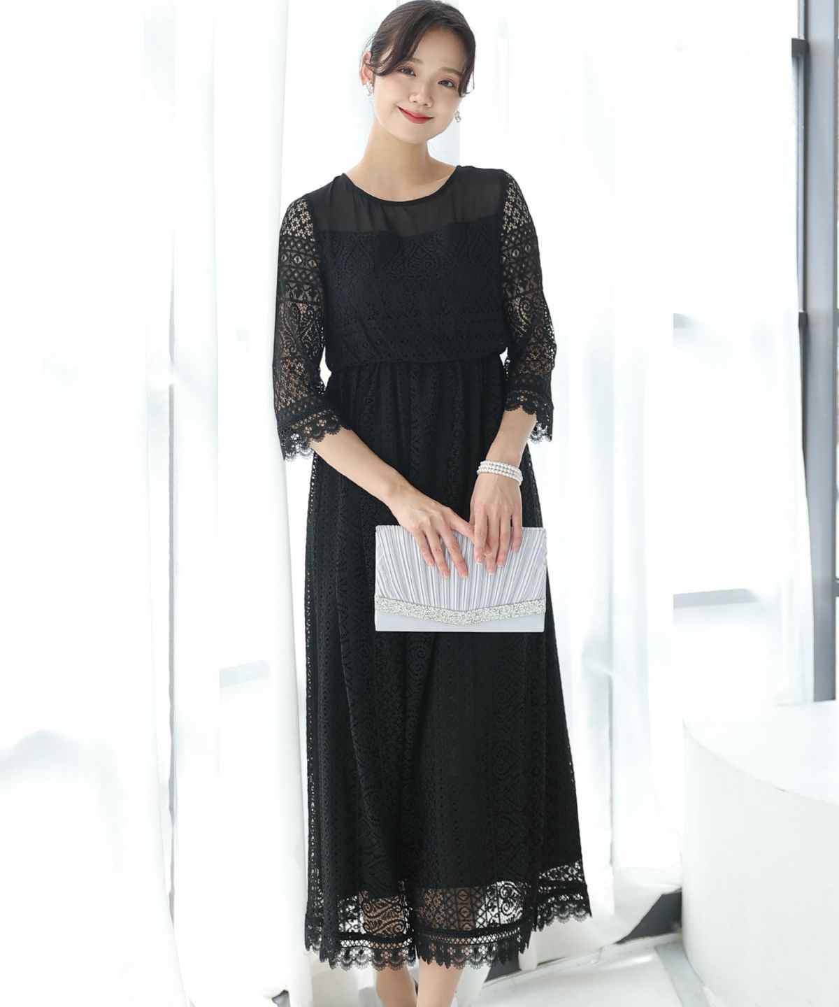 ベルスリーブが上品 シアージャガードレースワンピース