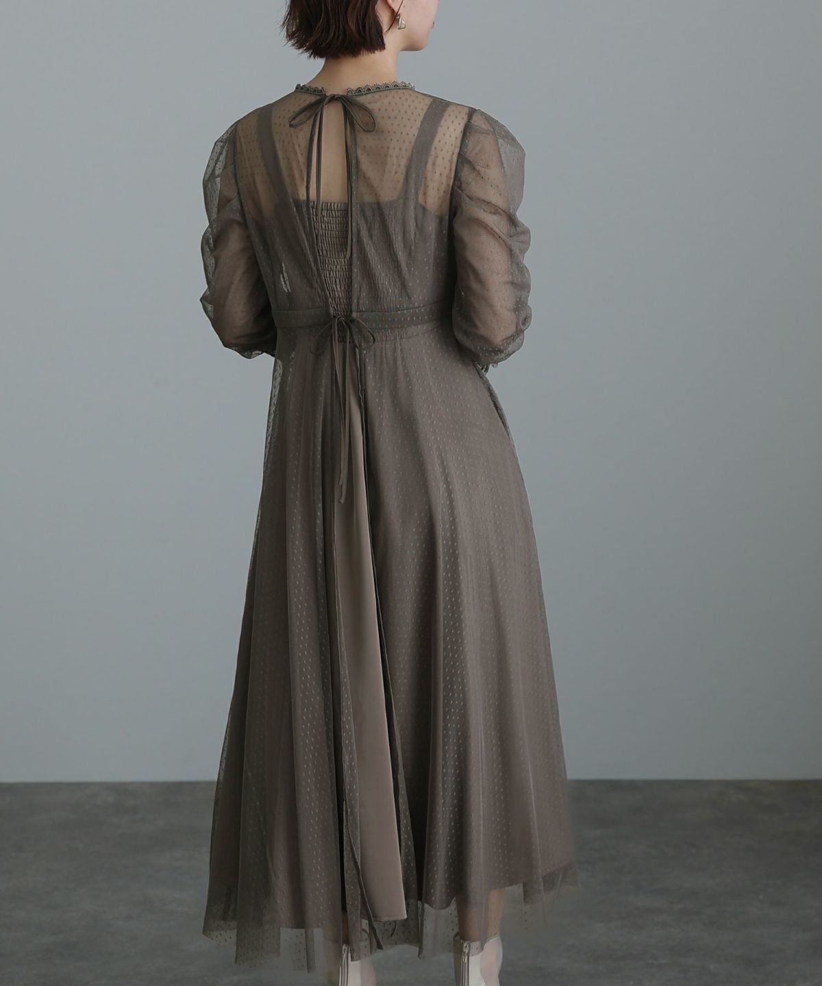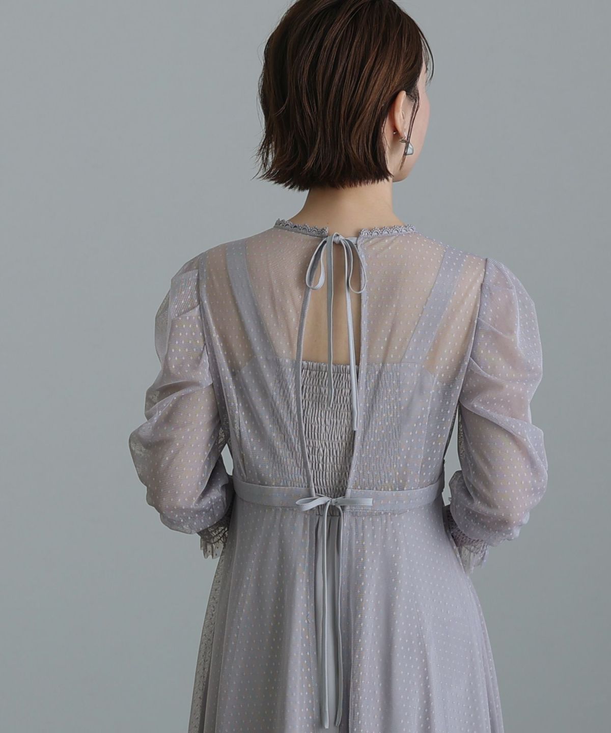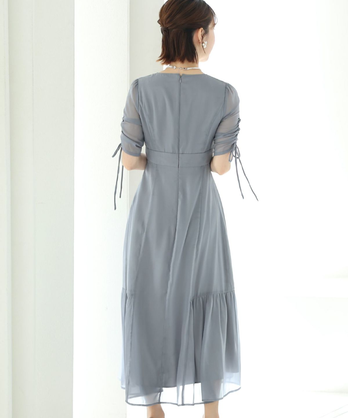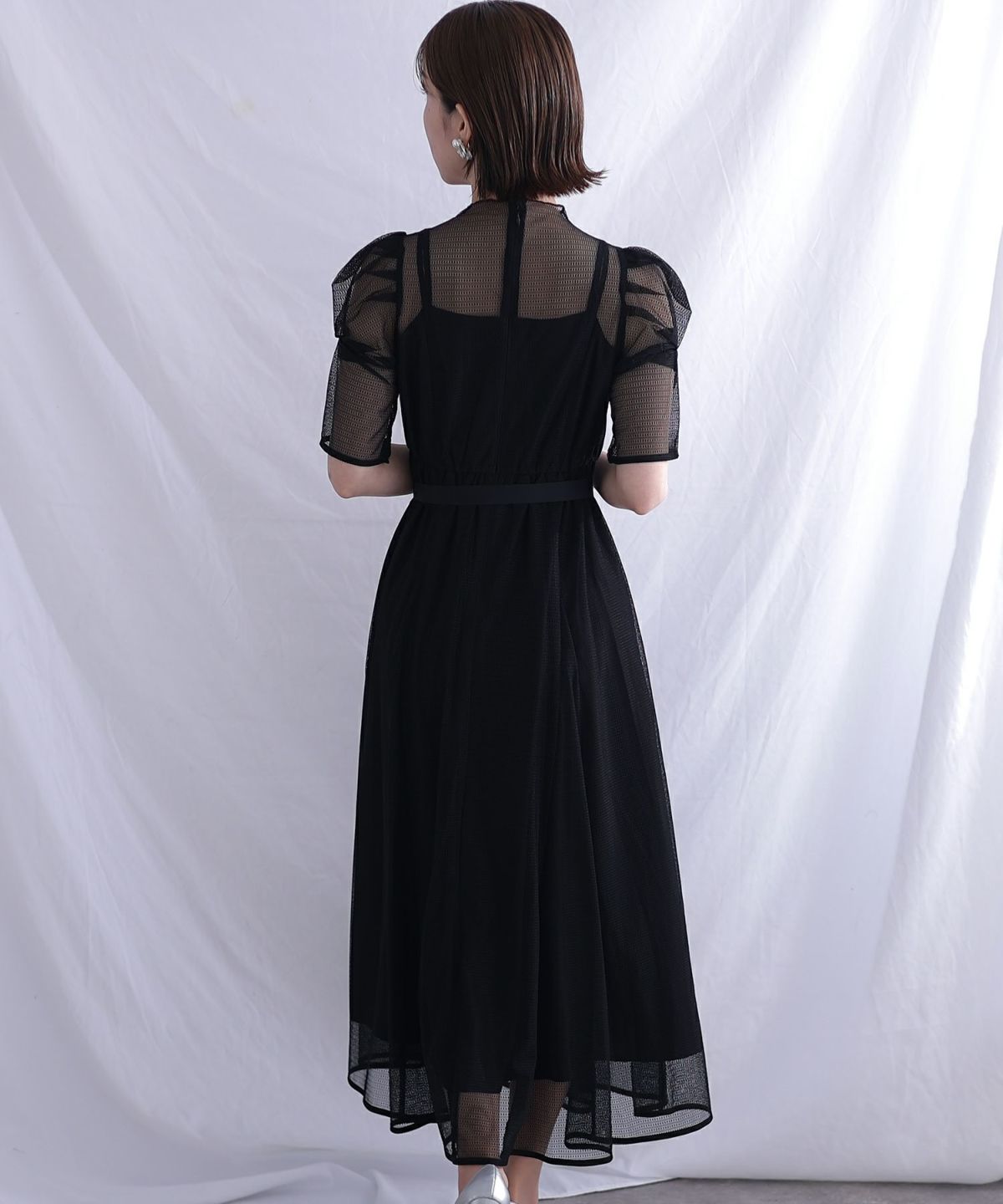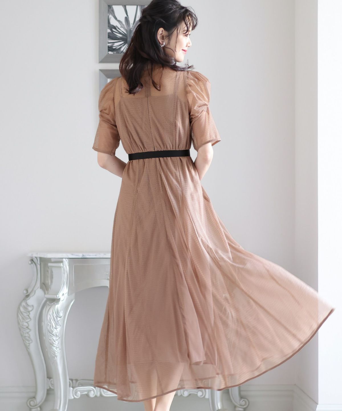 程よい透け感が上品な印象に ボリュームスリーブバックシャンワンピース