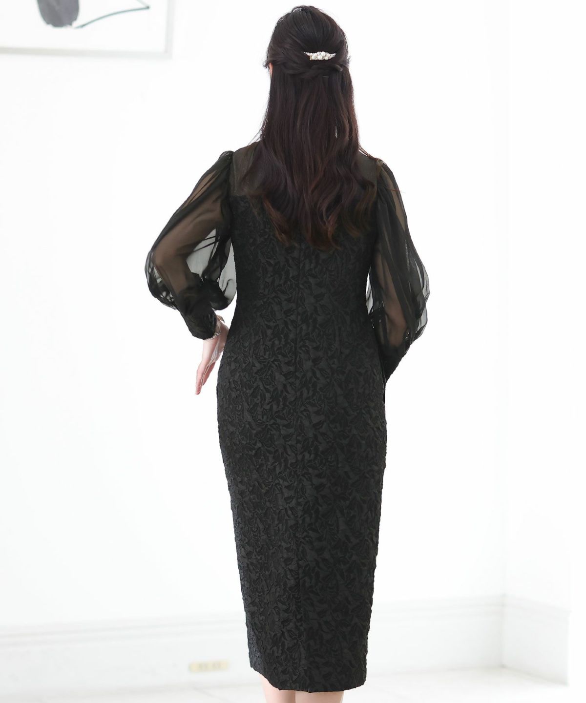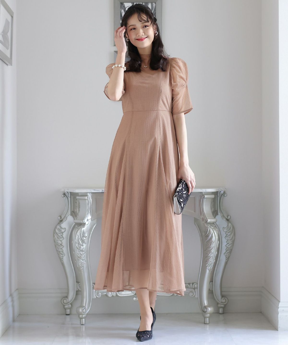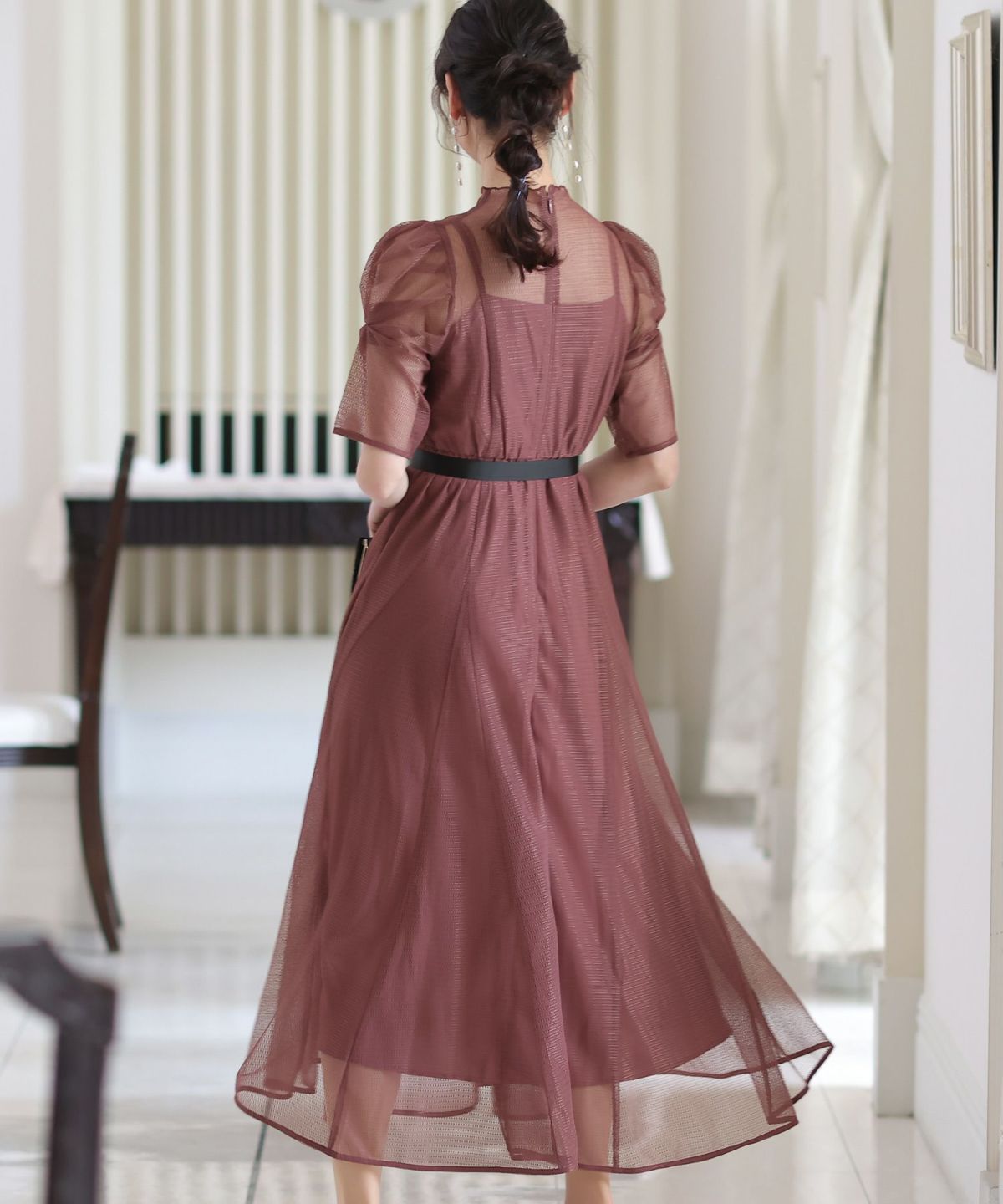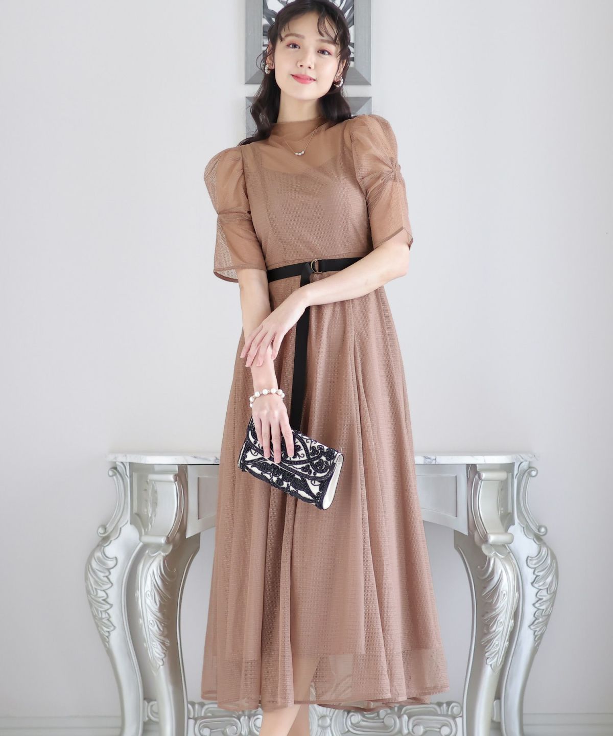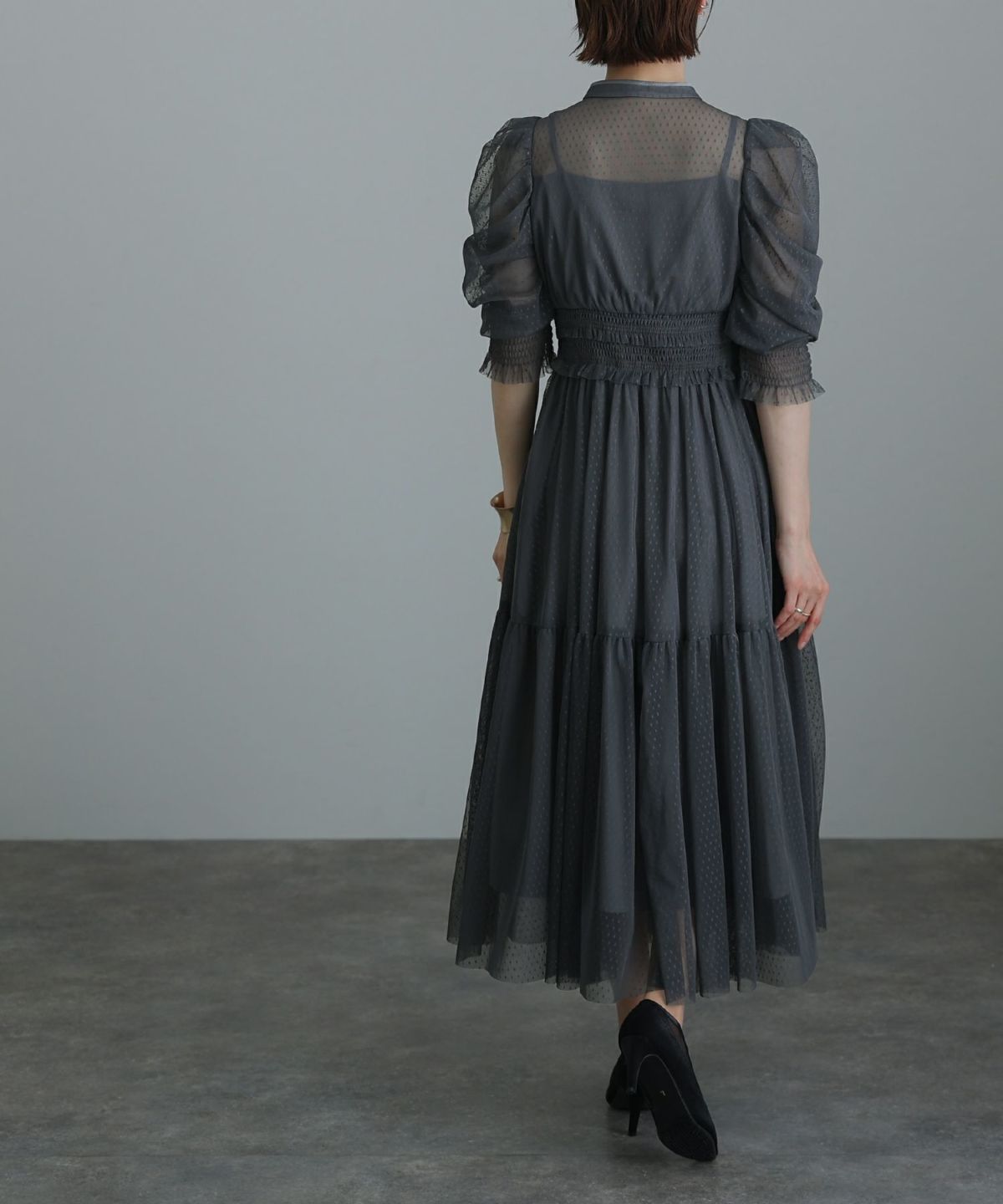 程よい透け感が上品な印象に ボリュームスリーブバックシャンワンピース