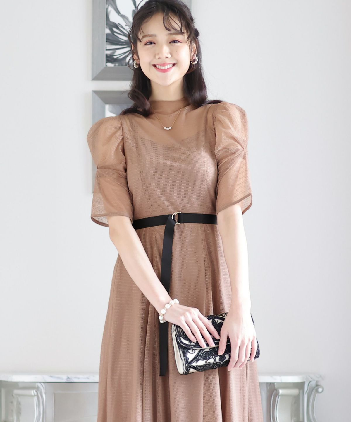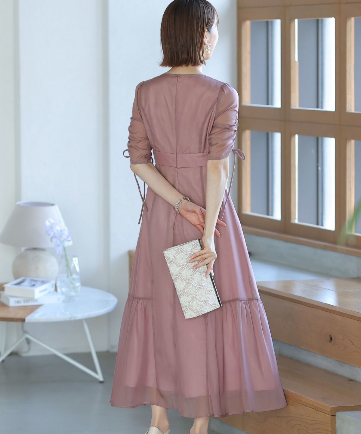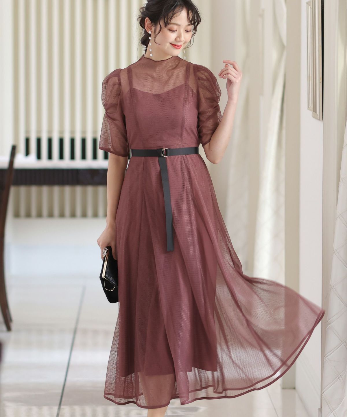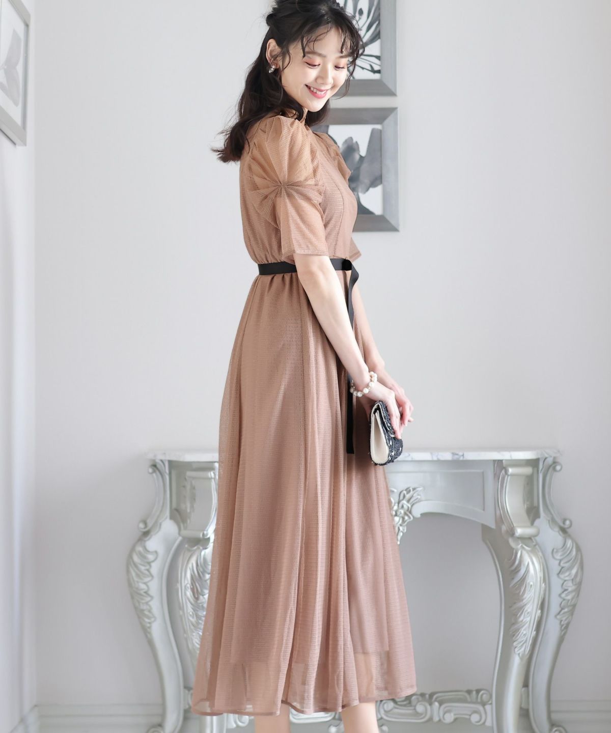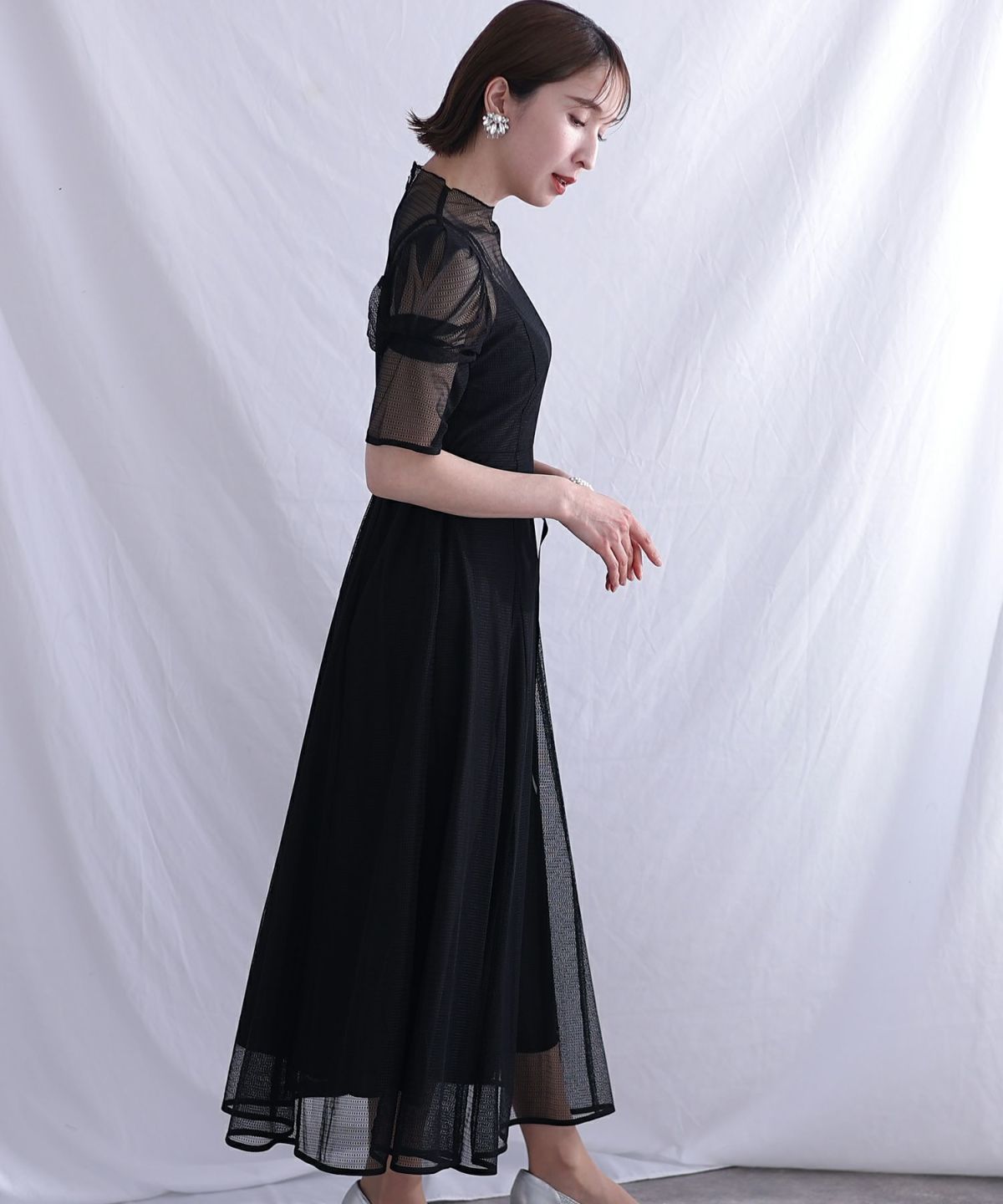 程よい透け感が上品な印象に ボリュームスリーブバックシャンワンピース