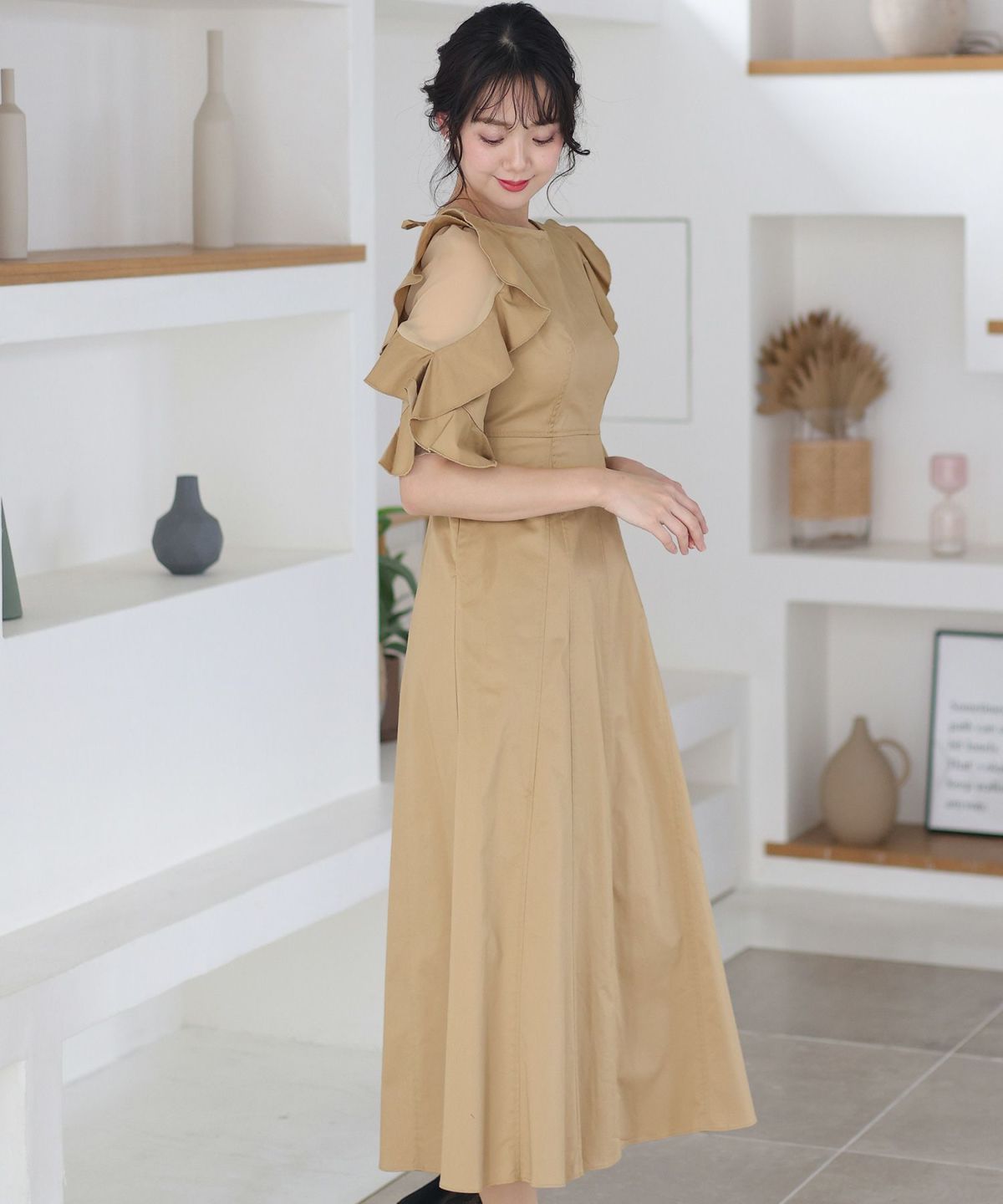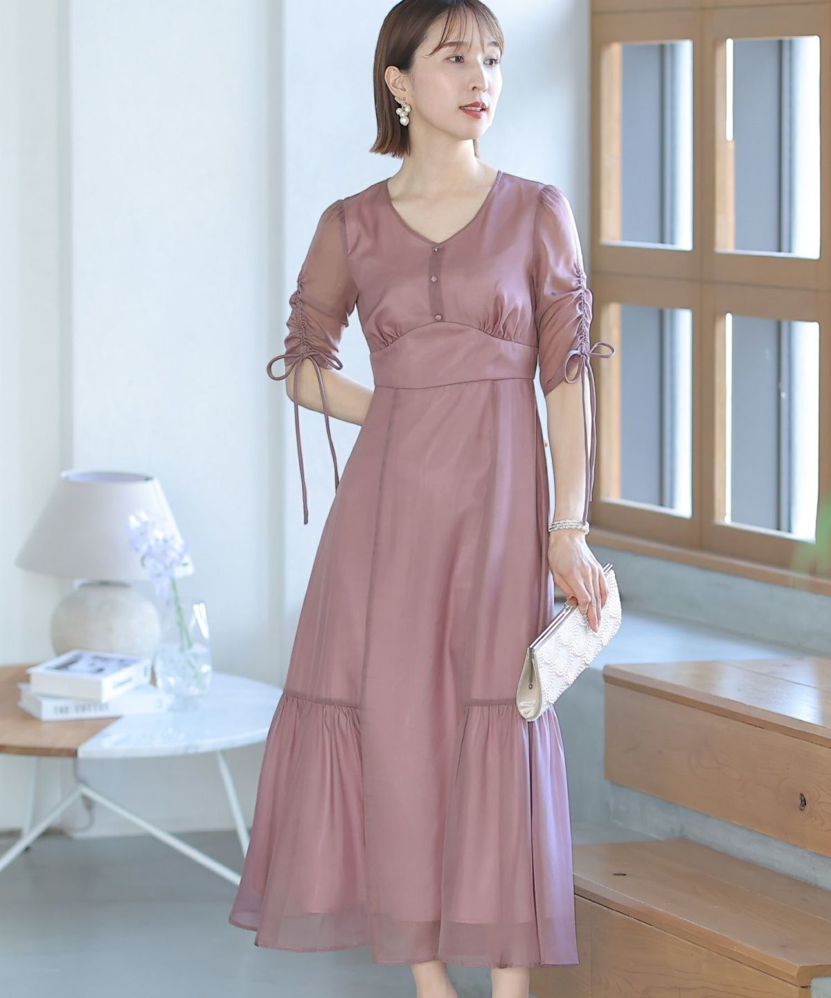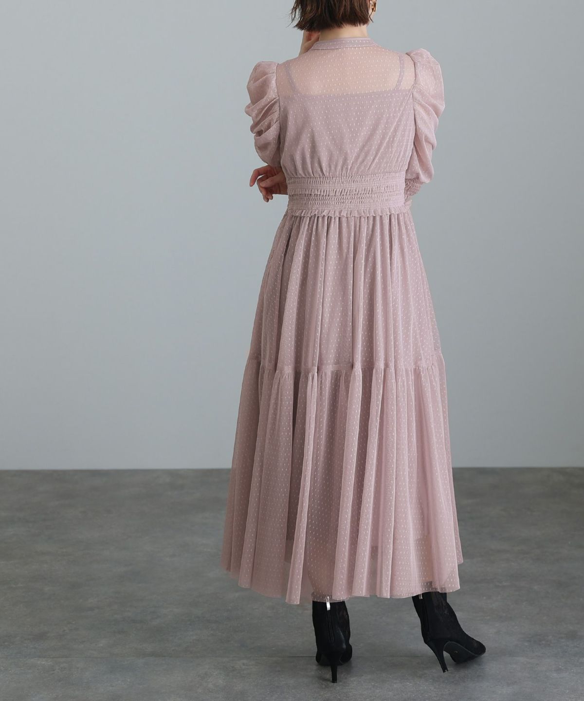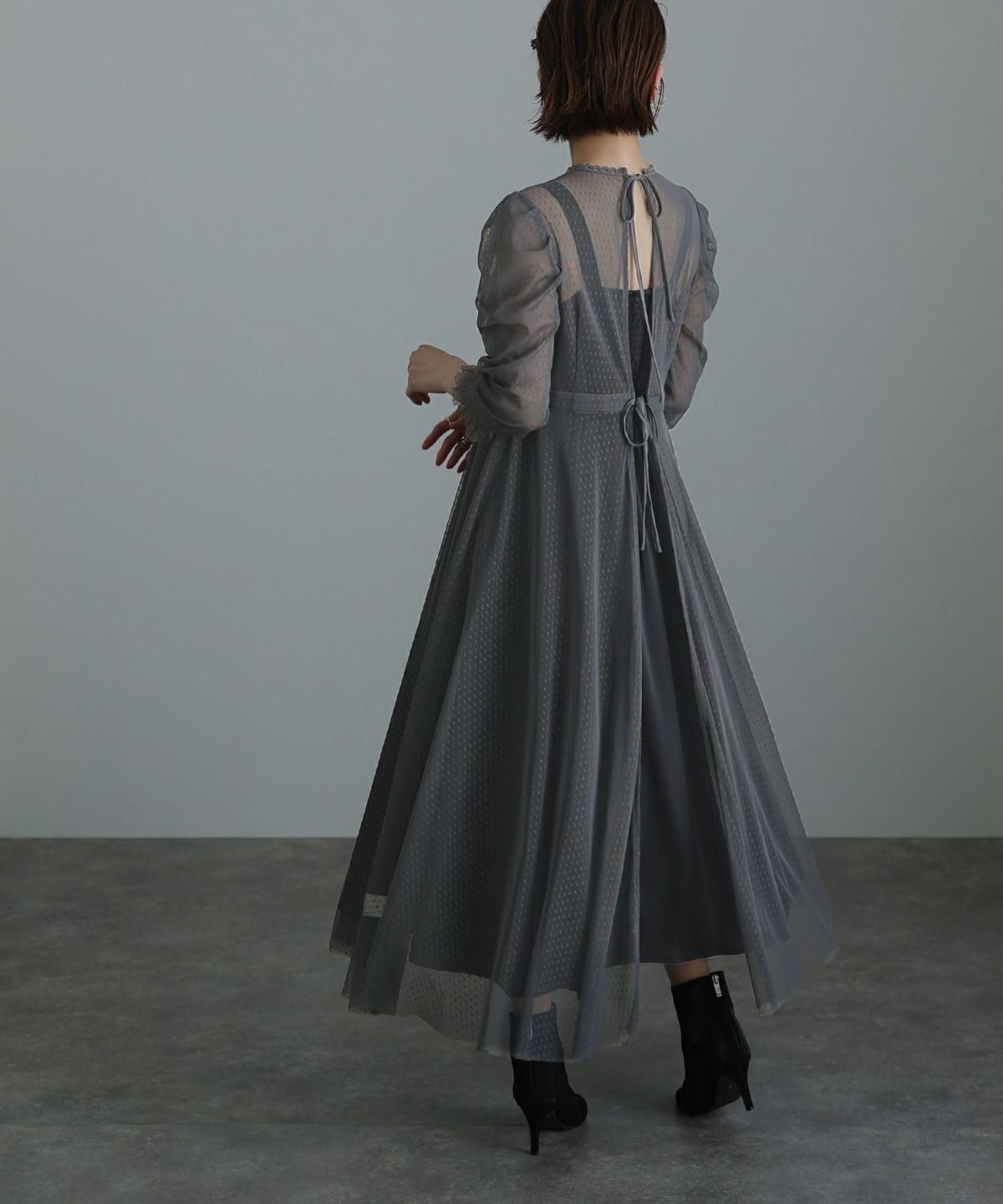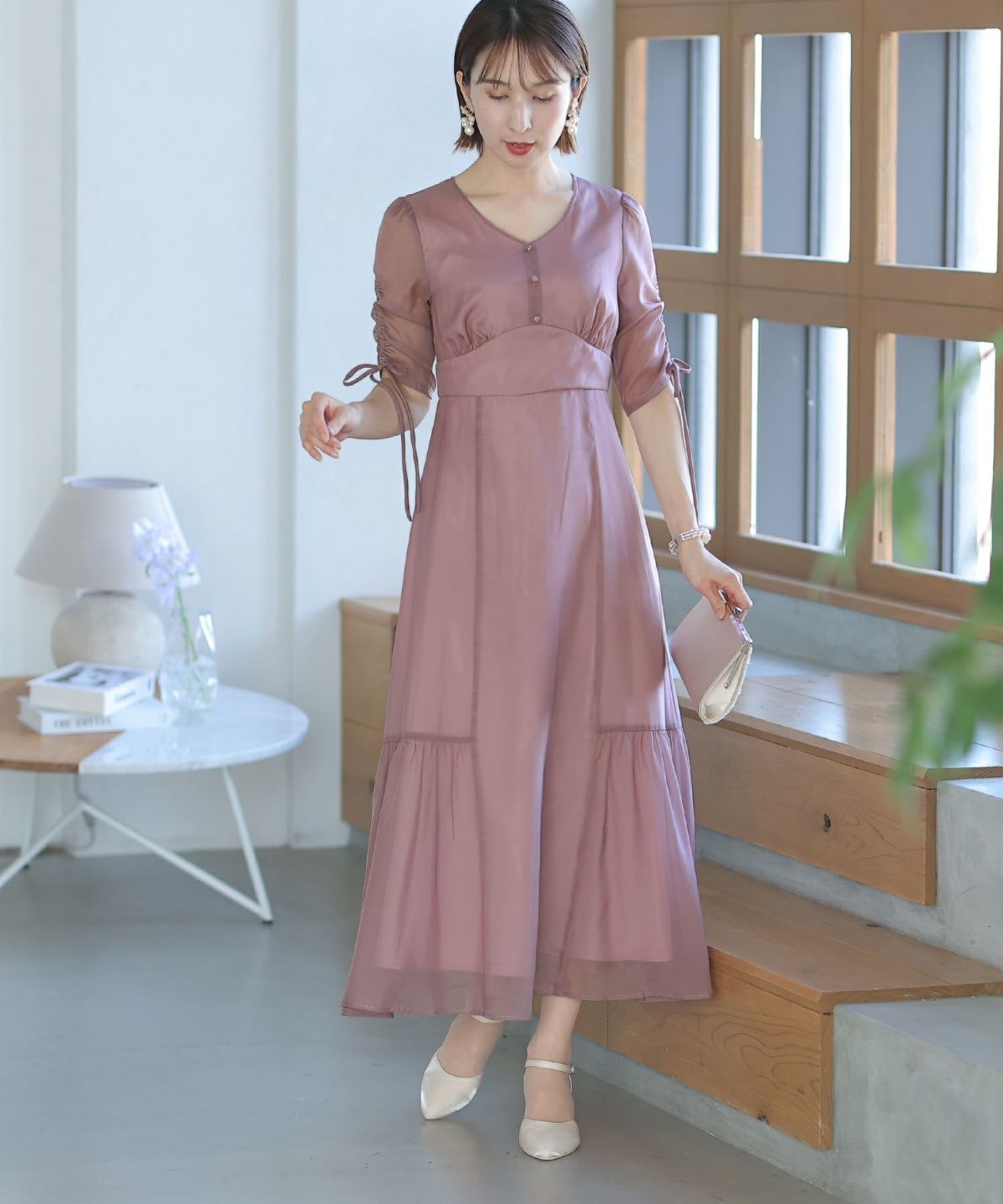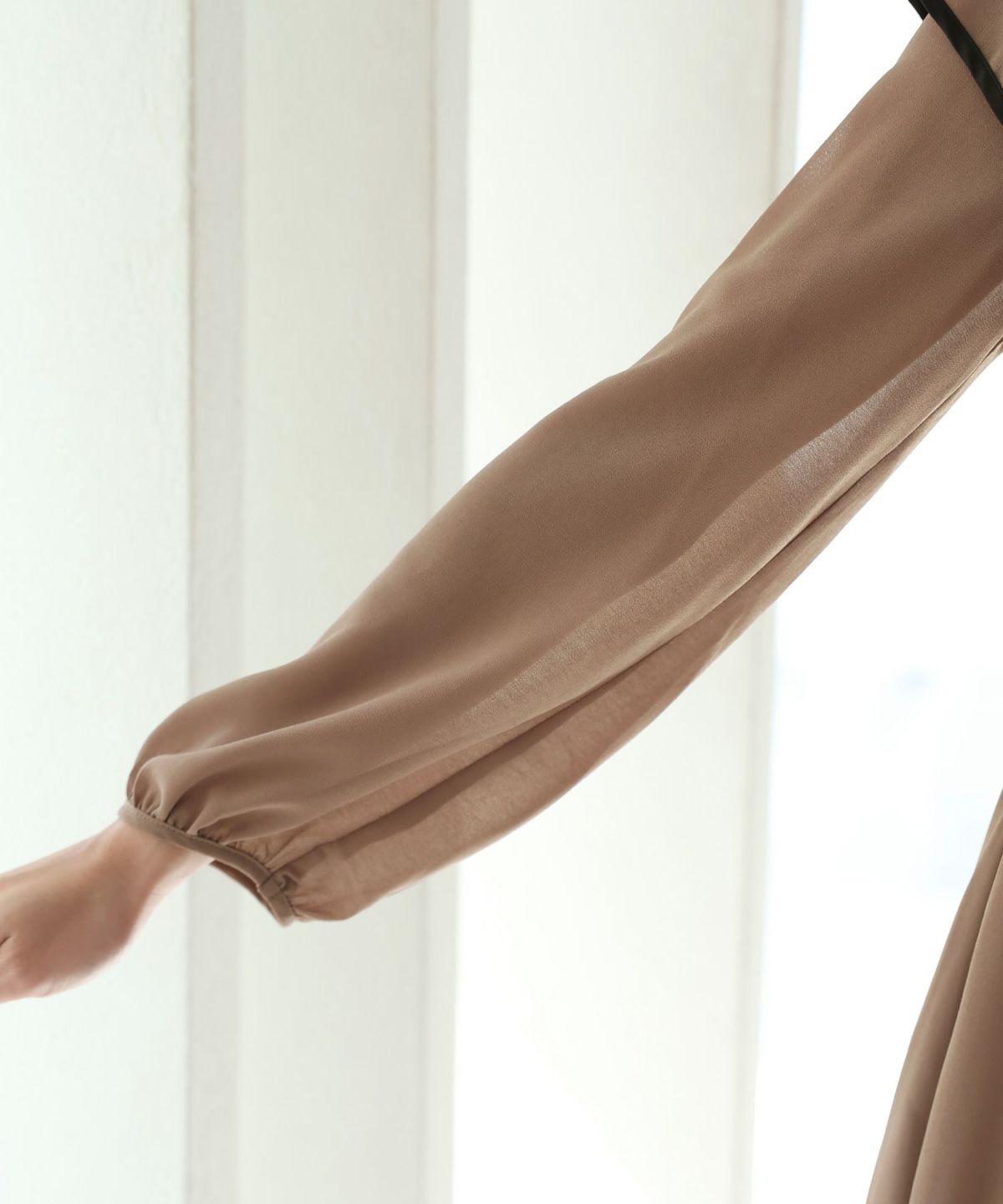 程よい透け感が上品な印象に ボリュームスリーブバックシャンワンピース