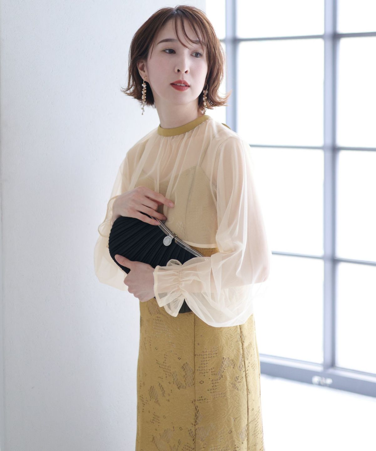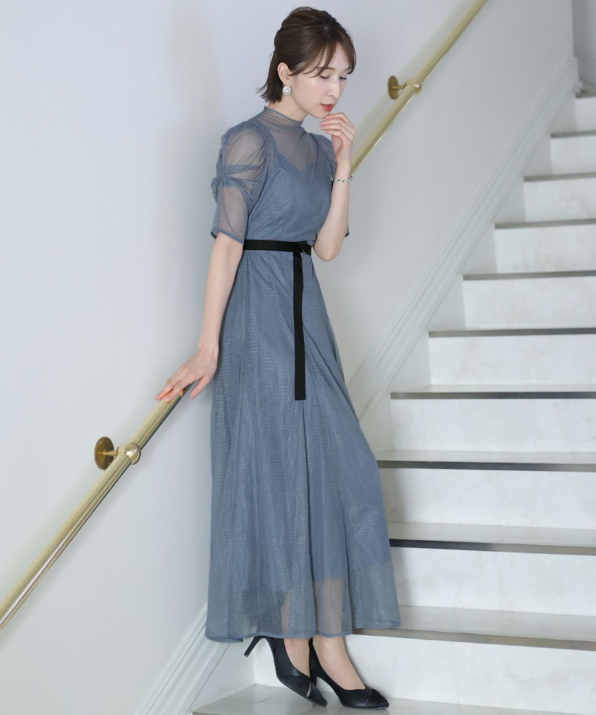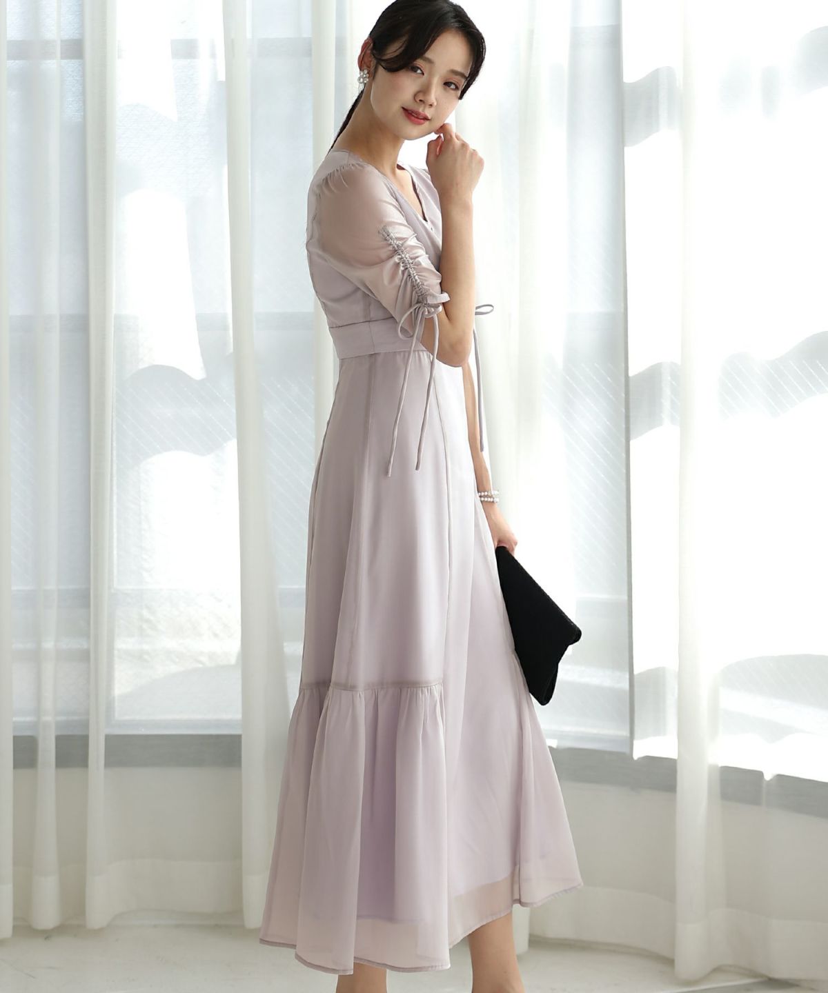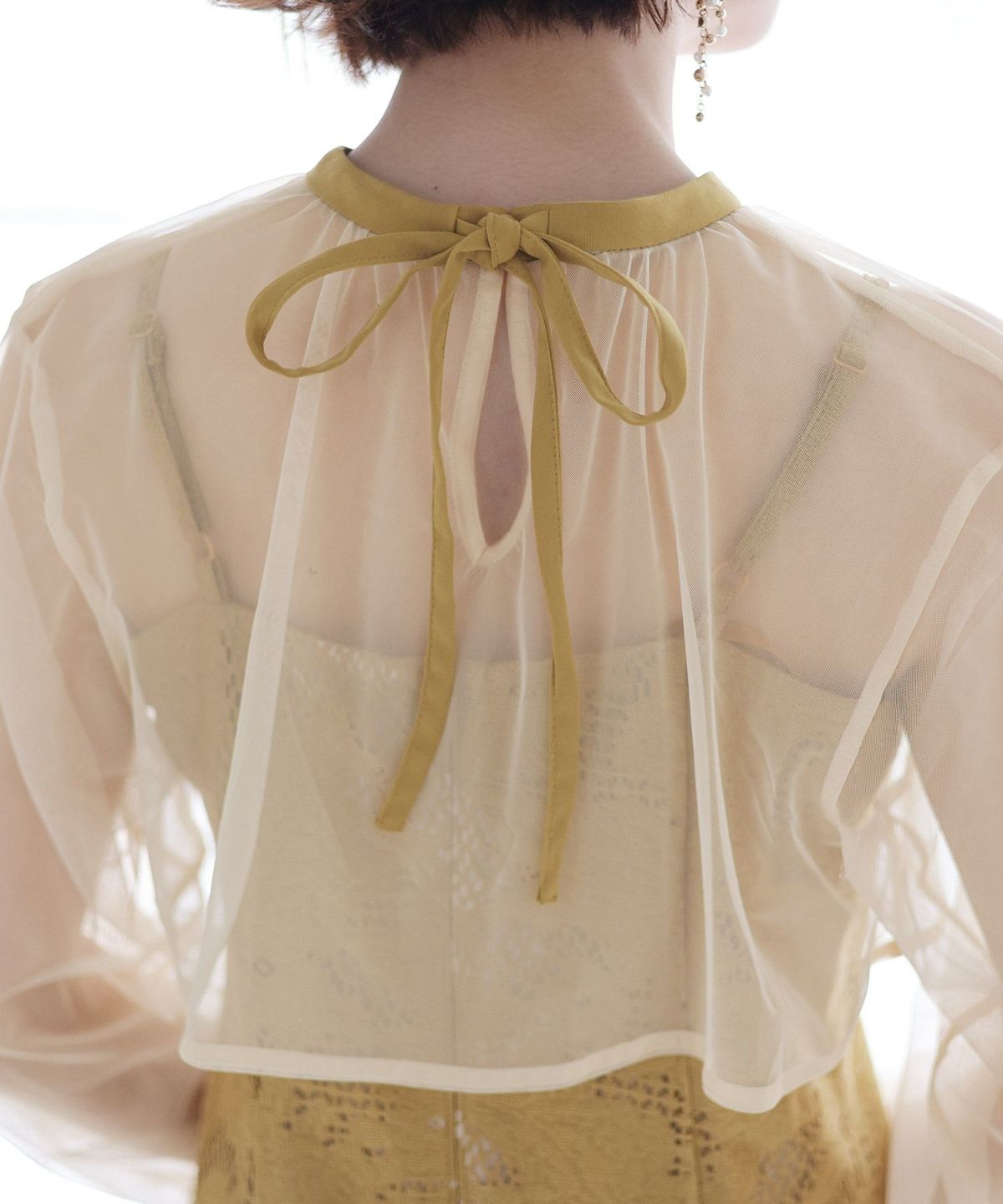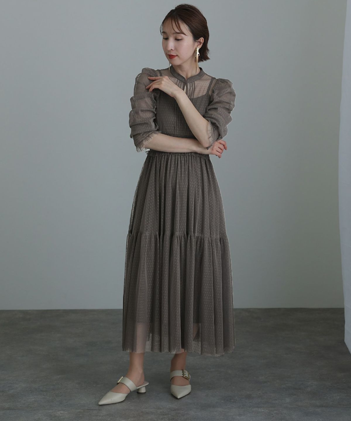 程よい透け感が上品な印象に ボリュームスリーブバックシャンワンピース