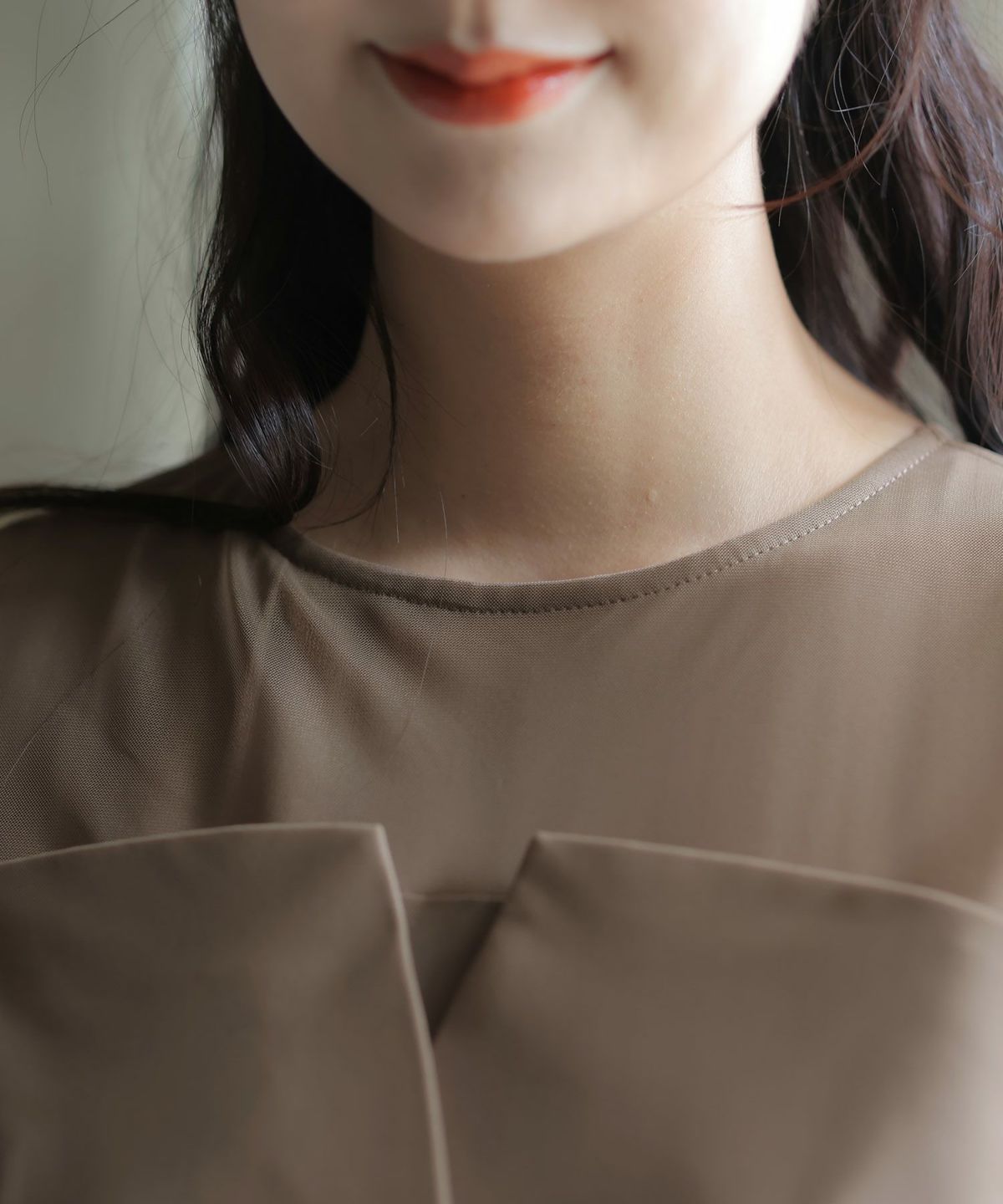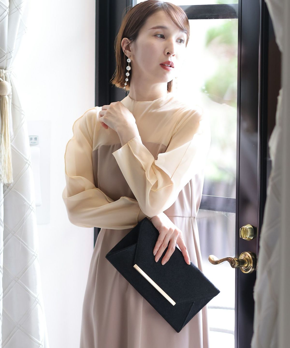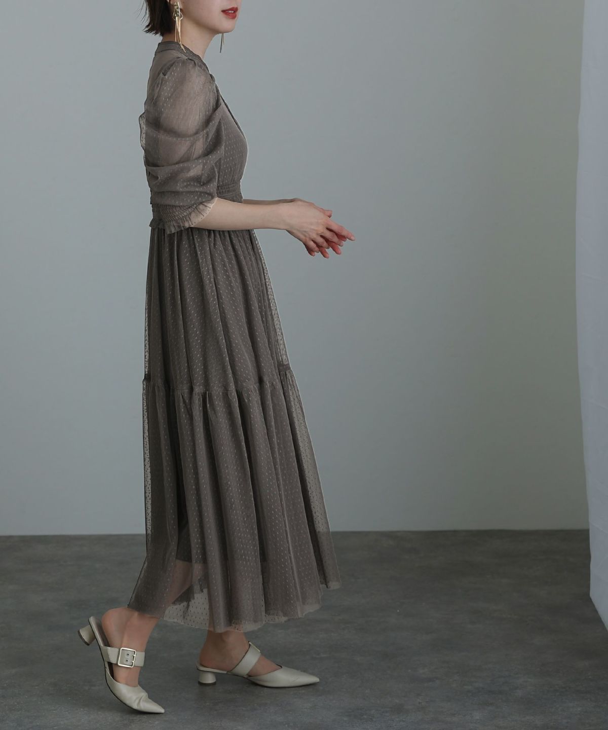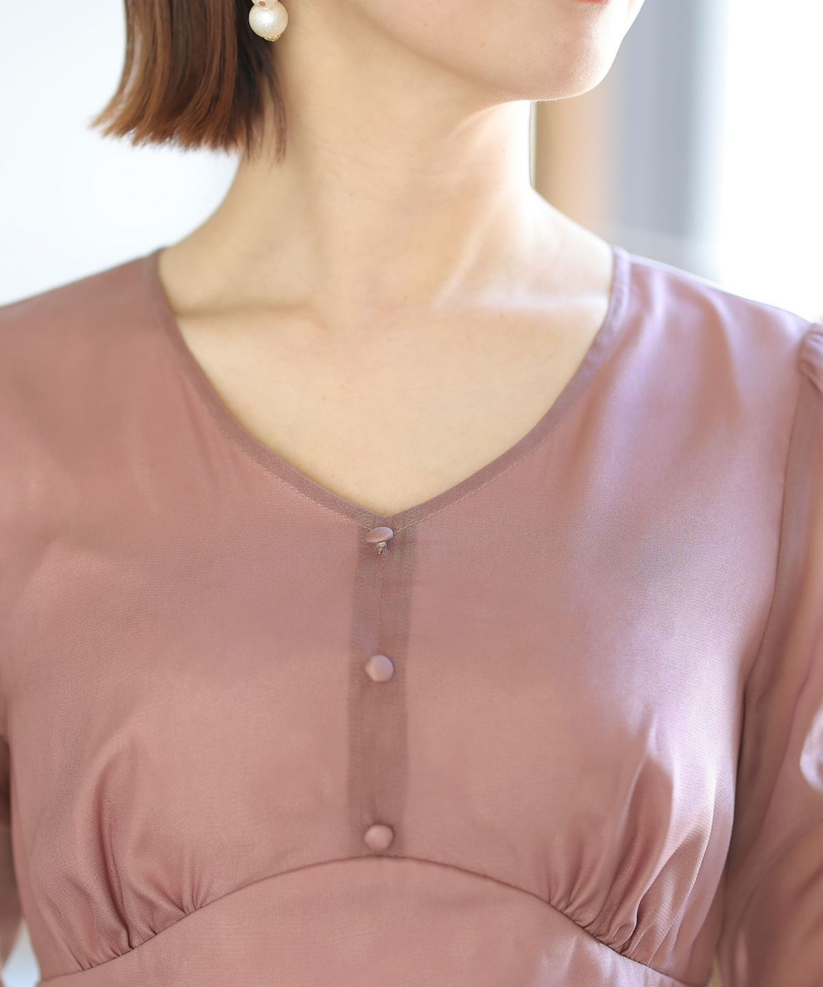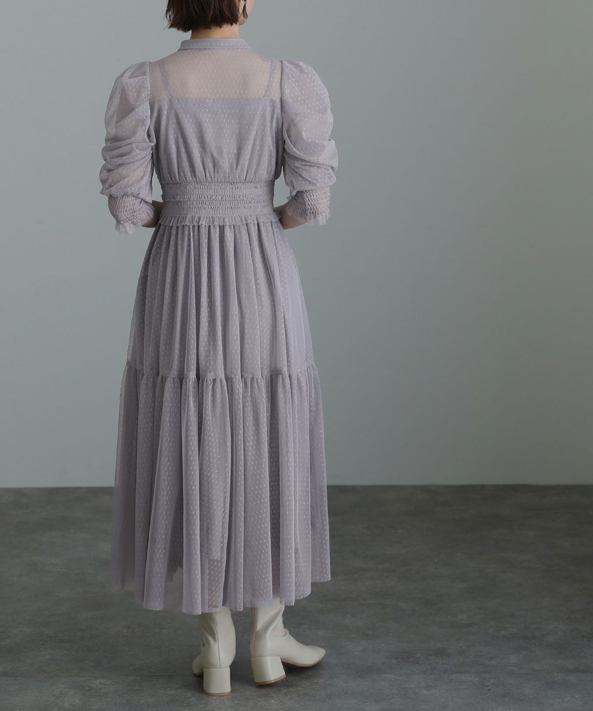 程よい透け感が上品な印象に ボリュームスリーブバックシャンワンピース