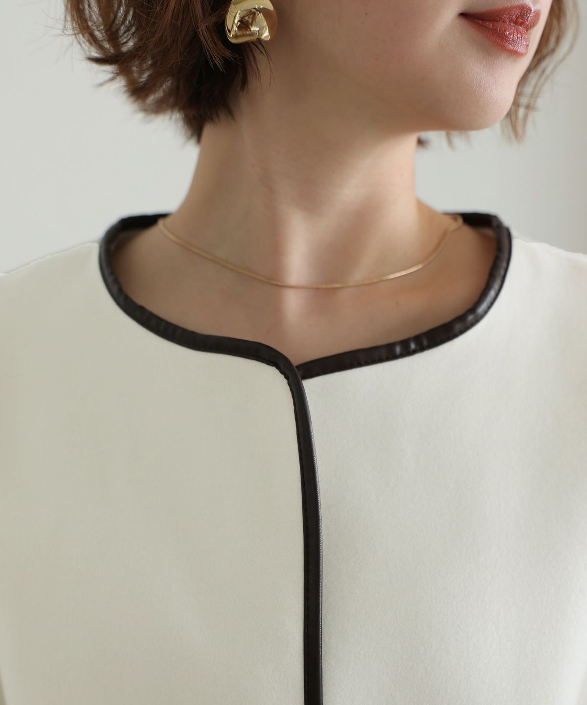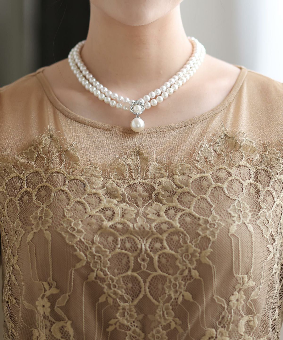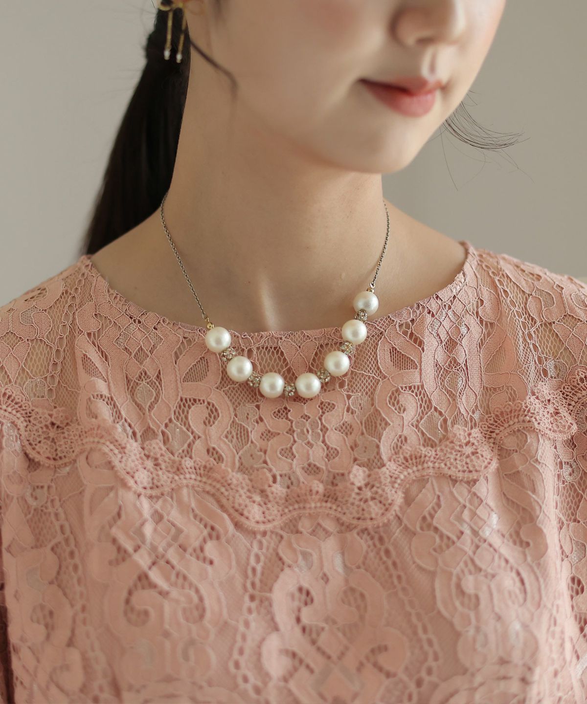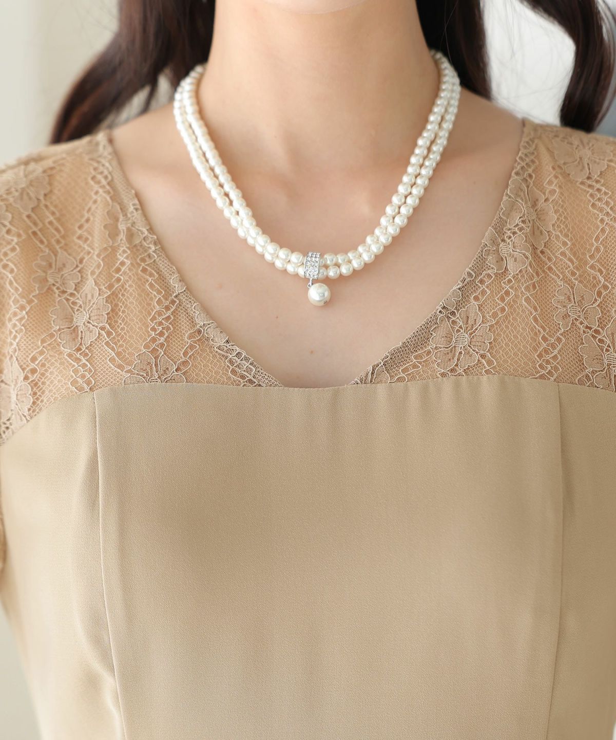 女性らしい柔らかくふんわりとした上品さを演出 ネックパールトップスセットアップスーツ
