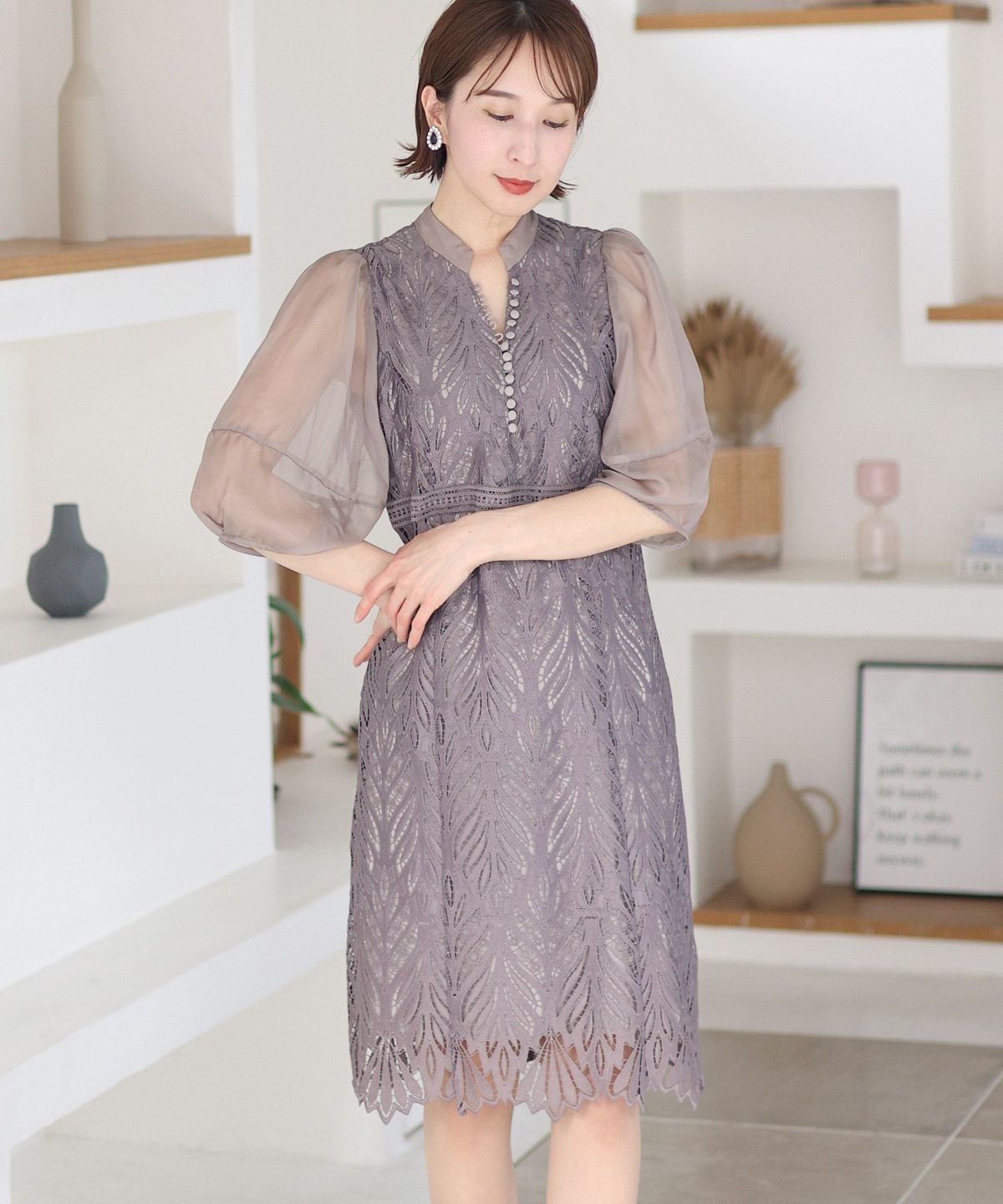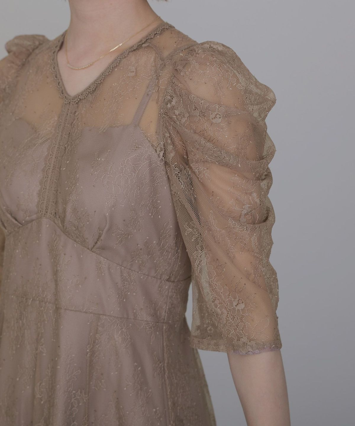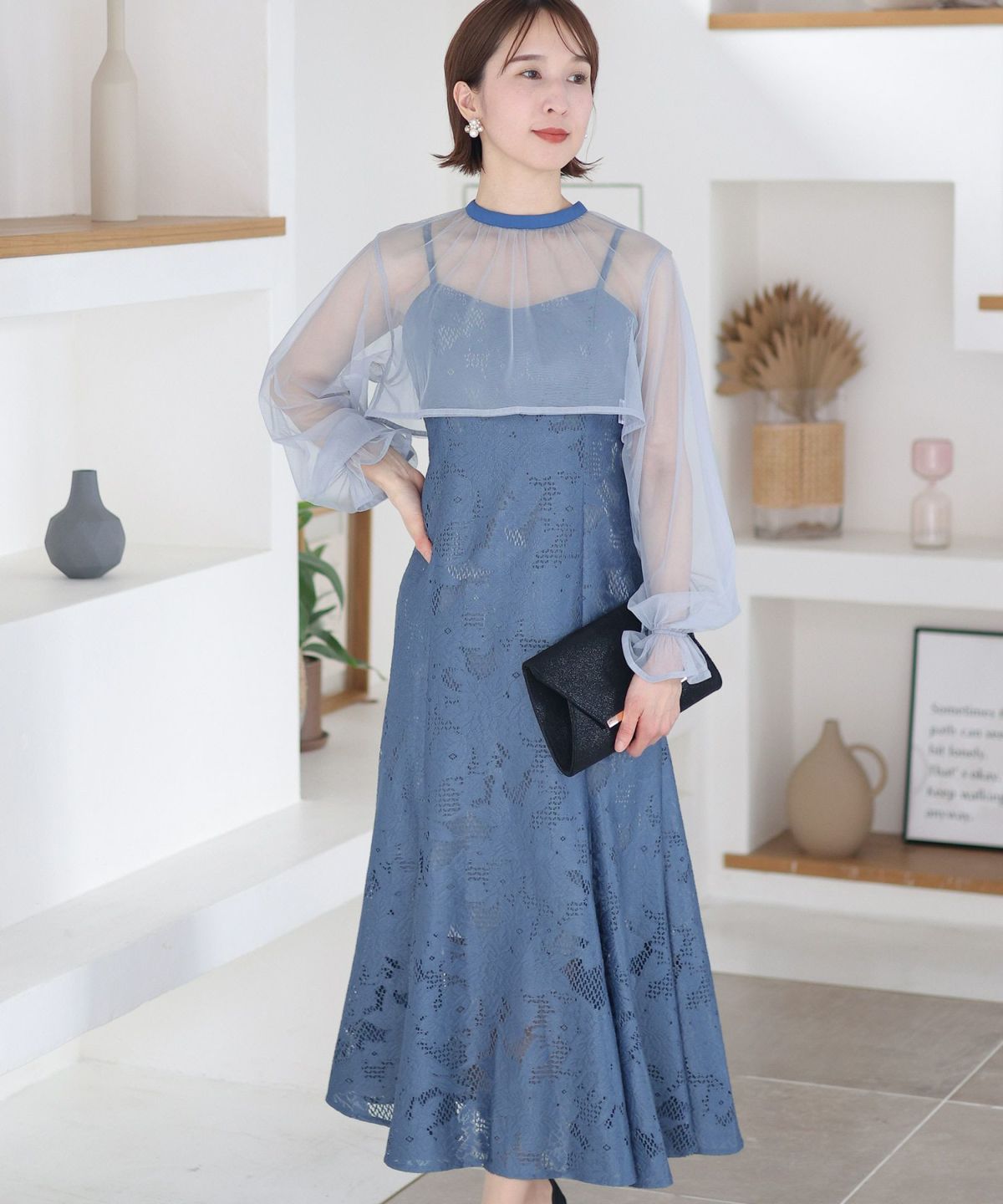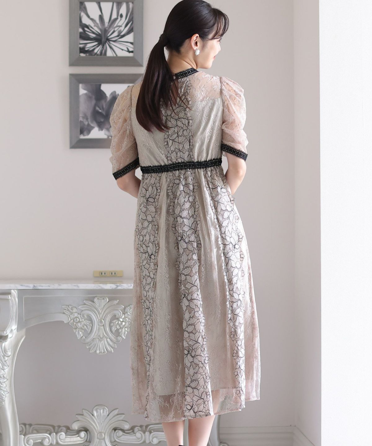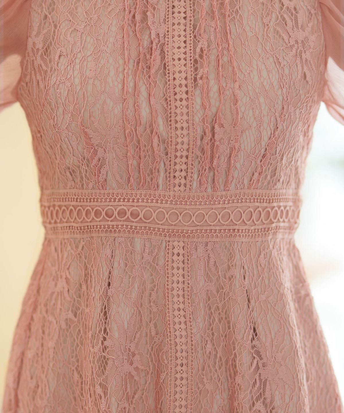 レースとオーガンジーの透け感が可愛い ケミカルレース×オーガンジースリーブワンピース