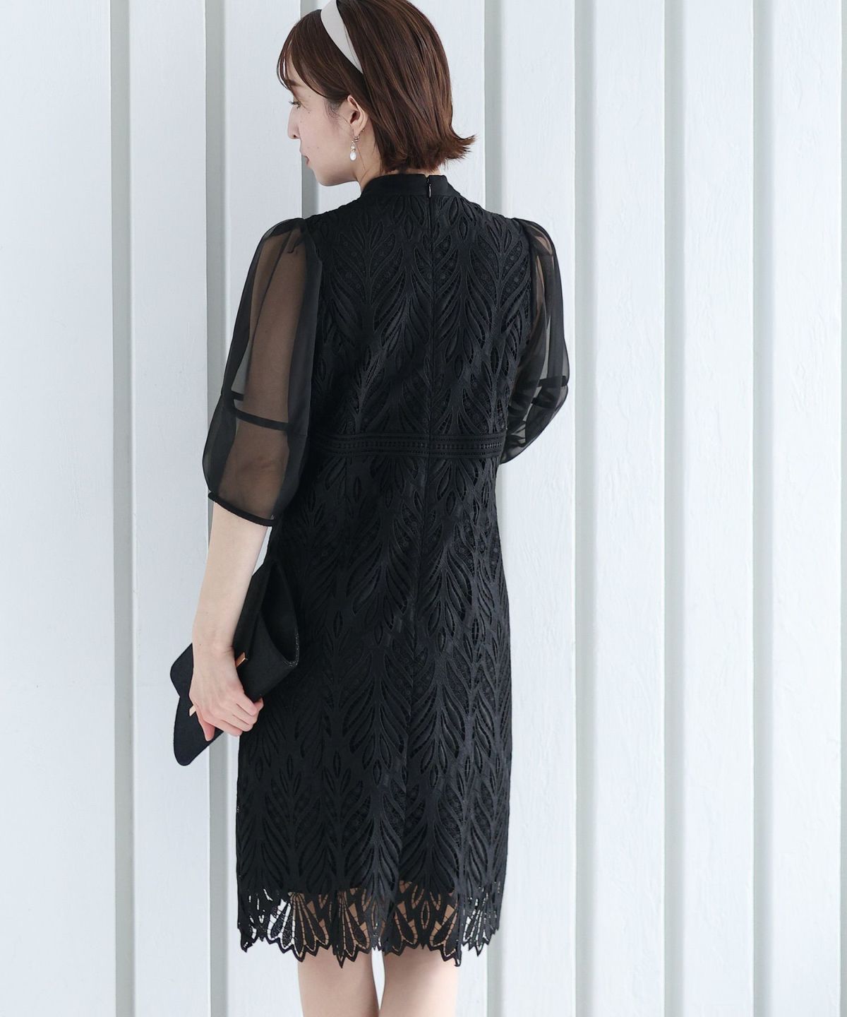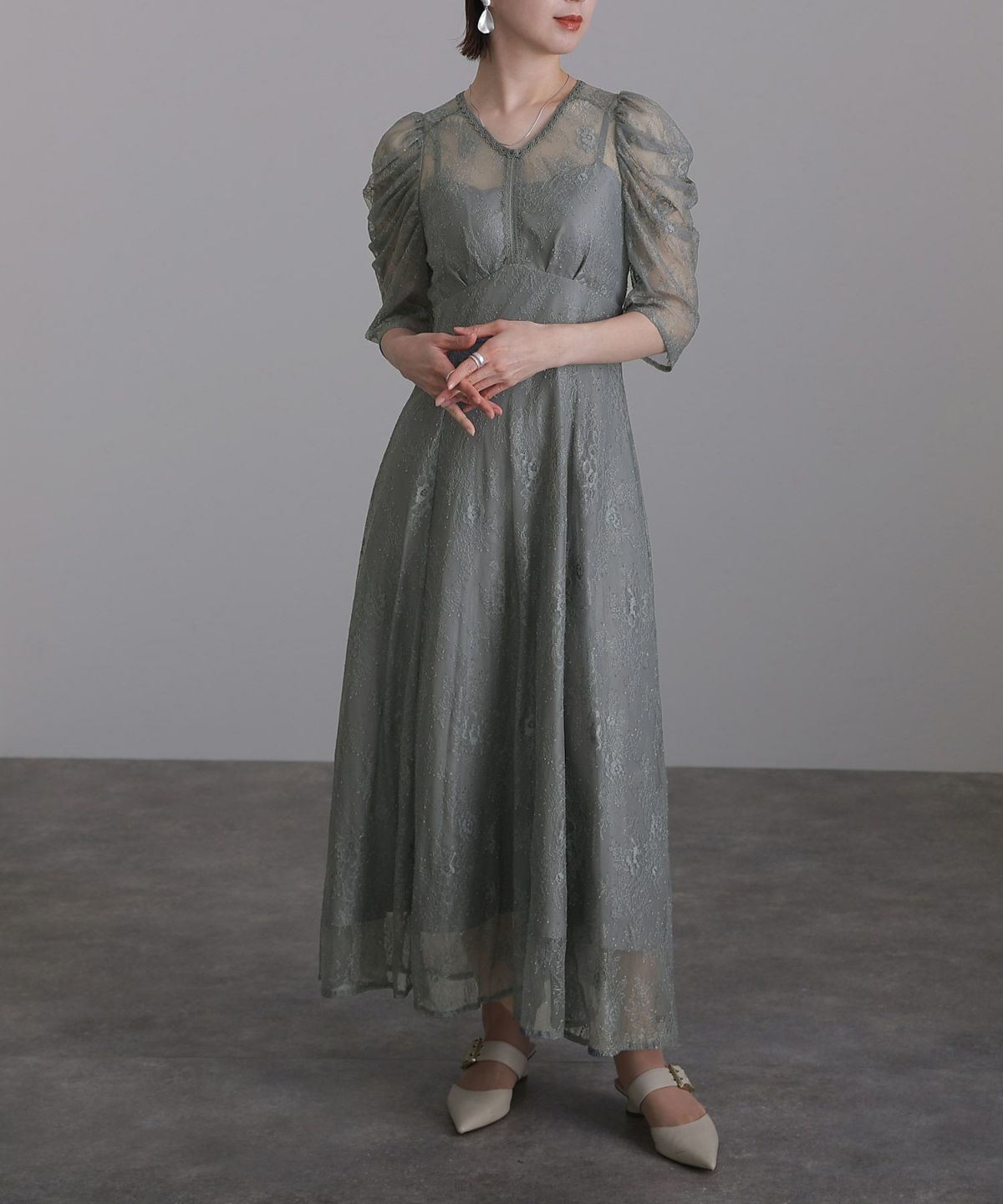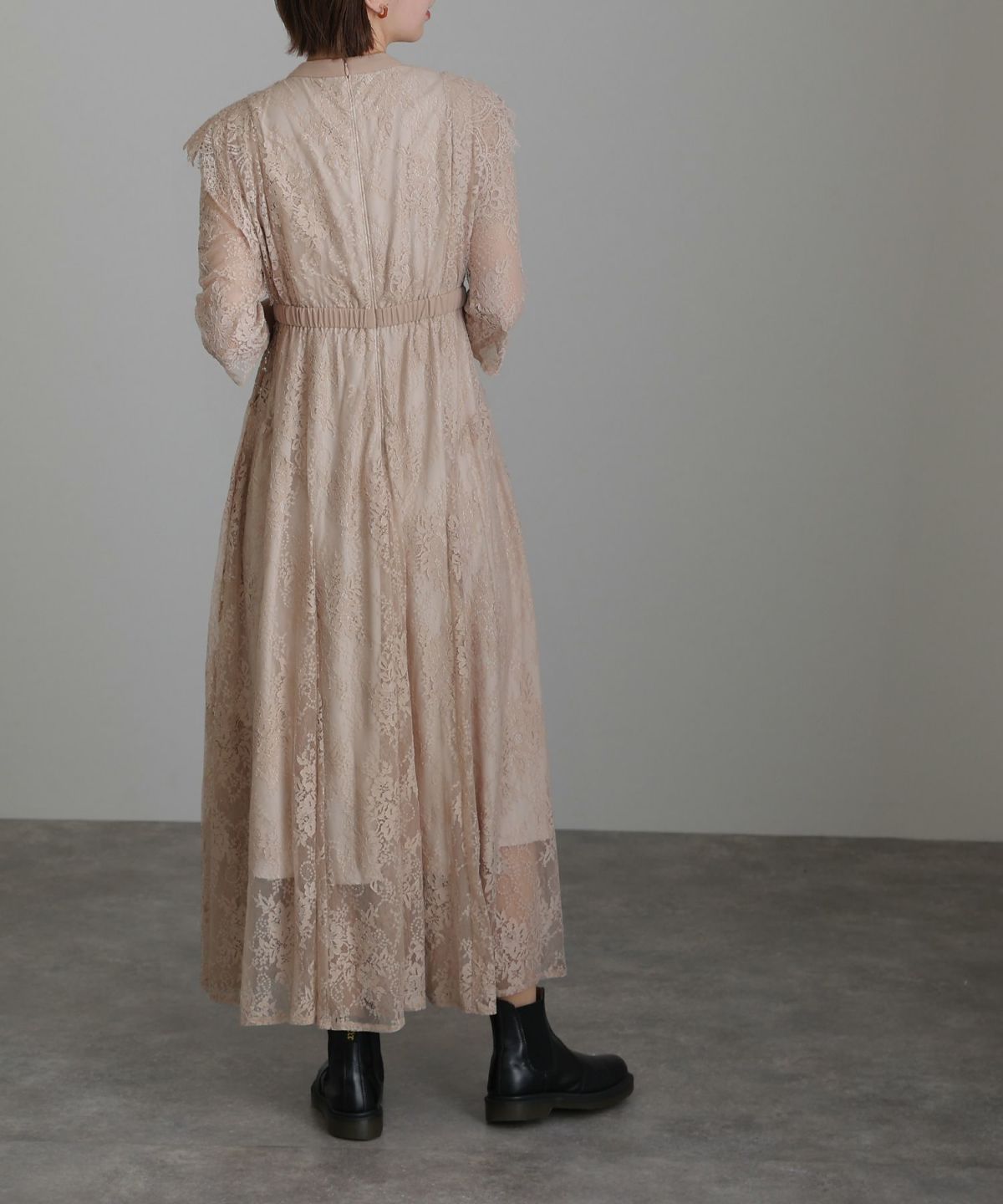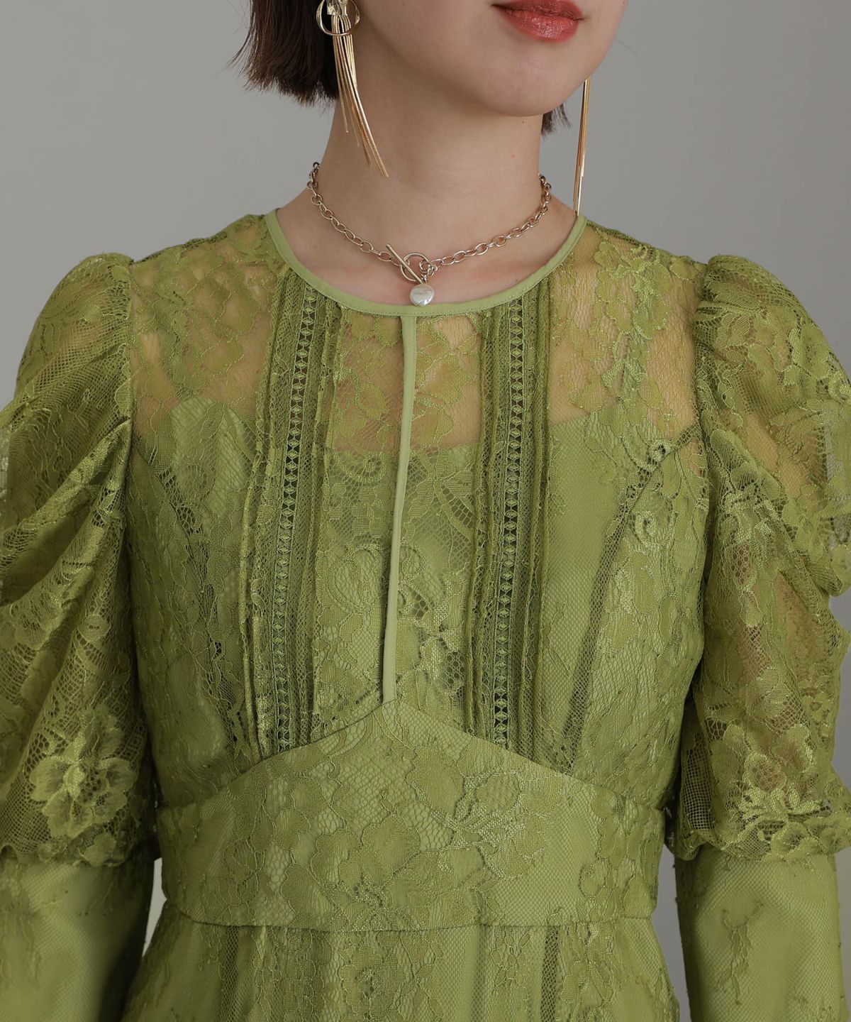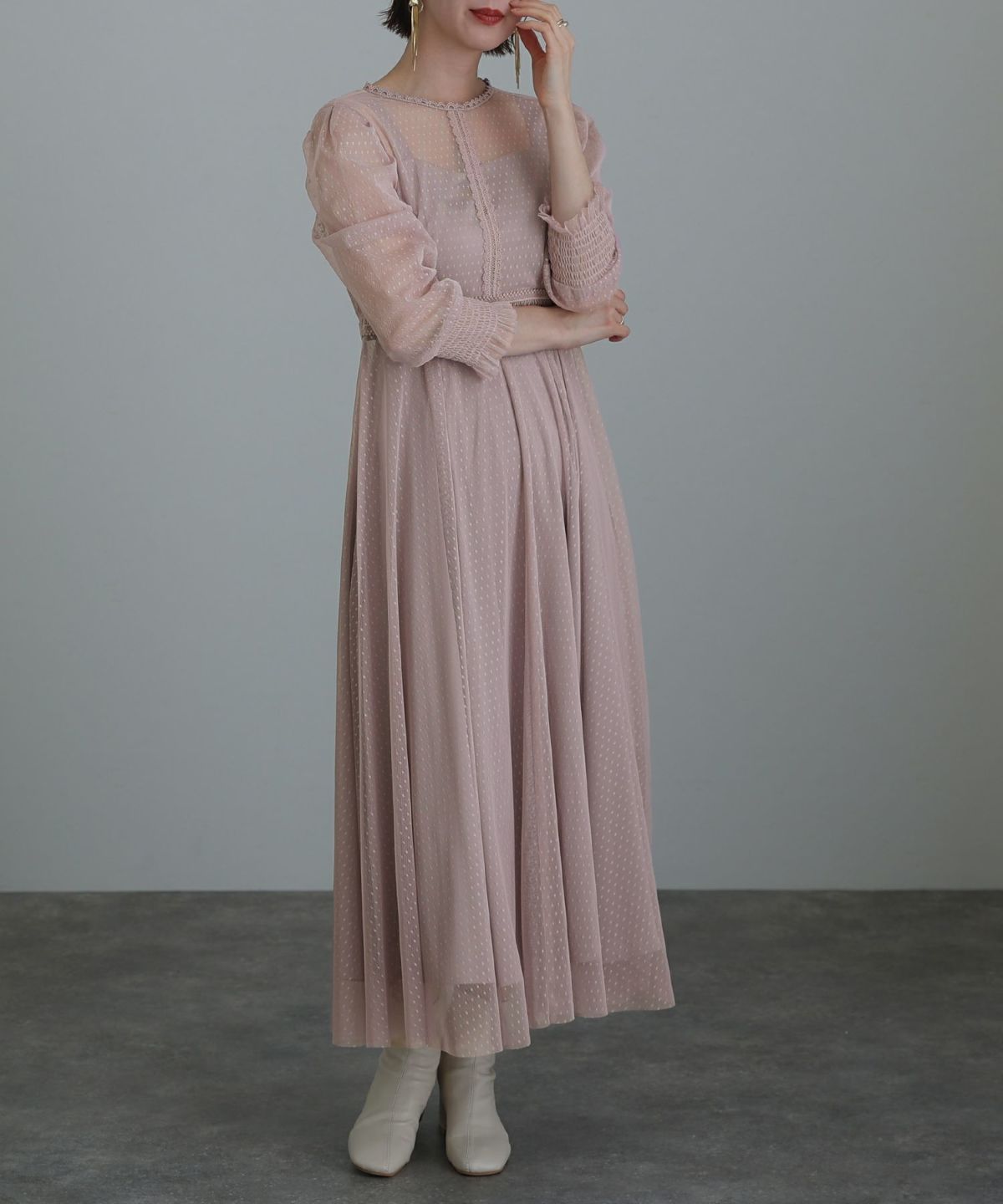 レースとオーガンジーの透け感が可愛い ケミカルレース×オーガンジースリーブワンピース