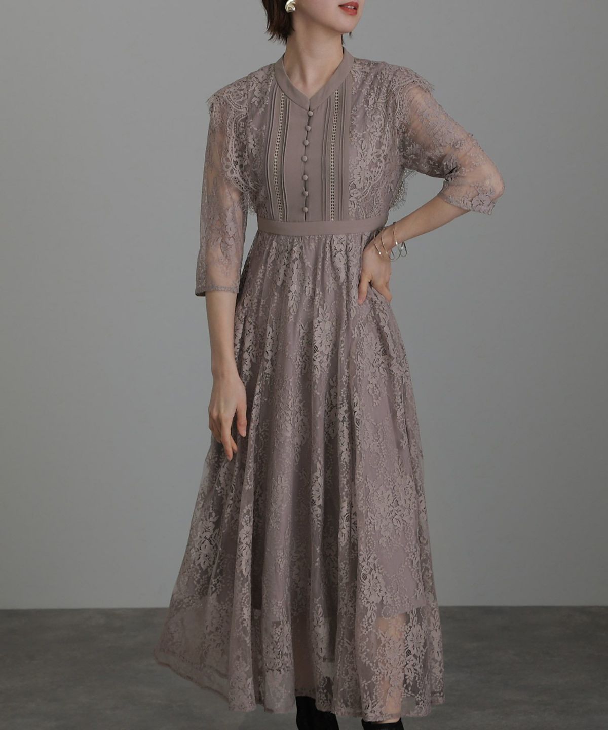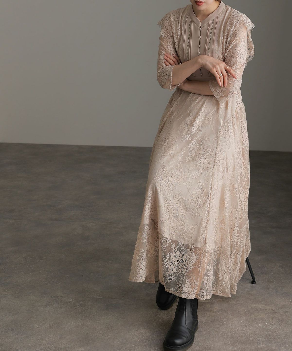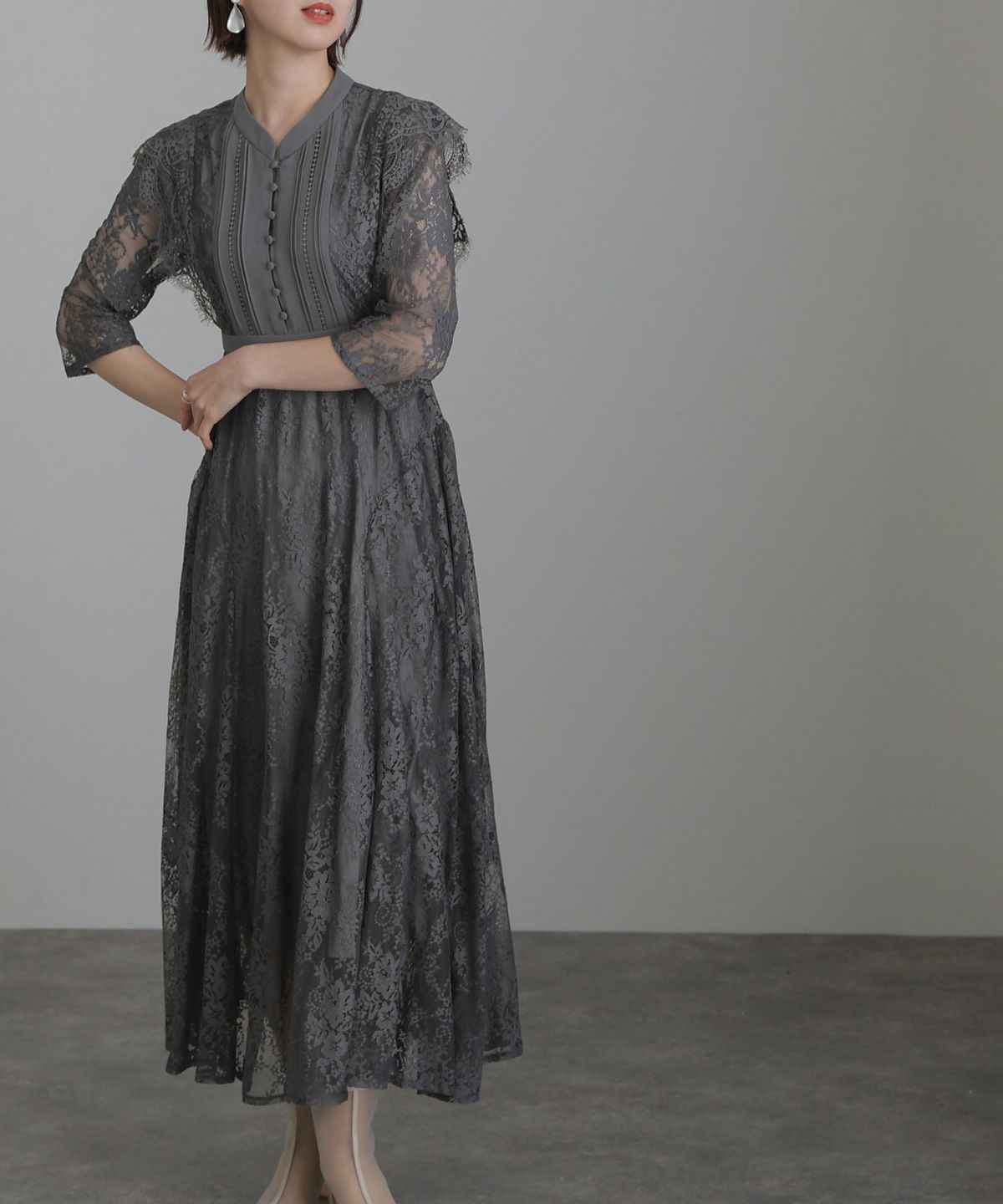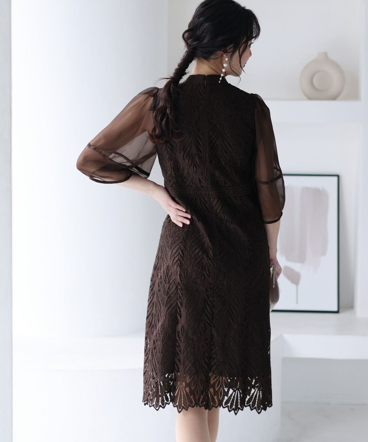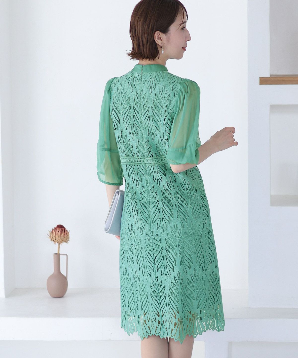 レースとオーガンジーの透け感が可愛い ケミカルレース×オーガンジースリーブワンピース