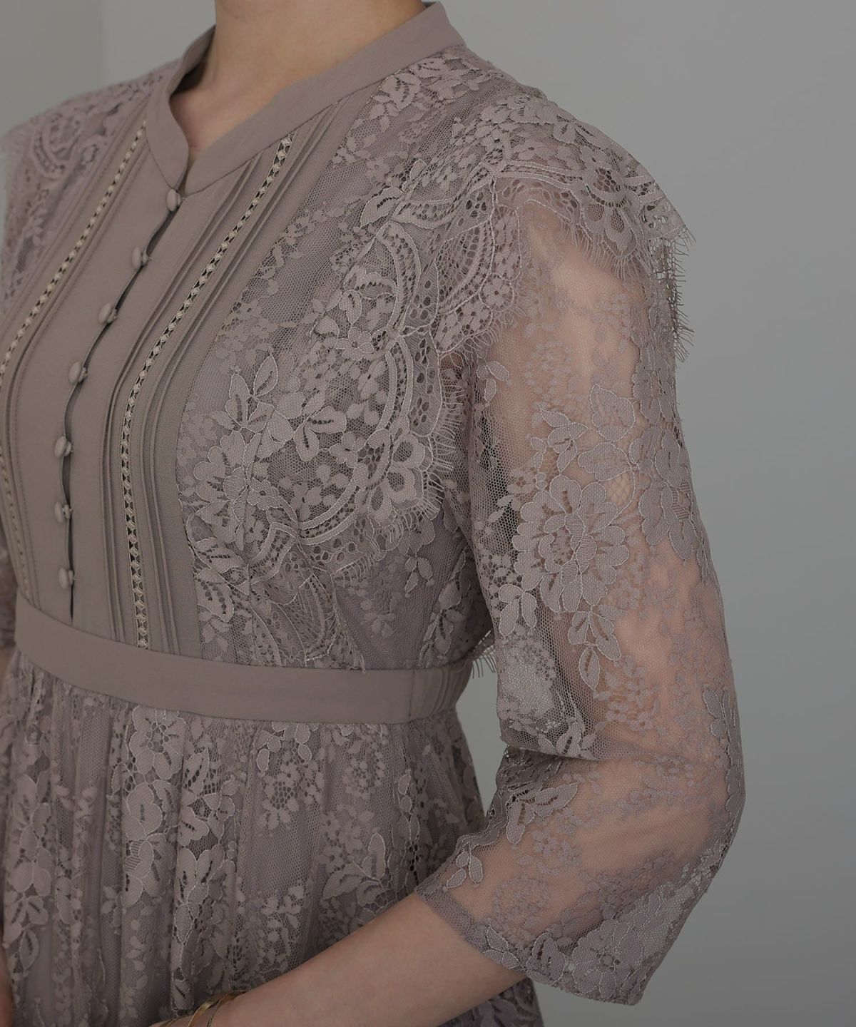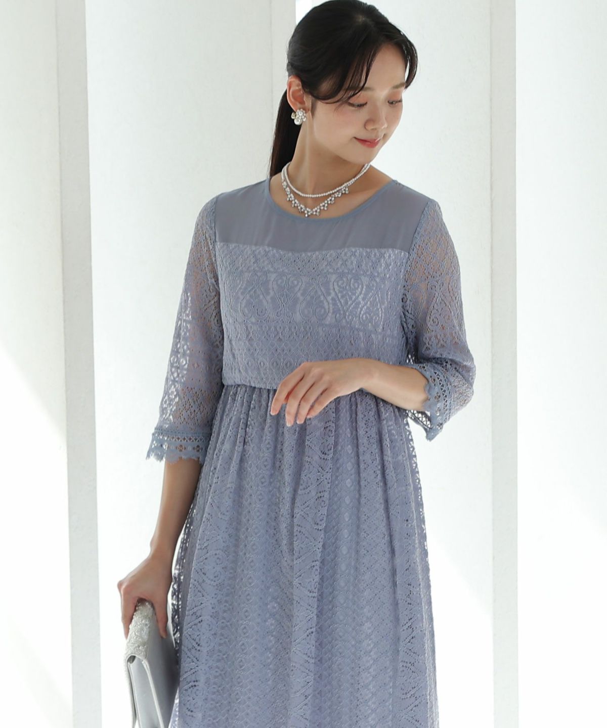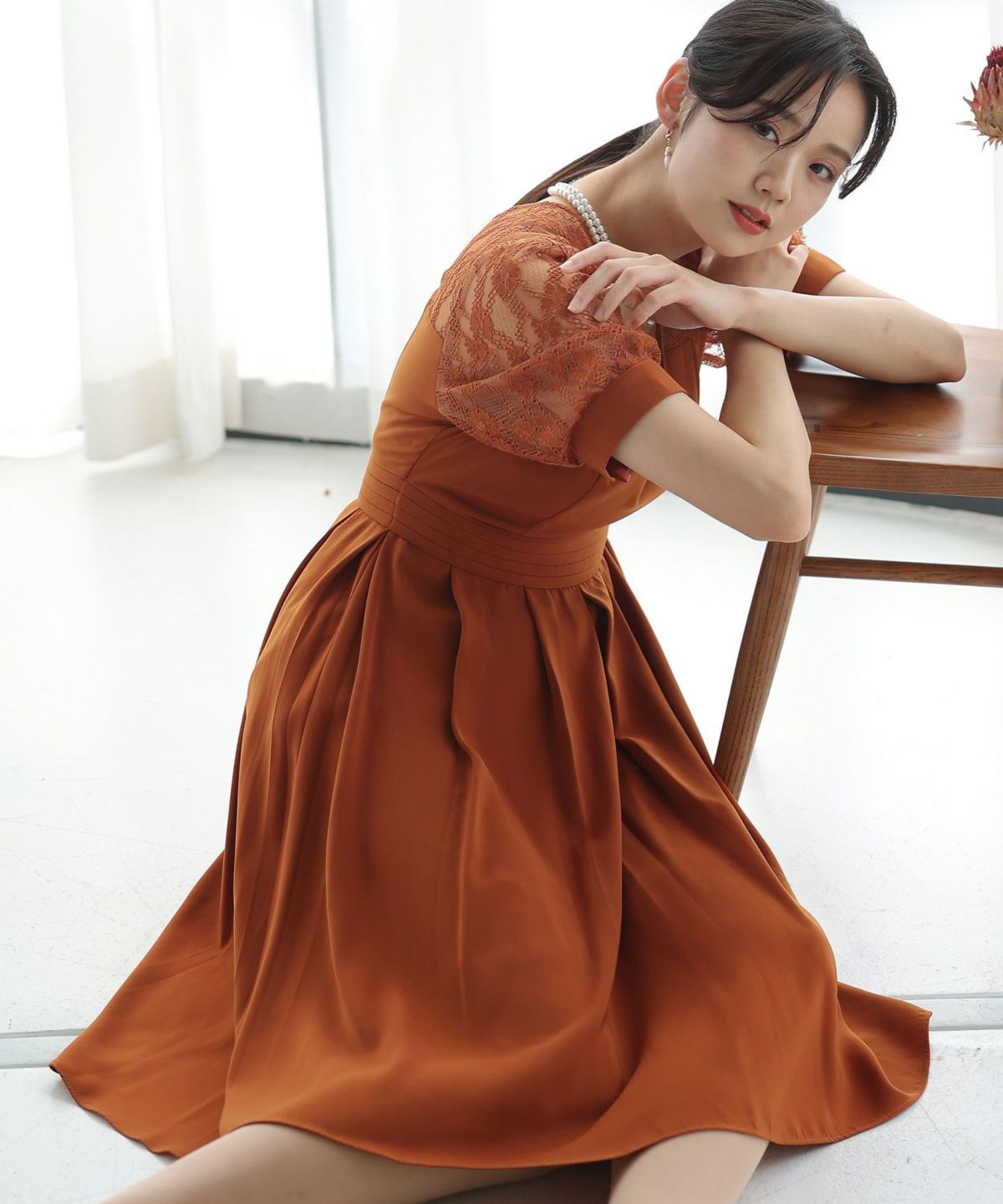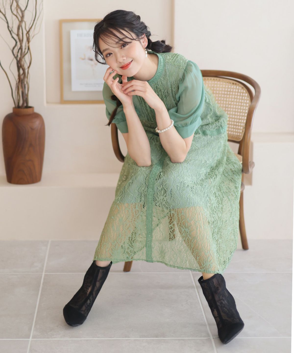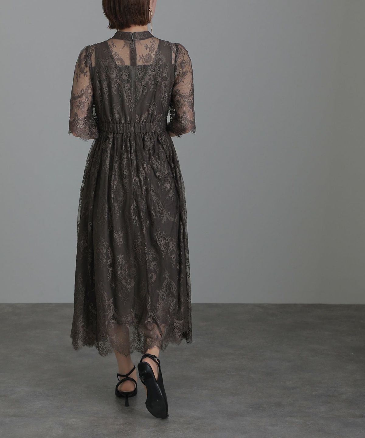 レースとオーガンジーの透け感が可愛い ケミカルレース×オーガンジースリーブワンピース