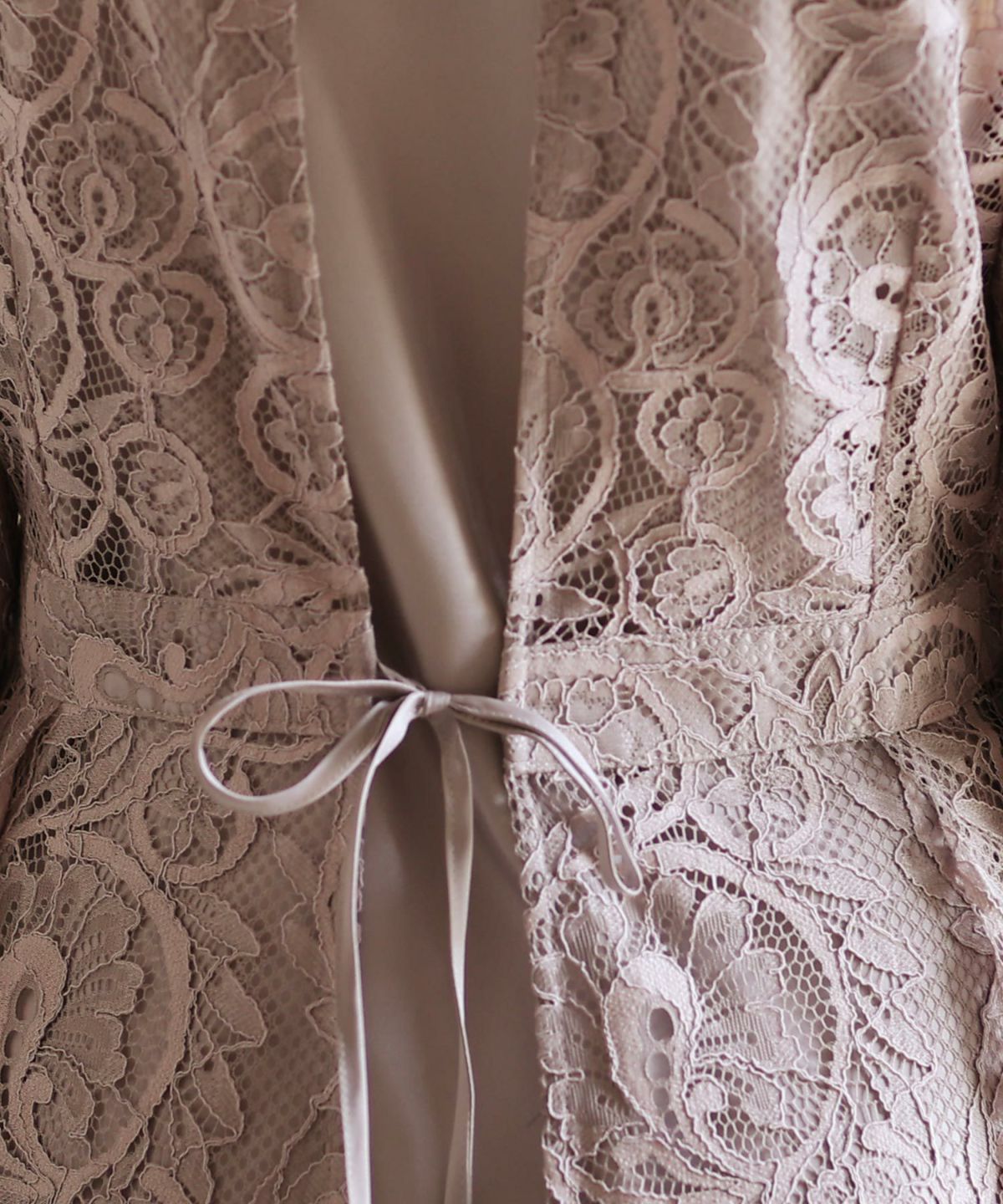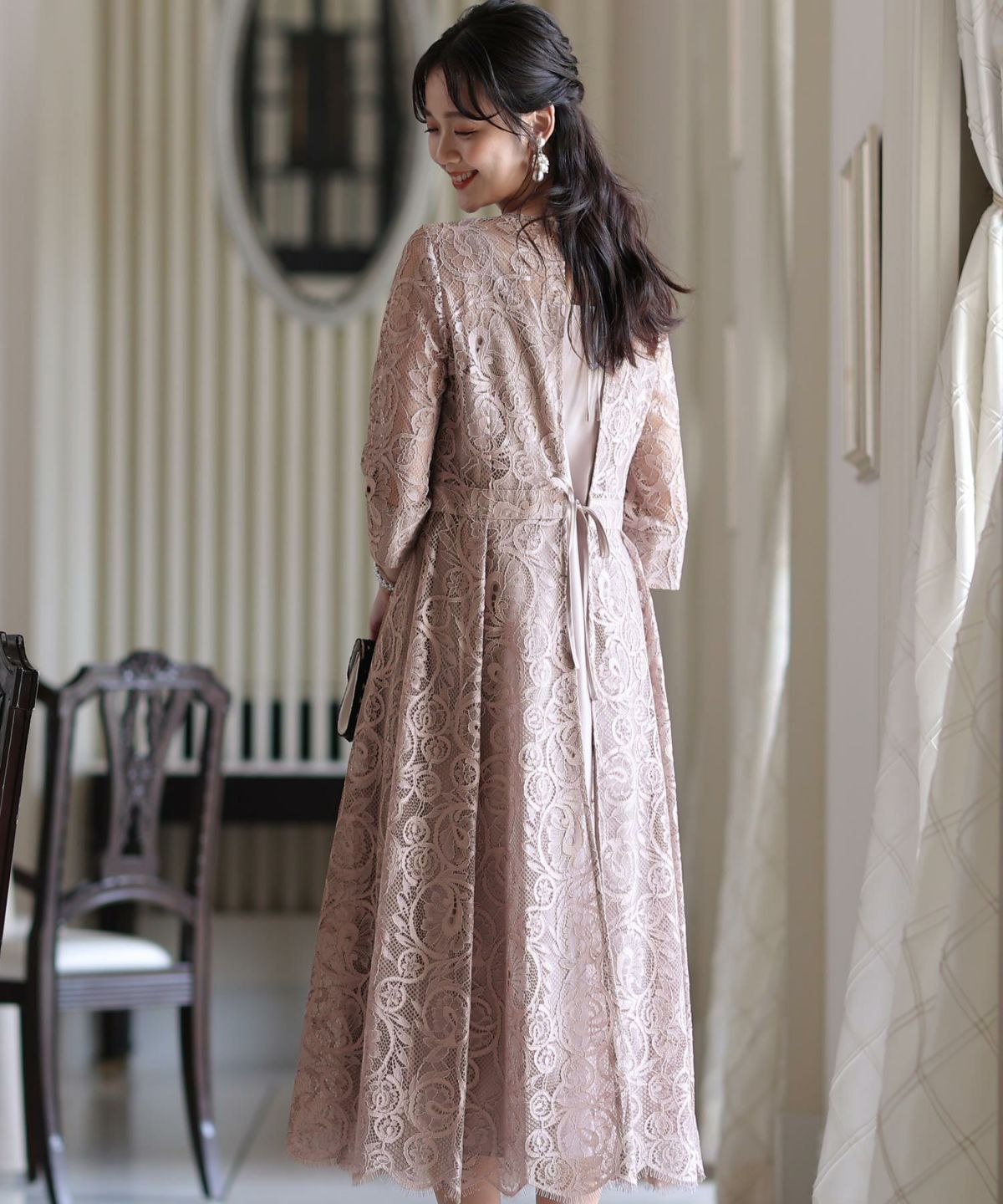 レースアウターが華やか バックリボンレースワンピース