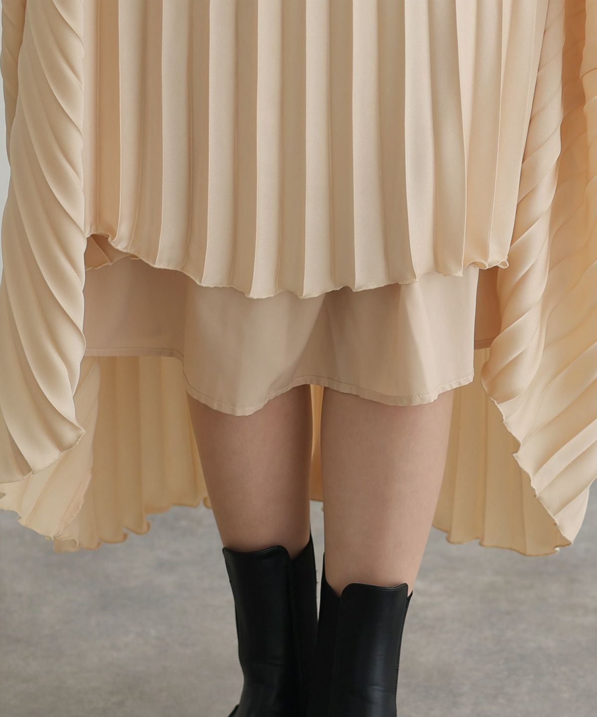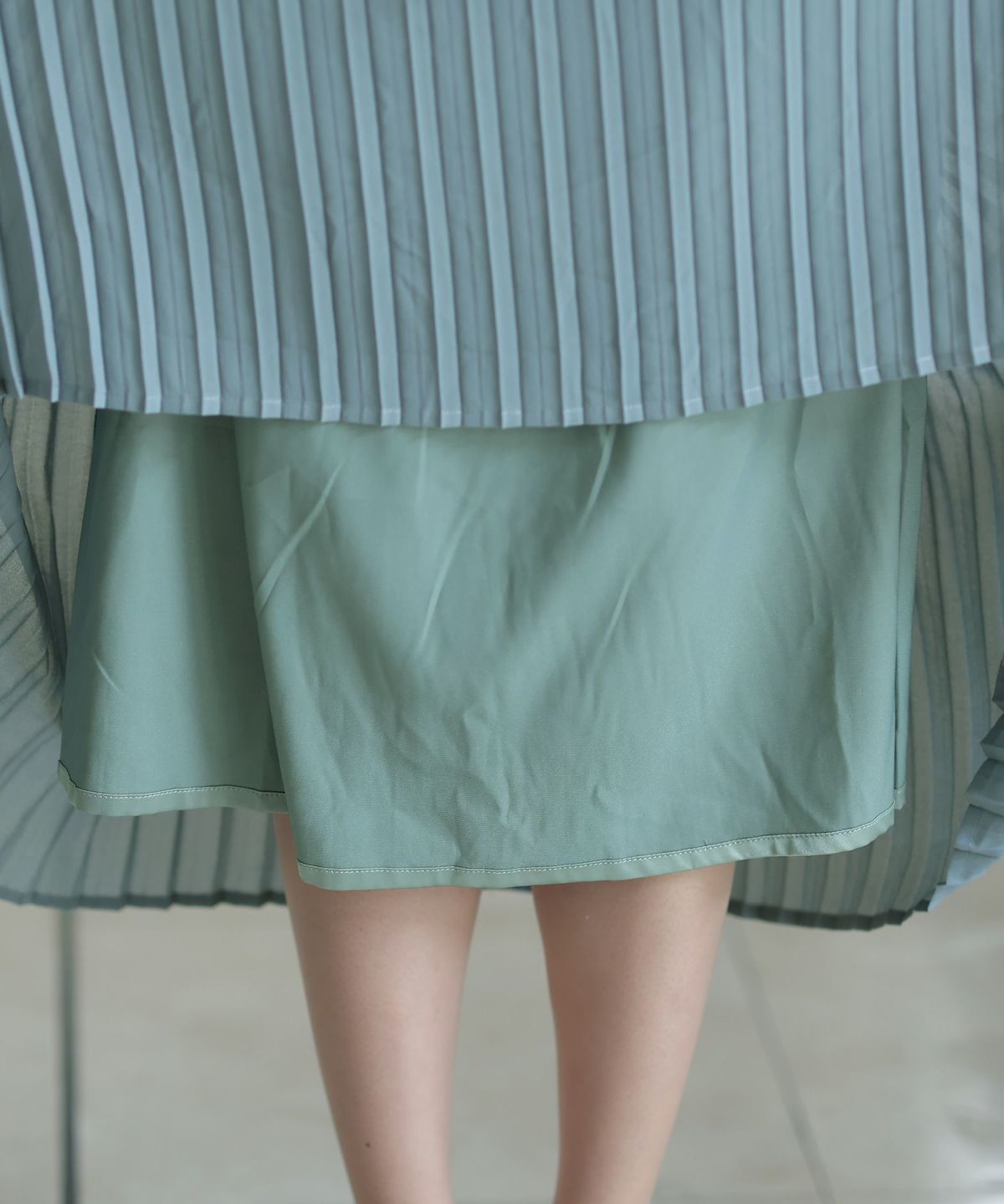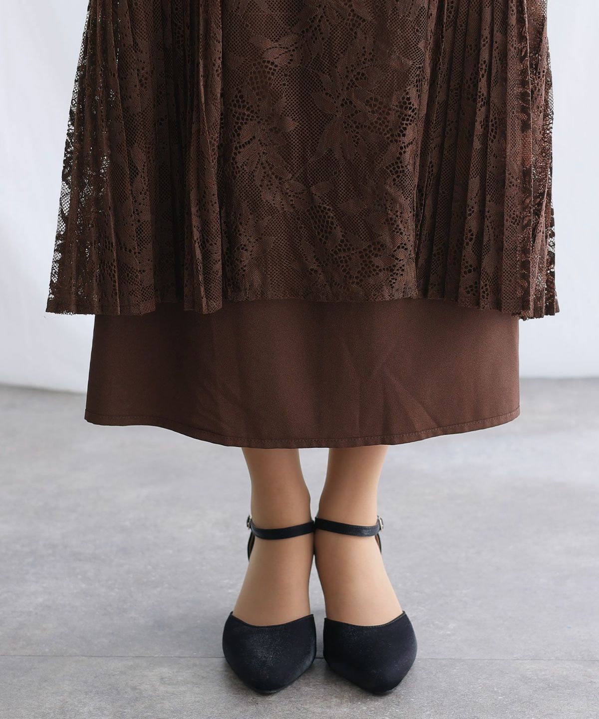 レースとプリーツの切り替えが大人可愛い ビスチェデザインプリーツレイヤードワンピース