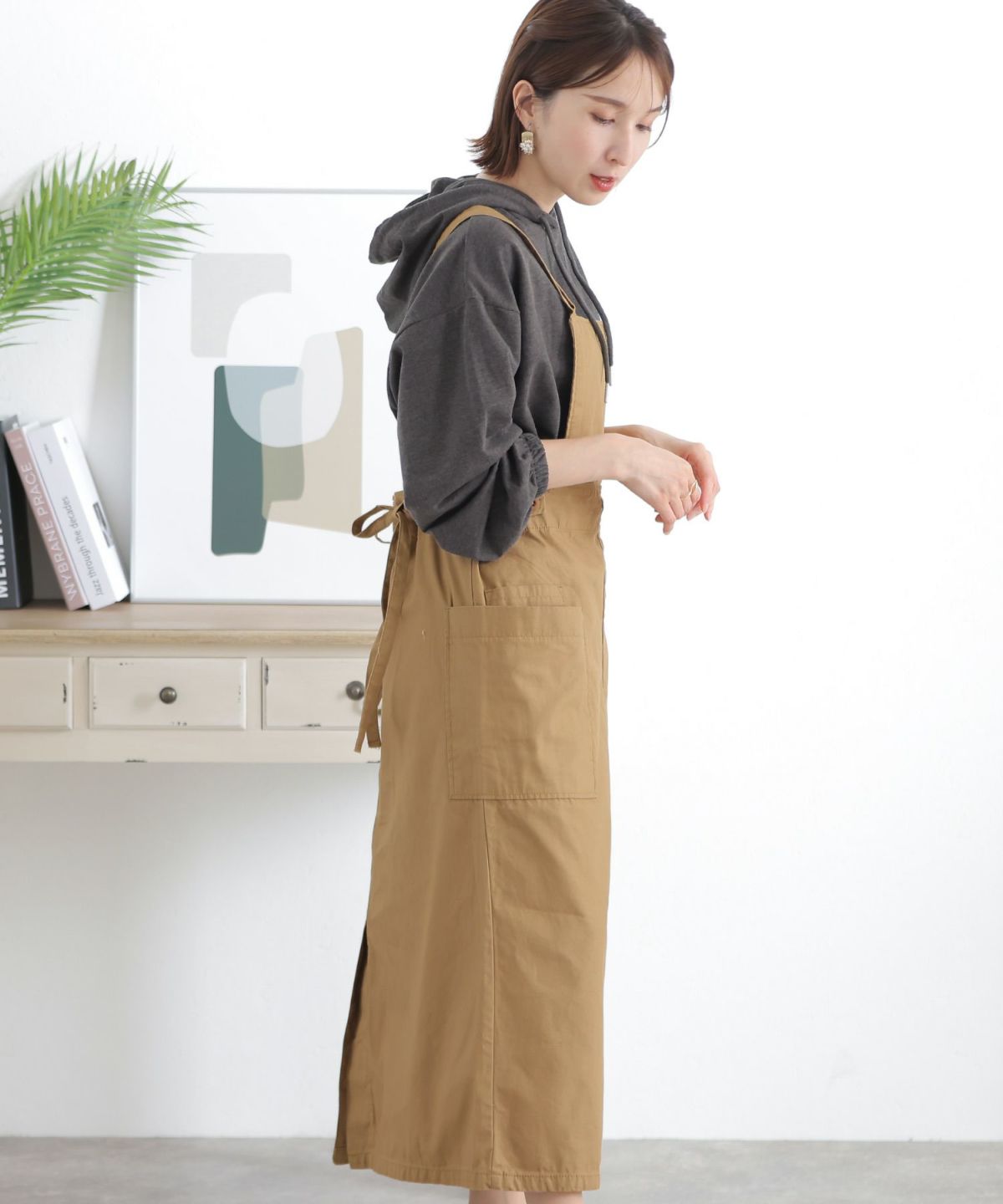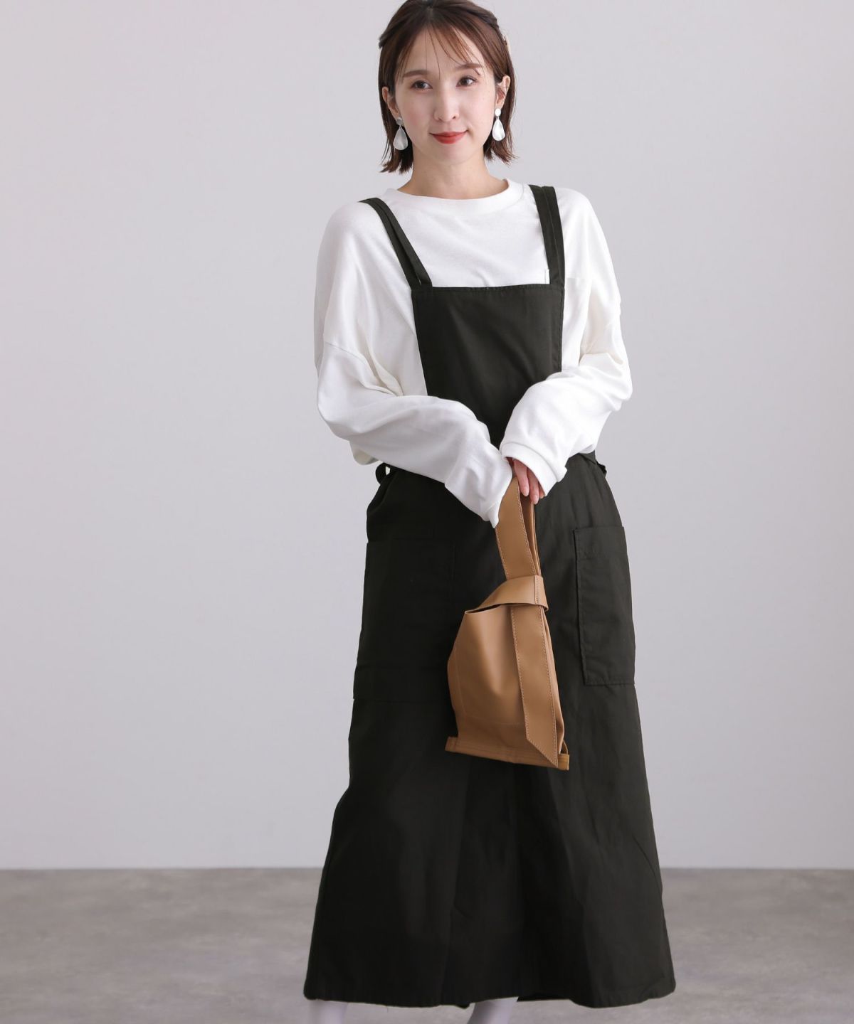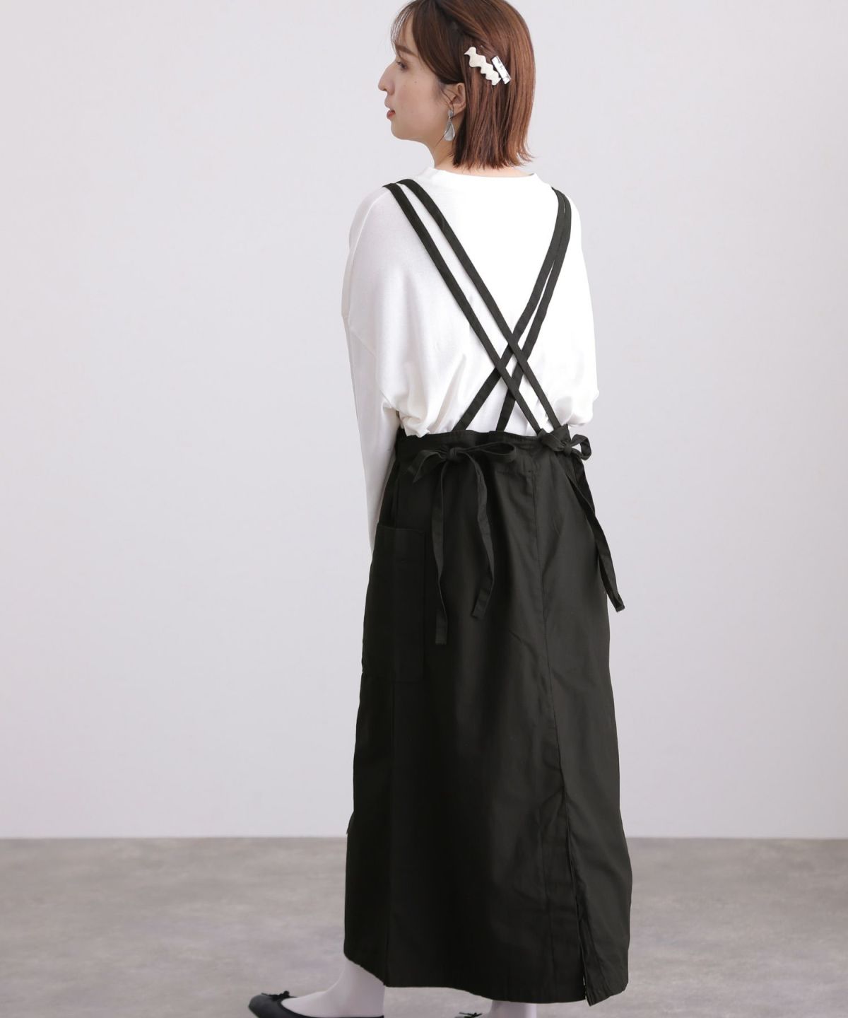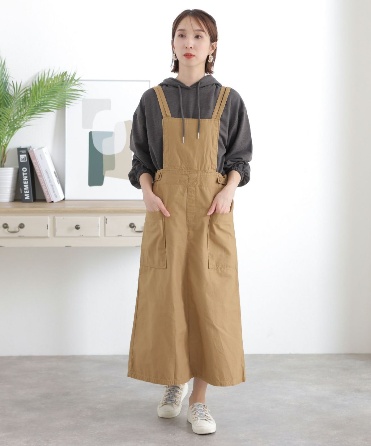 フレアシルエットが可愛い ツイルエプロンサロペットスカート