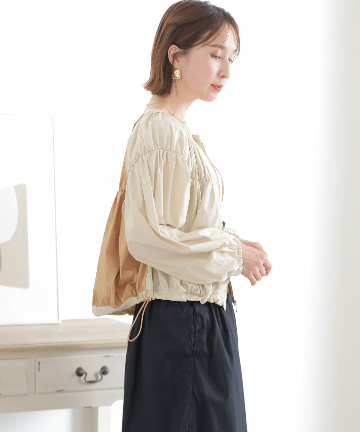 ふんわりシルエットが大人可愛い バイカラーブルゾン