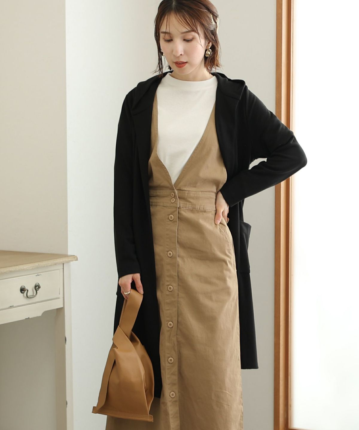 シンプルでモードな雰囲気がおしゃれなセットアップ ショートジャケットキャミワンピースセットアップ