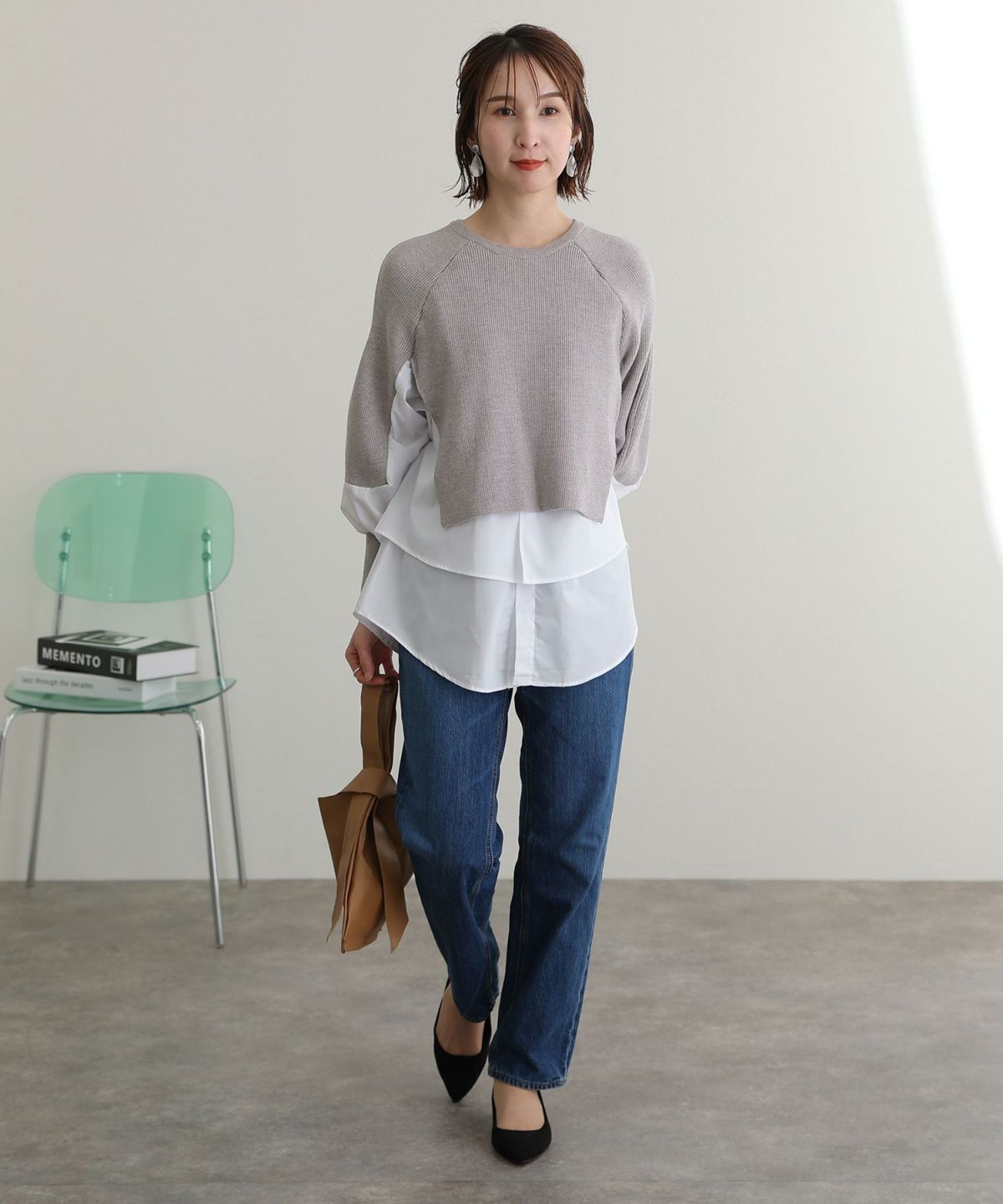 シンプルデザインで着回しが楽しい ブラウスドッキングリブニット